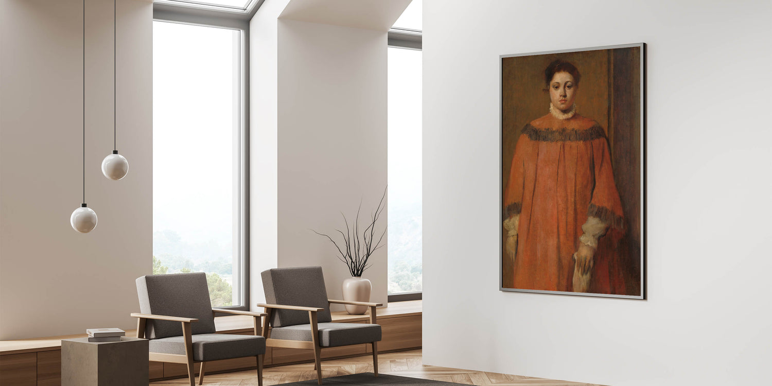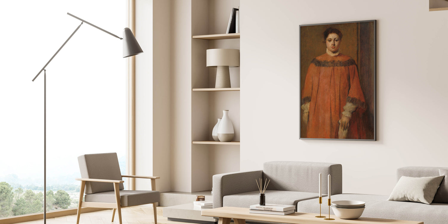 Enhance your decor with the grace and elegance of Degas’s Girl in Red, ideal for creating a sophisticated, contemplative atmosphere in any room.