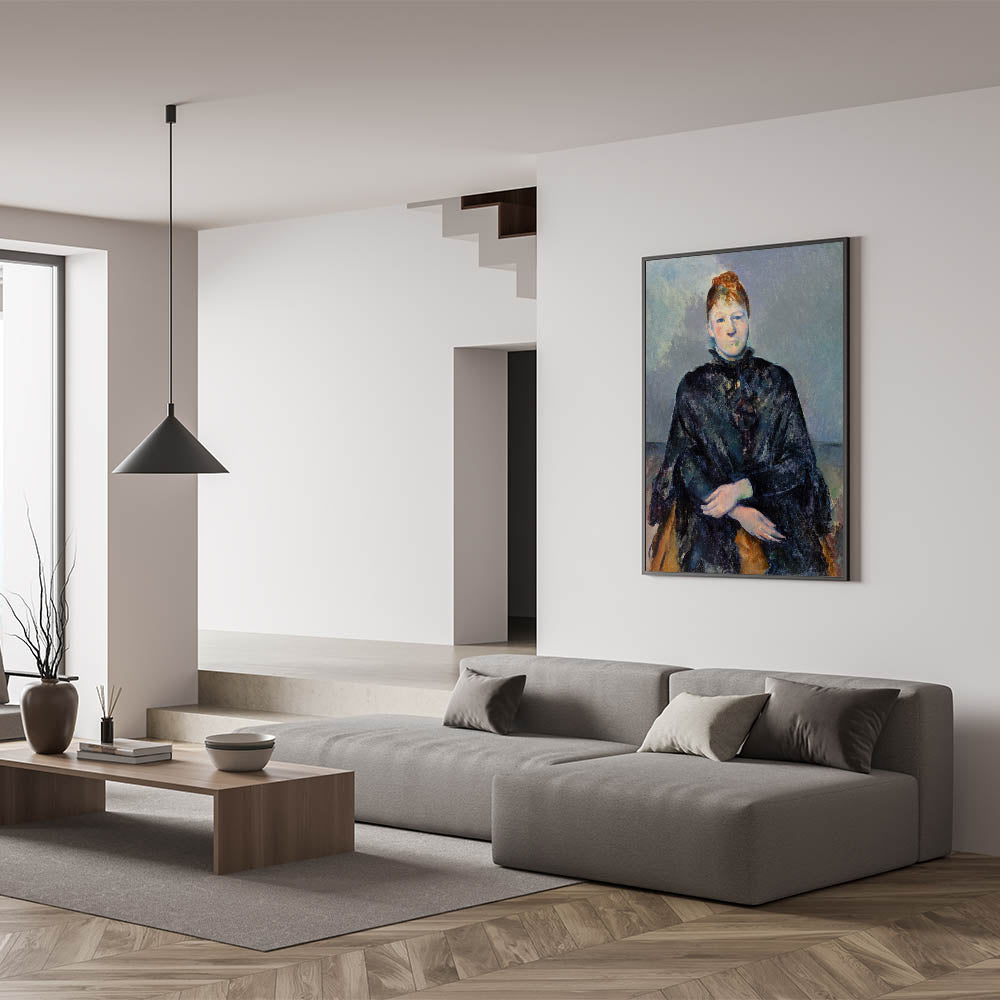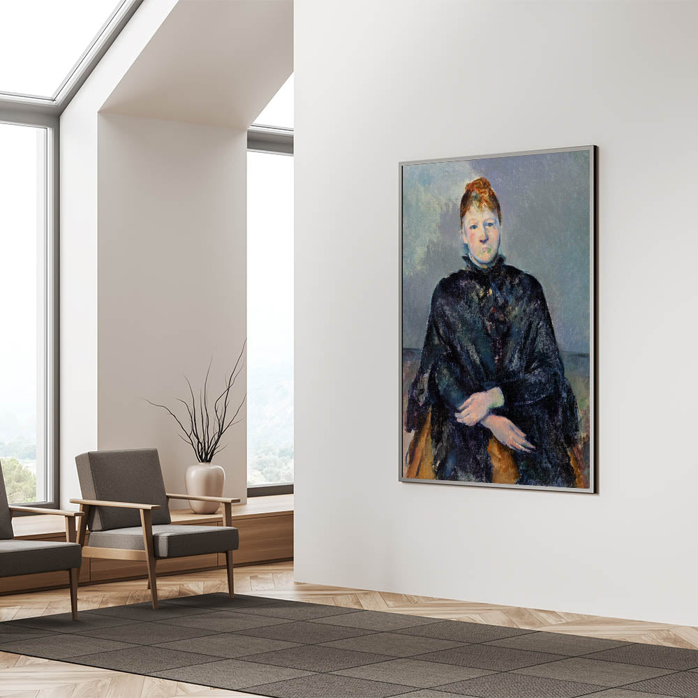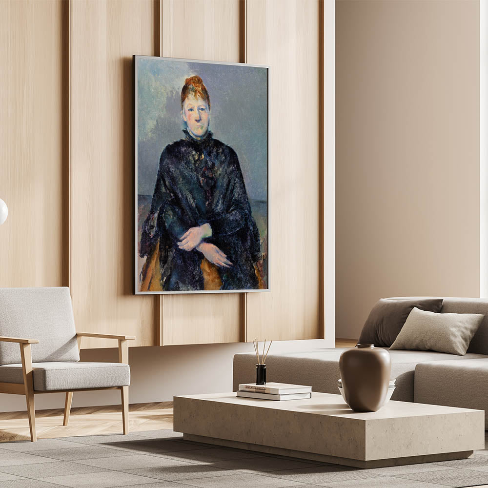 Introduce a timeless sense of elegance to your decor with "Portrait of Madame Cézanne," a captivating work by Paul Cézanne. In this striking piece, Cézanne paints his wife, Hortense Fiquet, dressed in a deep, somber black, against a soft, muted background. The subtle color palette and contemplative mood make this artwork an exquisite addition to any art lover's collection.