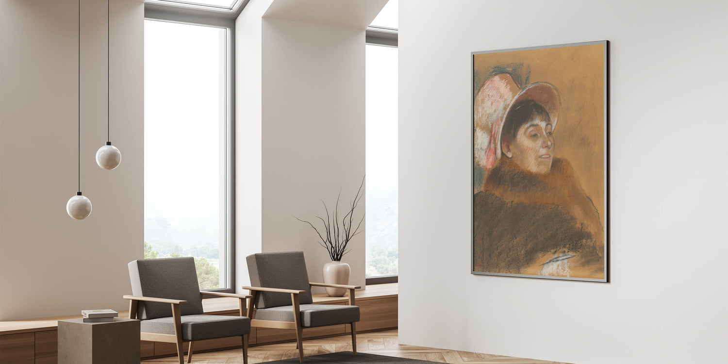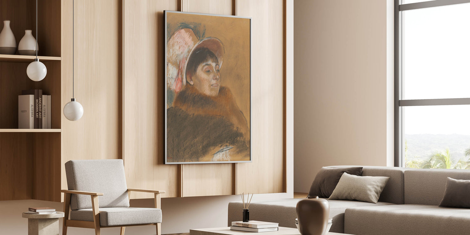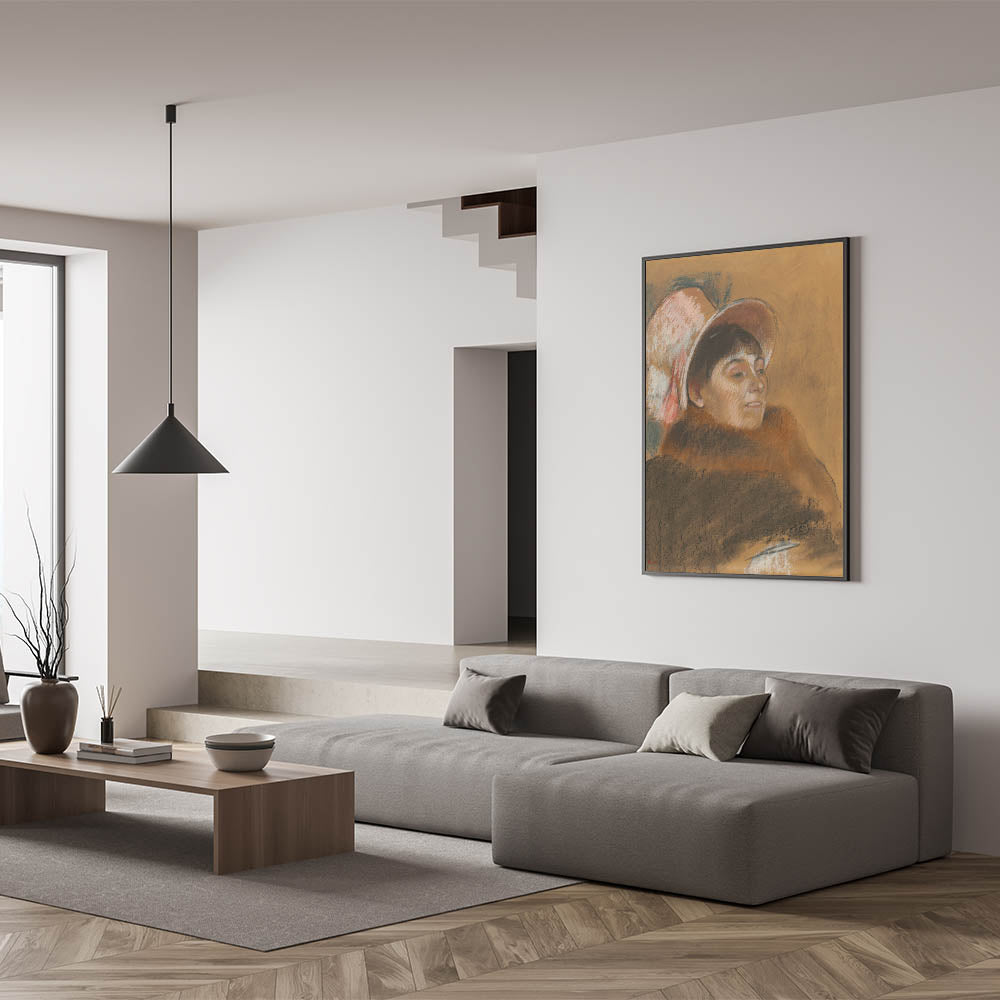 Introduce a touch of refined elegance to your decor with "Madame Dietz-Monnin" by Edgar Degas. This soft pastel portrait showcases Degas’ skillful use of color and texture, capturing the serene expression of the subject. The warm earthy tones and delicate lines reflect the Impressionist style, making this piece a perfect addition for those who appreciate classic beauty.
