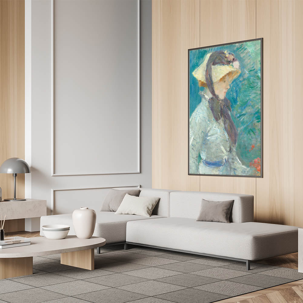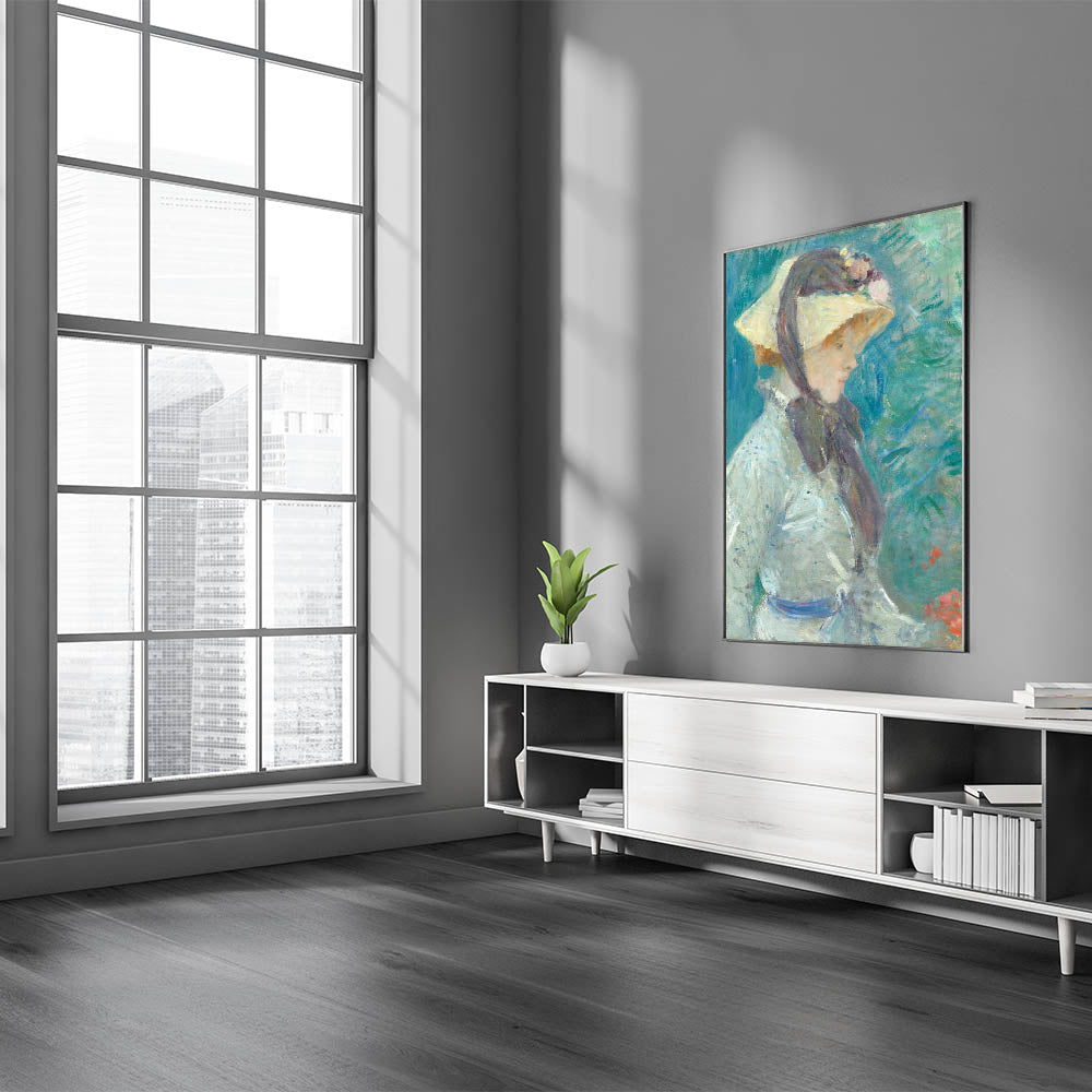 Transform your space with this Impressionist artwork for home decor, celebrating Morisot’s mastery in capturing light and emotion. Whether as a thoughtful gift or a personal centerpiece, “Young Woman with a Straw Hat” exudes grace and sophistication.