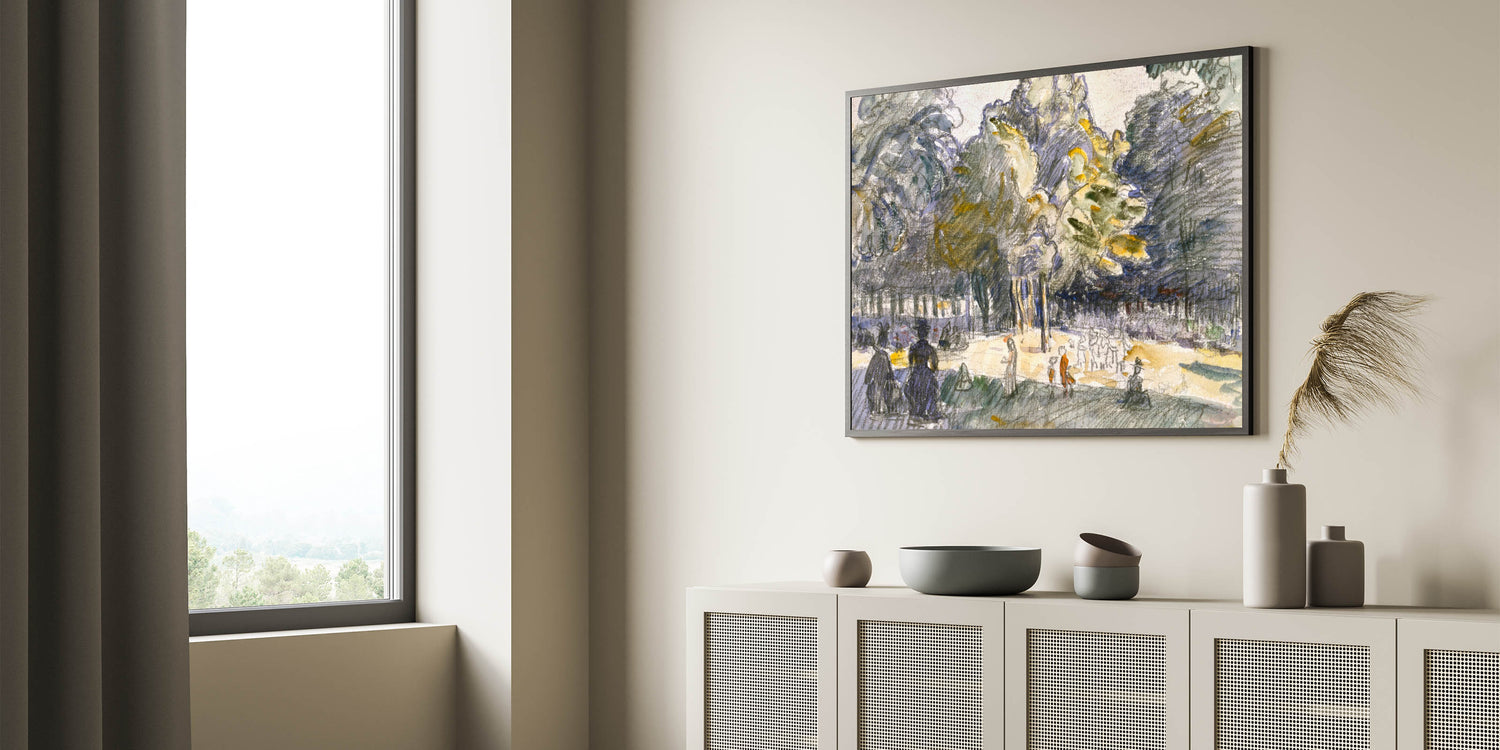 This Impressionist seascape will bring the soothing colors of the ocean and sky into your living room, bedroom, or hallway. Its calming presence is perfect for creating a tranquil atmosphere in any room.