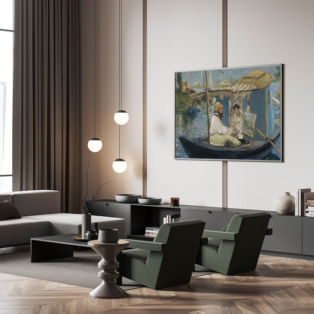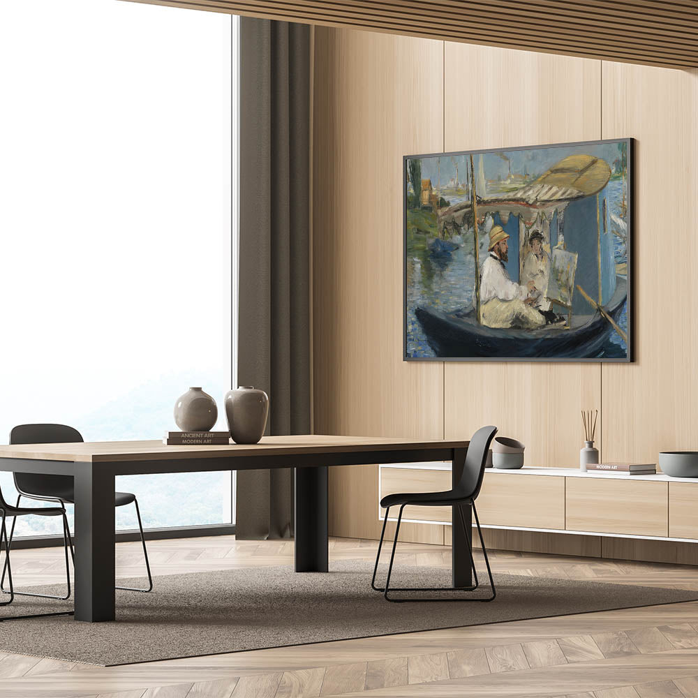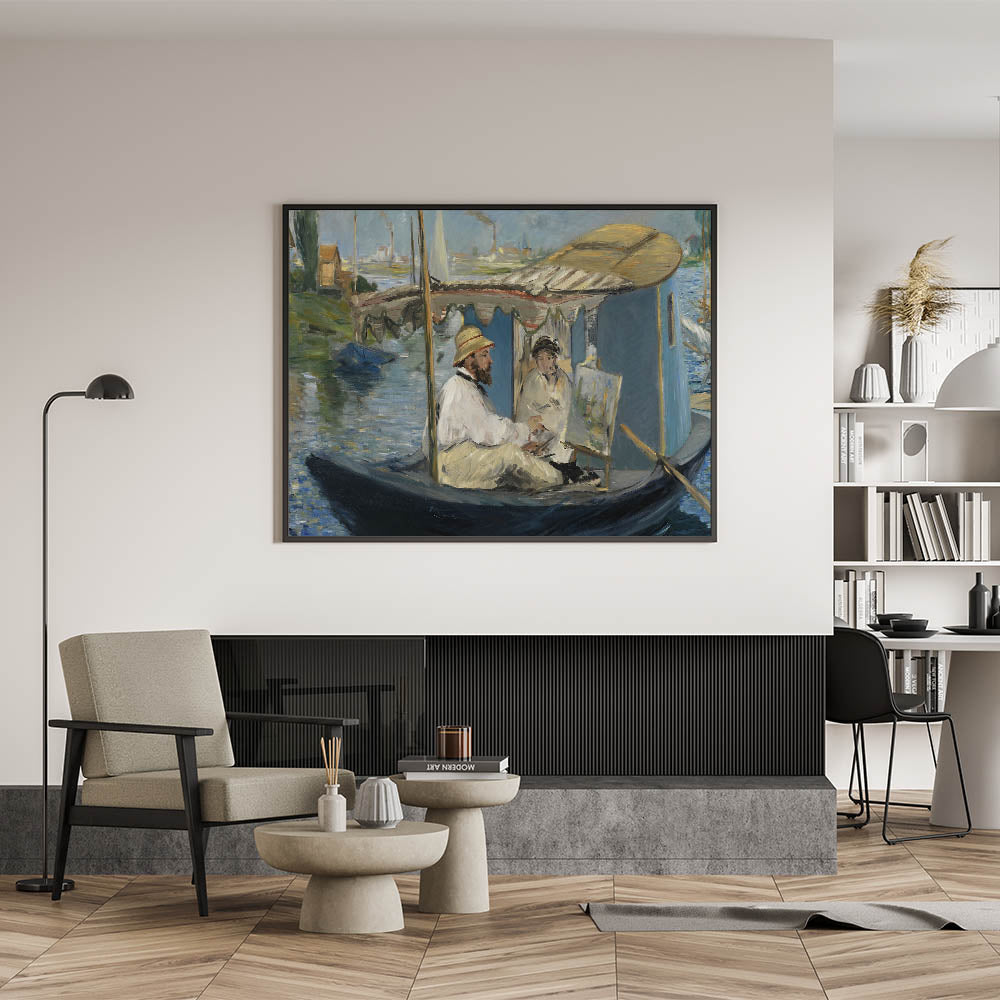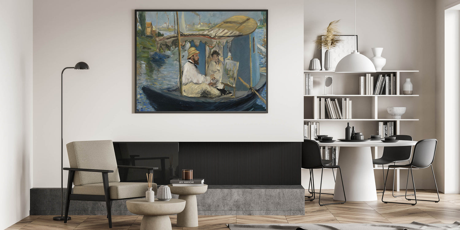 Celebrate the creative spirit of Impressionism with Edouard Manet’s Claude Monet Painting in His Studio. This captivating artwork offers a unique glimpse into the life of Monet as he paints on a small boat, surrounded by serene water and gentle reflections. Manet’s brushstrokes capture the quiet dedication of an artist at work, making this piece perfect for art lovers who appreciate the beauty of the Impressionist era.