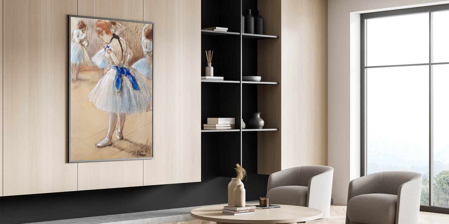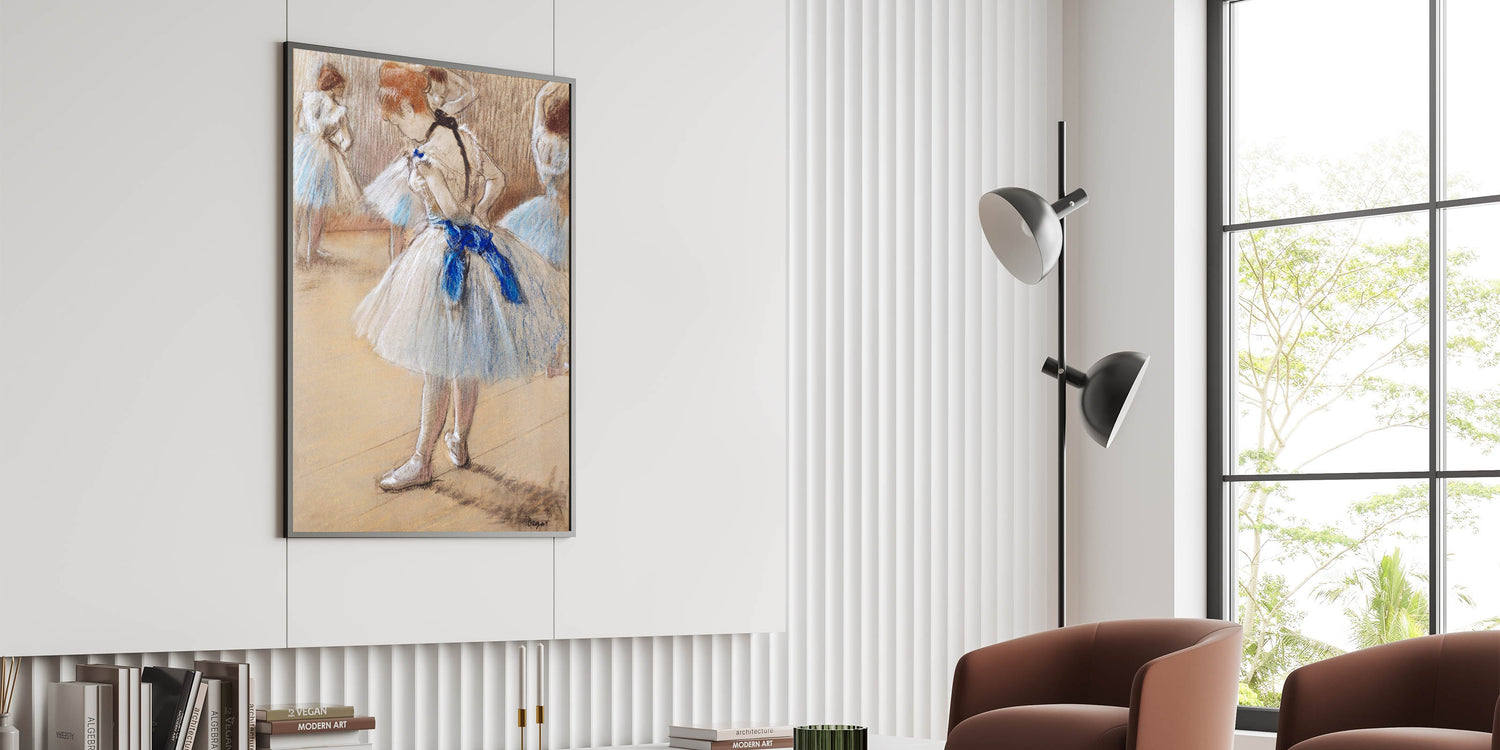 Bring the grace and elegance of ballet into your home with Edgar Degas' "Dancer" from 1880. This Impressionist artwork captures a delicate moment as a ballerina adjusts her posture, surrounded by fellow dancers in a softly lit studio. Degas’ masterful use of pastel colors and light textures brings out the flowing movement of the tutu and the poise of the dancer, making it a stunning piece for art lovers and ballet enthusiasts alike.