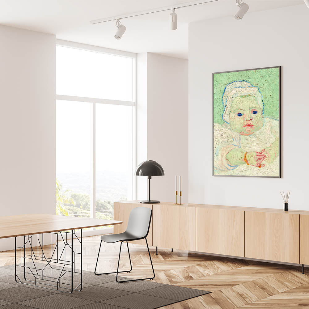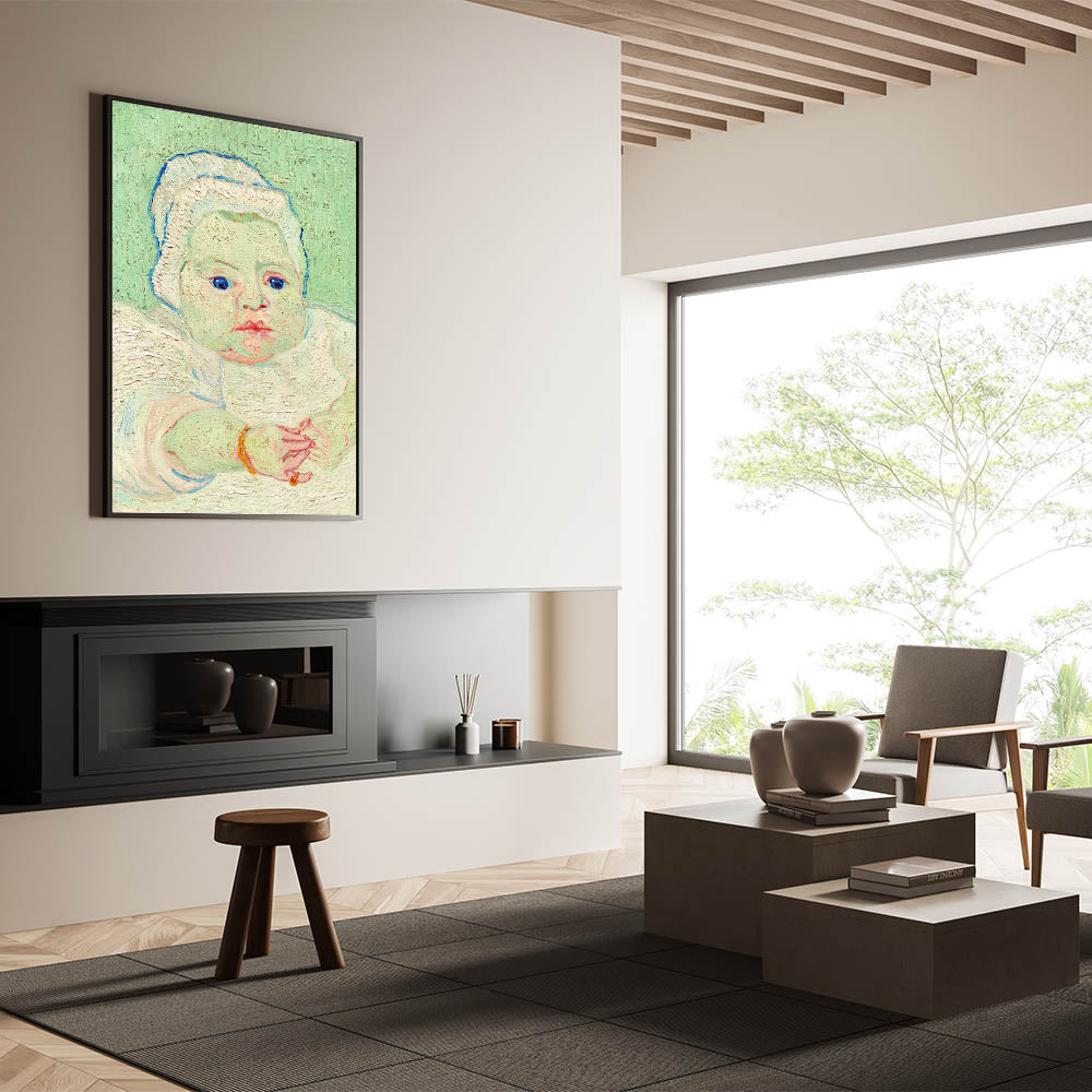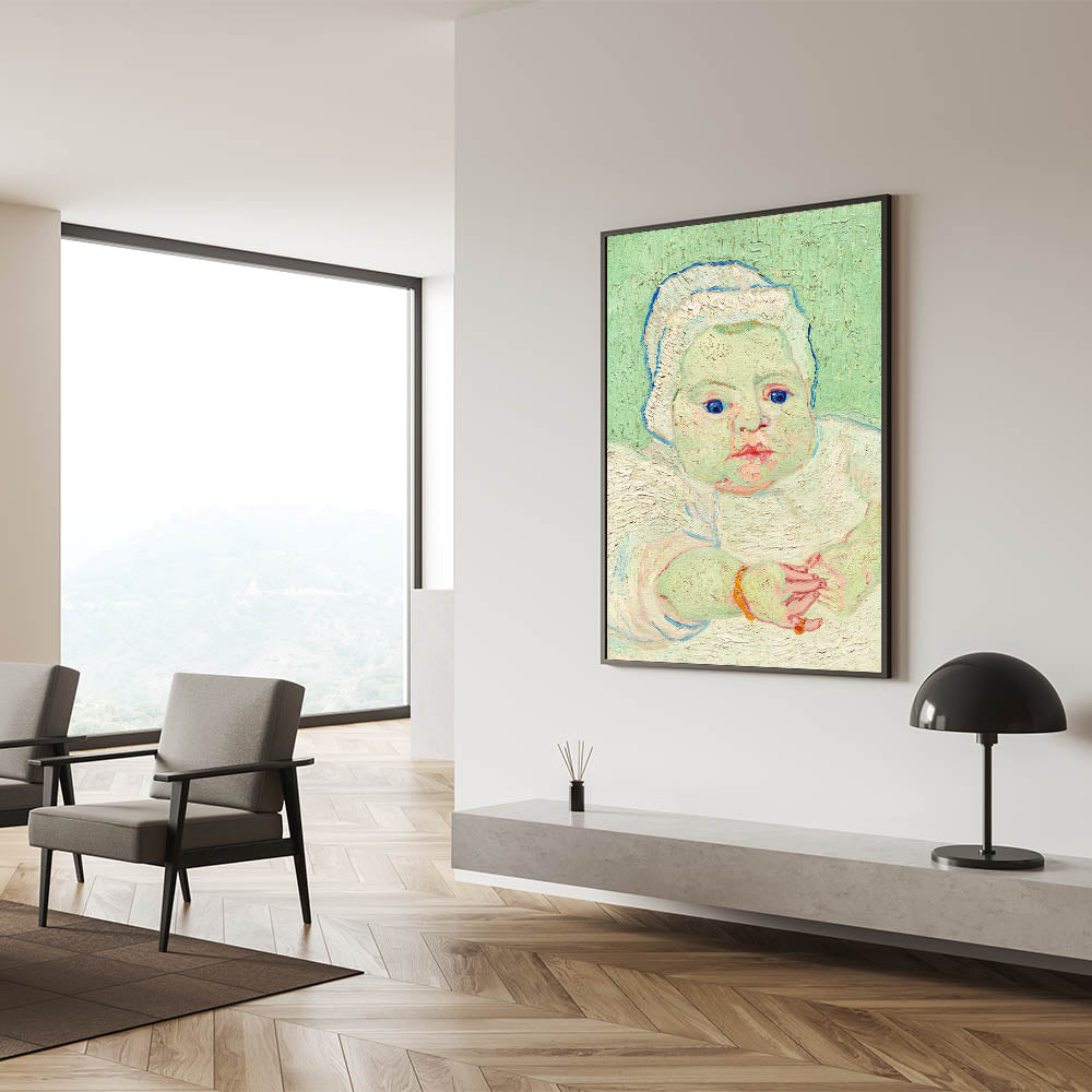 Introduce the charm and innocence of Van Gogh’s "Roulin's Baby" into your art collection. Painted in 1888, this tender portrait depicts the infant Marcelle Roulin in Van Gogh’s signature Impressionist style. The soft pastel tones, expressive brushstrokes, and attention to detail bring this serene composition to life. This artwork celebrates the beauty of everyday moments, making it a timeless addition to any space.