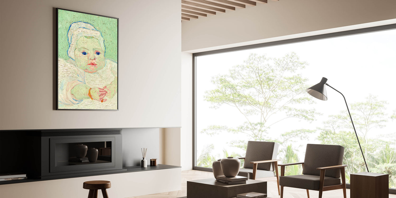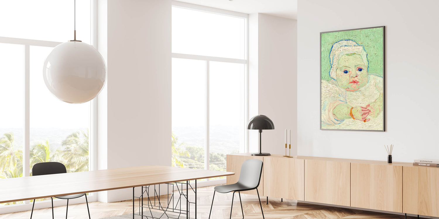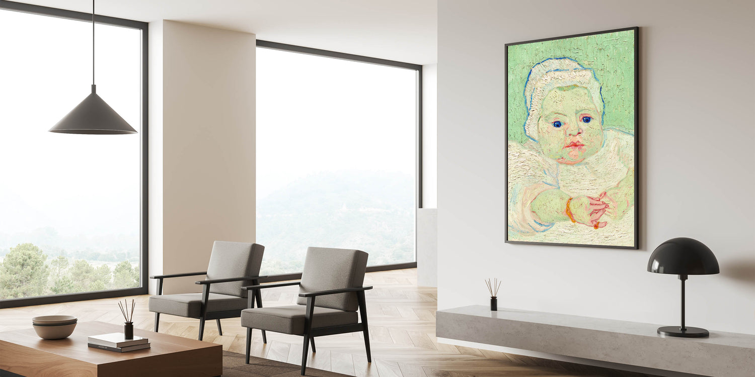 Introduce the charm and innocence of Van Gogh’s "Roulin's Baby" into your art collection. Painted in 1888, this tender portrait depicts the infant Marcelle Roulin in Van Gogh’s signature Impressionist style. The soft pastel tones, expressive brushstrokes, and attention to detail bring this serene composition to life. This artwork celebrates the beauty of everyday moments, making it a timeless addition to any space.
