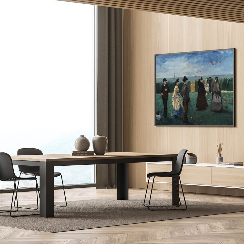 Step back in time to a leisurely afternoon with Edouard Manet’s The Croquet Game. This classic Impressionist painting captures a moment of refined relaxation, as elegantly dressed figures engage in a game of croquet on a lush, green field. The painting’s vibrant colors and dynamic composition make it an inviting piece that adds sophistication and a touch of nostalgia to any decor.