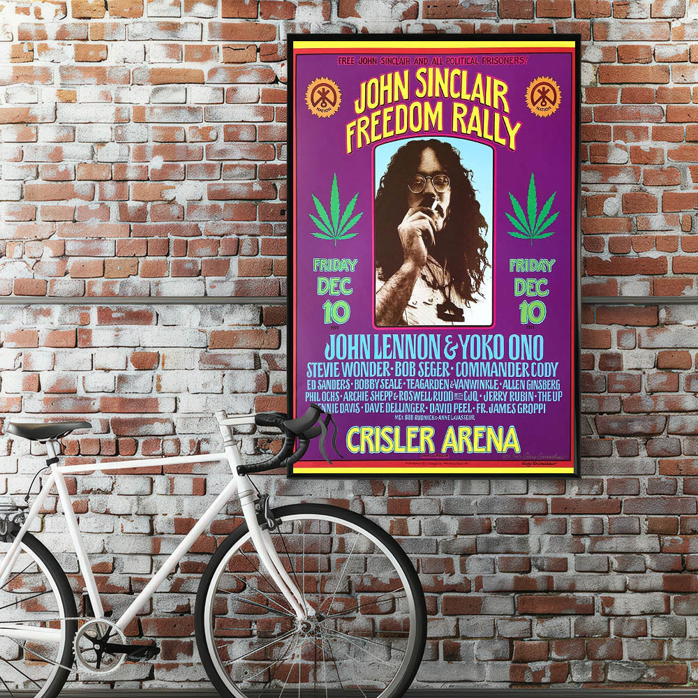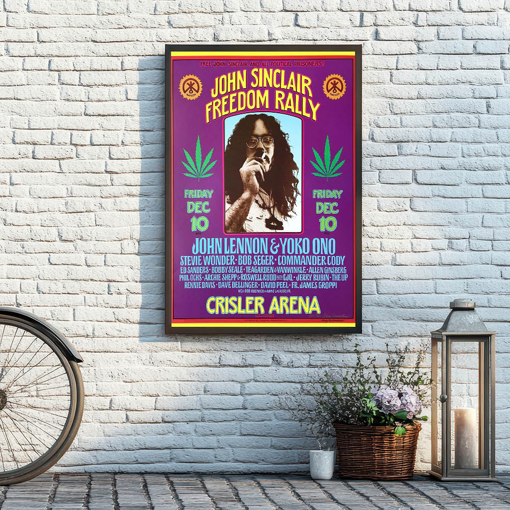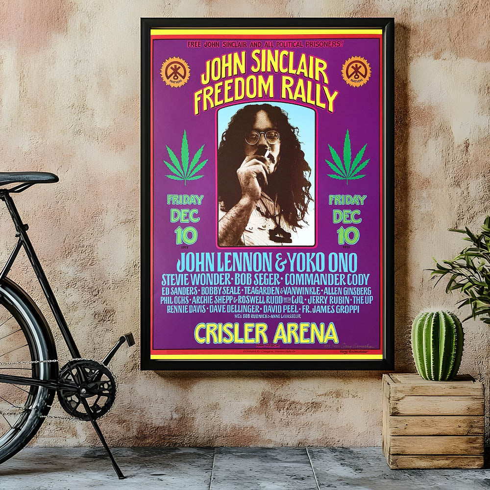 Capture the essence of the retro aesthetic with this John Sinclair Freedom Rally poster, a vibrant tribute to one of the most iconic counterculture events of the 1970s. Featuring bold psychedelic design, vivid typography, and a striking mix of vintage decor colors, this nostalgic art print is perfect for music lovers, activists, and fans of timeless retro designs. The poster showcases classic retro style, highlighting artists like John Lennon, Yoko Ono, Stevie Wonder, and Bob Seger, making it a must-have for any collector.