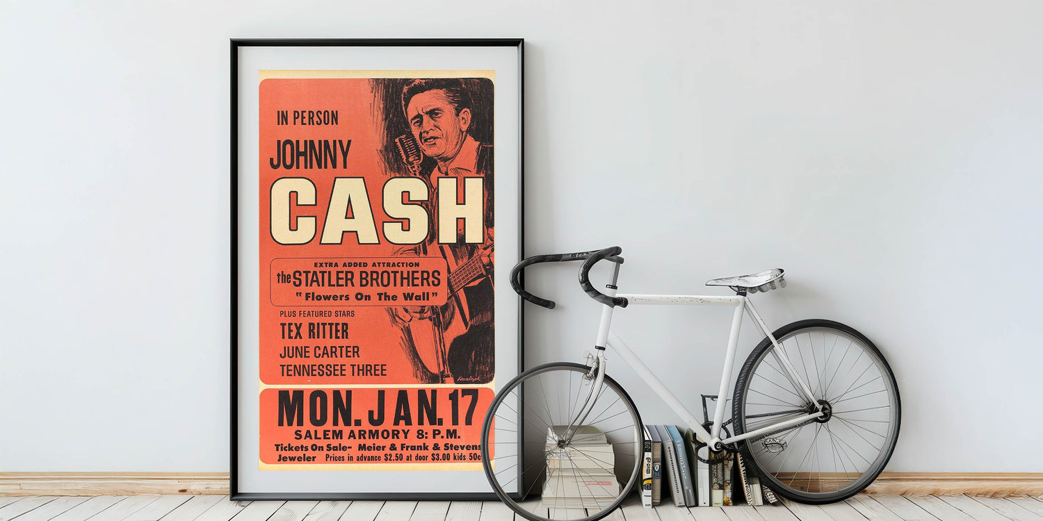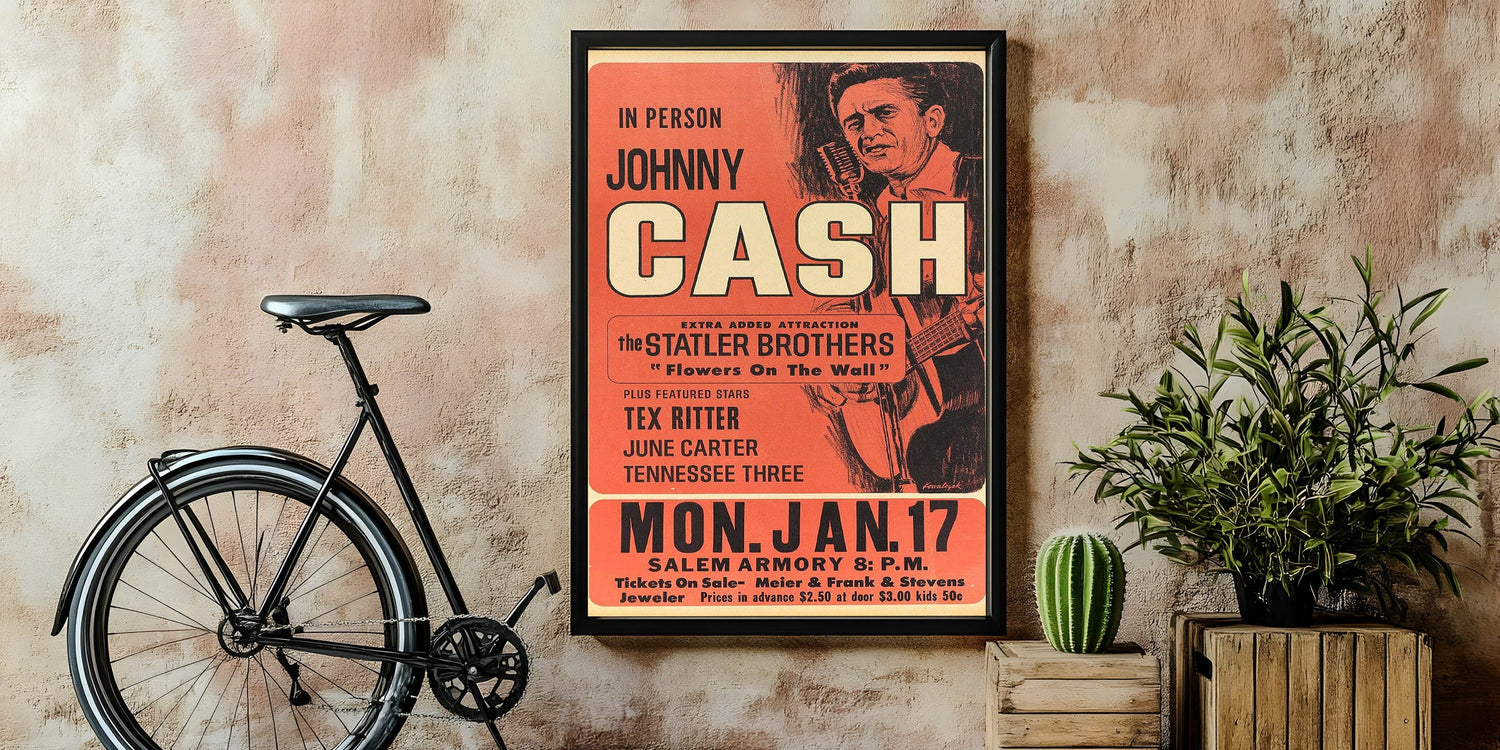 Bring the spirit of classic country music into your space with this retro wall decor. Whether you're a lifelong Johnny Cash fan or looking for a unique statement piece, this vintage print is a timeless addition to any wall.