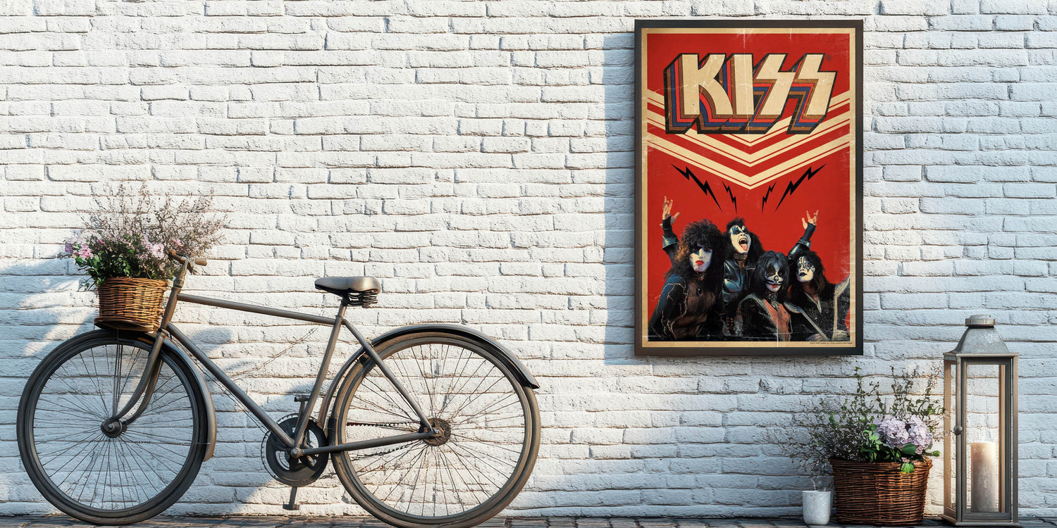 Bring the electrifying energy of KISS into your space with this retro aesthetic band poster. Featuring the band’s iconic stage presence, bold typography, and a striking vintage decor color palette, this nostalgic art print is perfect for rock music fans and collectors of timeless retro designs. The distressed texture and classic retro style make this retro poster art a must-have for any true KISS fan.