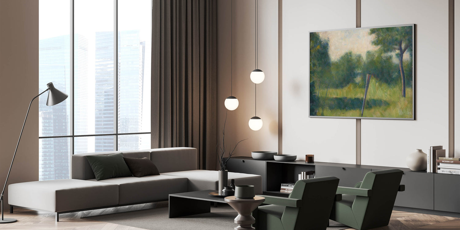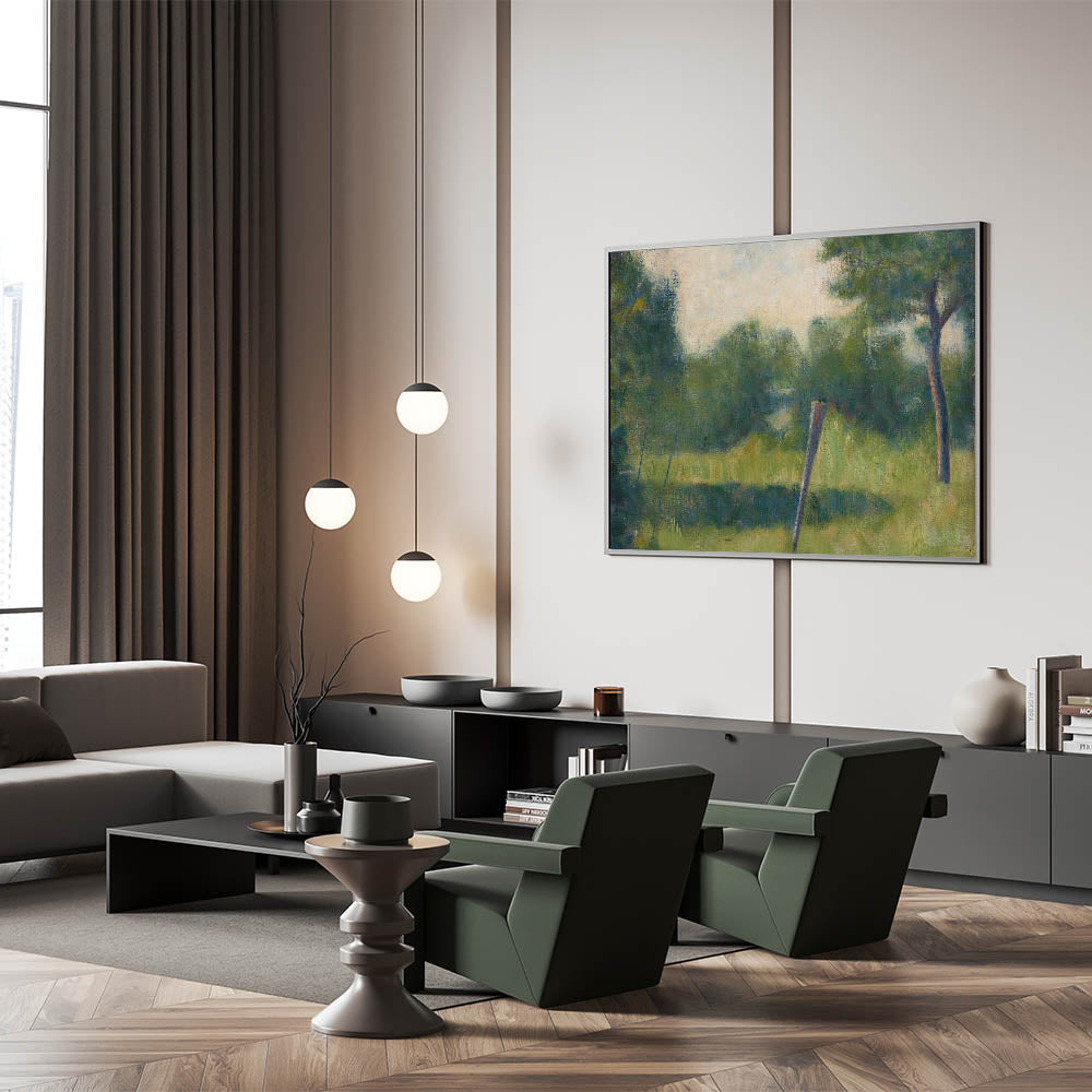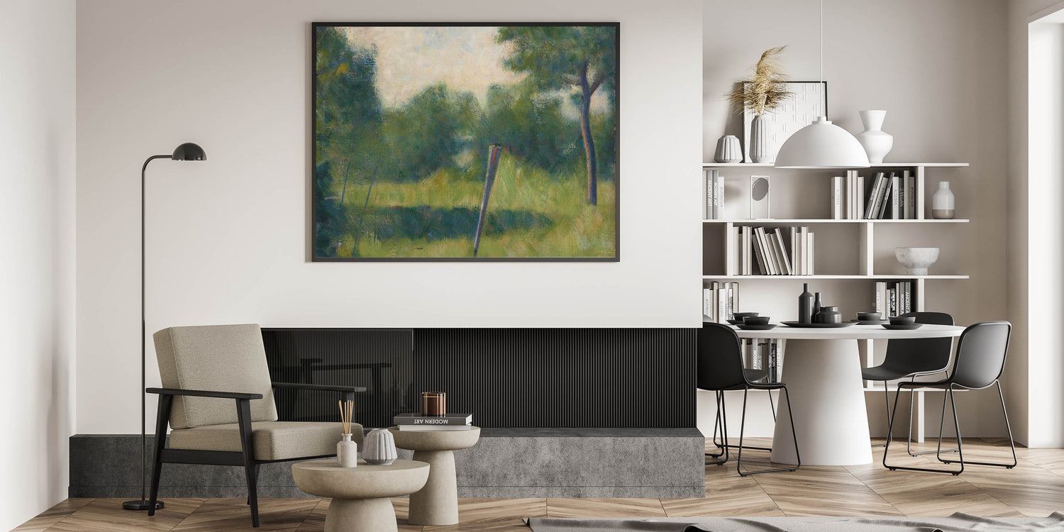 - High-quality reproduction of Georges Seurat’s "Landscape with Stake"