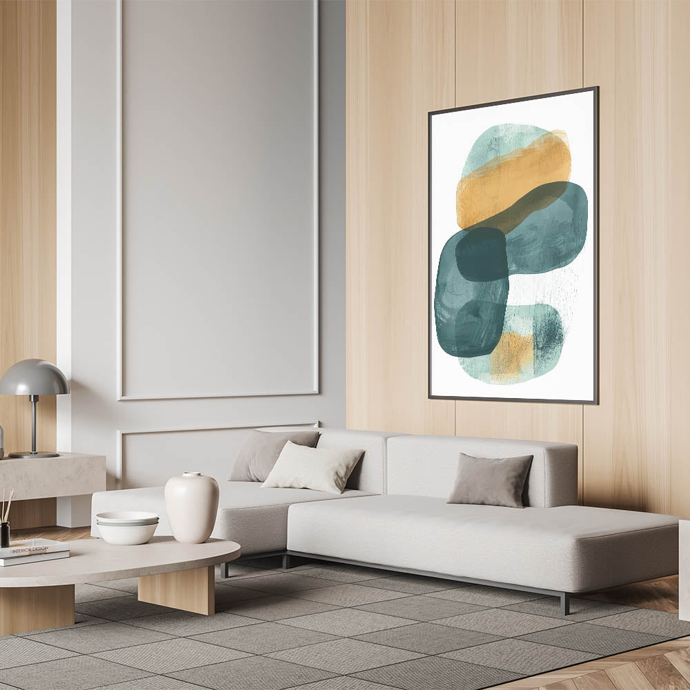 This abstract art print brings nature’s colors indoors, providing a calm and stylish focal point for any wall. Its minimalist design complements a wide range of decor themes, making it a versatile addition to your home.