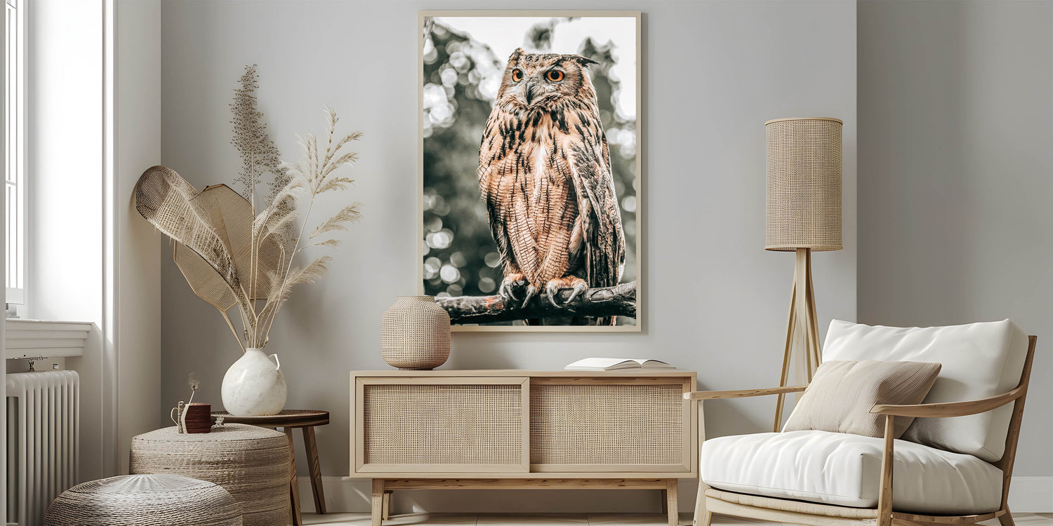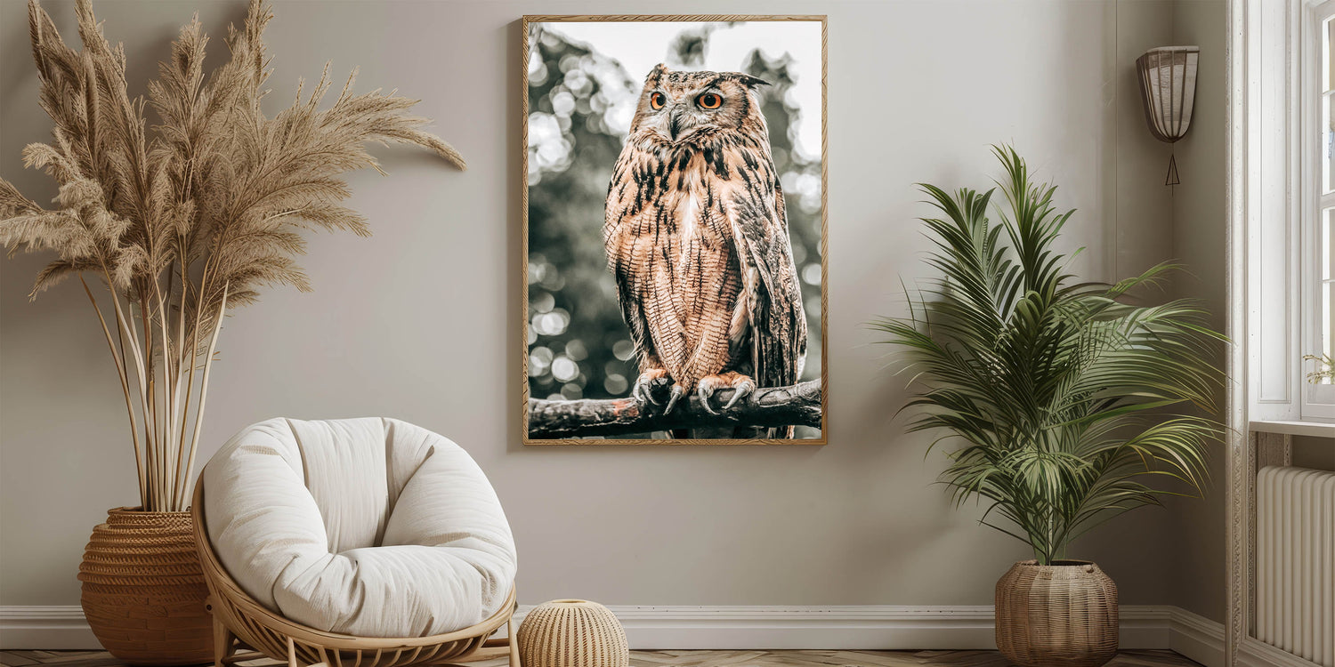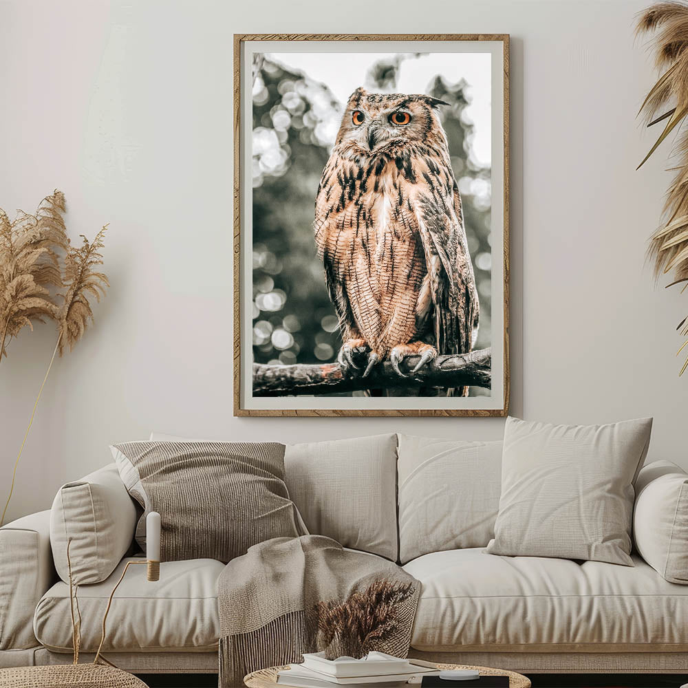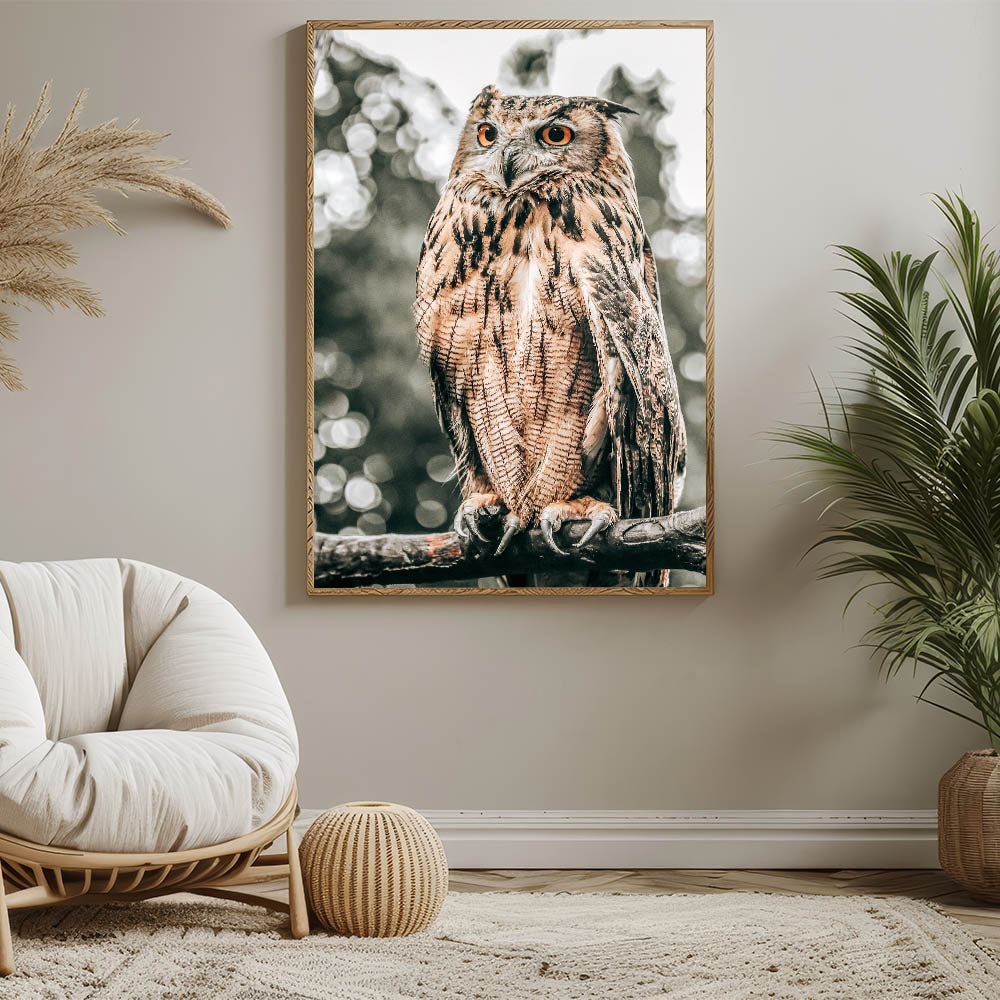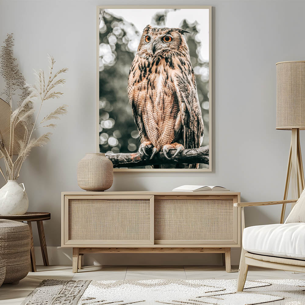 Majestic Owl Wall Art – Rustic Farmhouse Nature-Inspired Decor Print