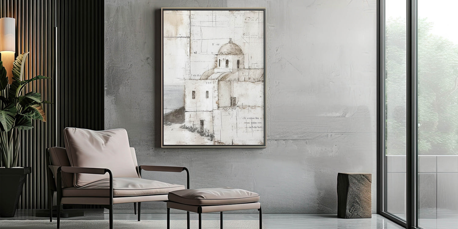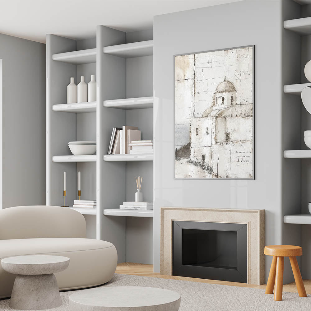 Embrace the beauty of simplicity with this Minimalist Abstract Architecture Art. This piece captures a coastal structure in a monochrome palette, blending soft whites and muted grays to create a calming, sophisticated aesthetic. The architectural lines and gentle textures give it a timeless appeal, perfect for those who appreciate minimalist and serene decor.