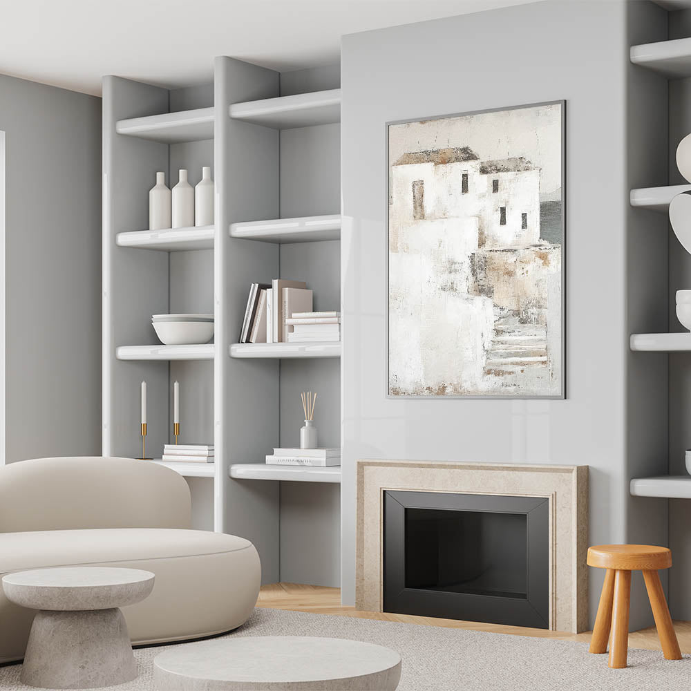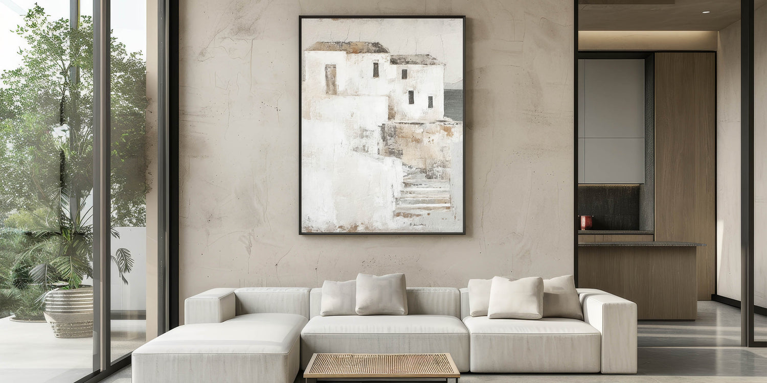 This abstract architectural artwork is designed for those who appreciate understated elegance. Its neutral tones allow it to blend seamlessly with various decor styles, making it a versatile addition that brings a calming and modern touch to any space.
