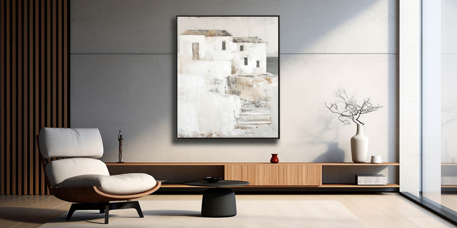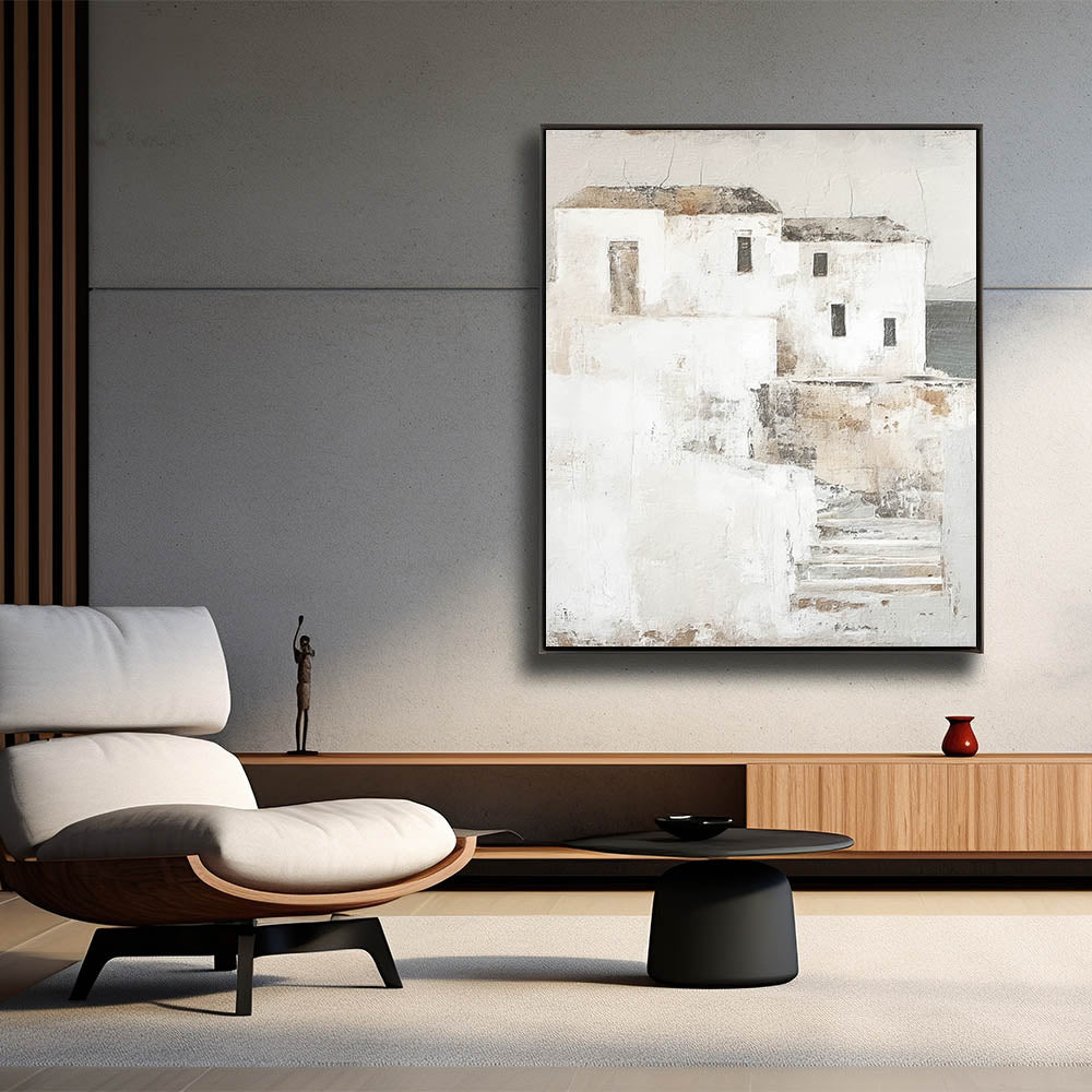 Discover the beauty of simplicity with this Minimalist Abstract Architecture Wall Art, showcasing coastal architecture in a refined monochromatic palette. This design emphasizes clean lines and neutral tones, creating a serene, timeless aesthetic. The subtle blend of white, gray, and soft beige captures the essence of minimalism, making this piece perfect for contemporary and modern interiors.
