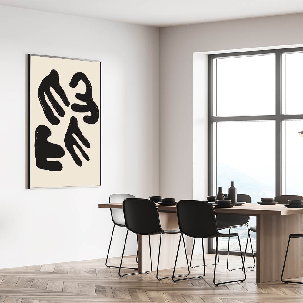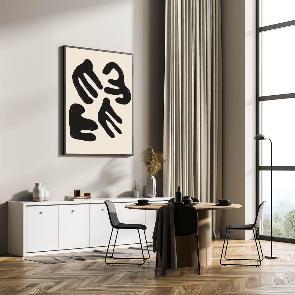 Add a dynamic touch to your home with this bold minimalist abstract art from The Garden Collection. Featuring a series of bold black shapes arranged in an abstract composition on a neutral beige background, this piece offers a modern and sophisticated design. Its striking contrast and clean lines make it a statement piece that enhances any contemporary or minimalist interior.