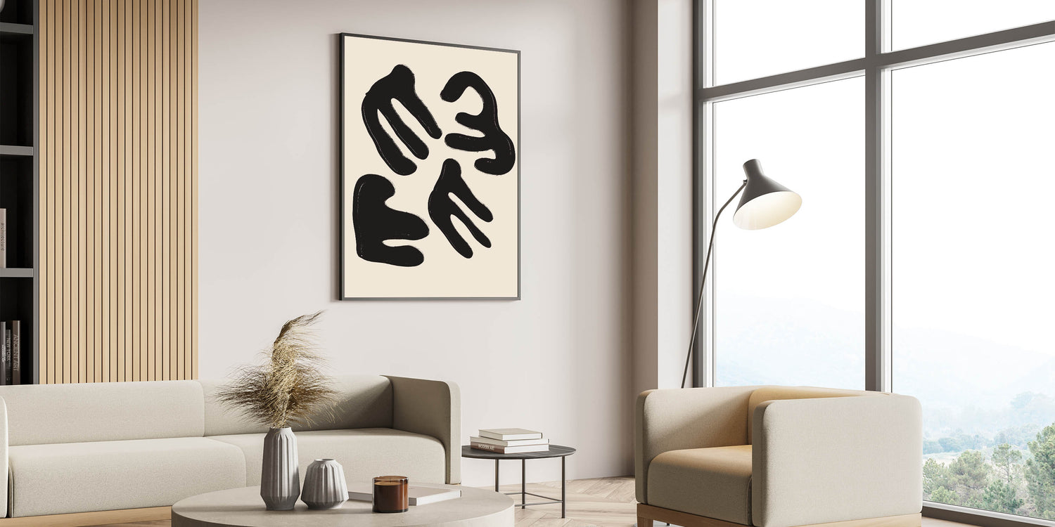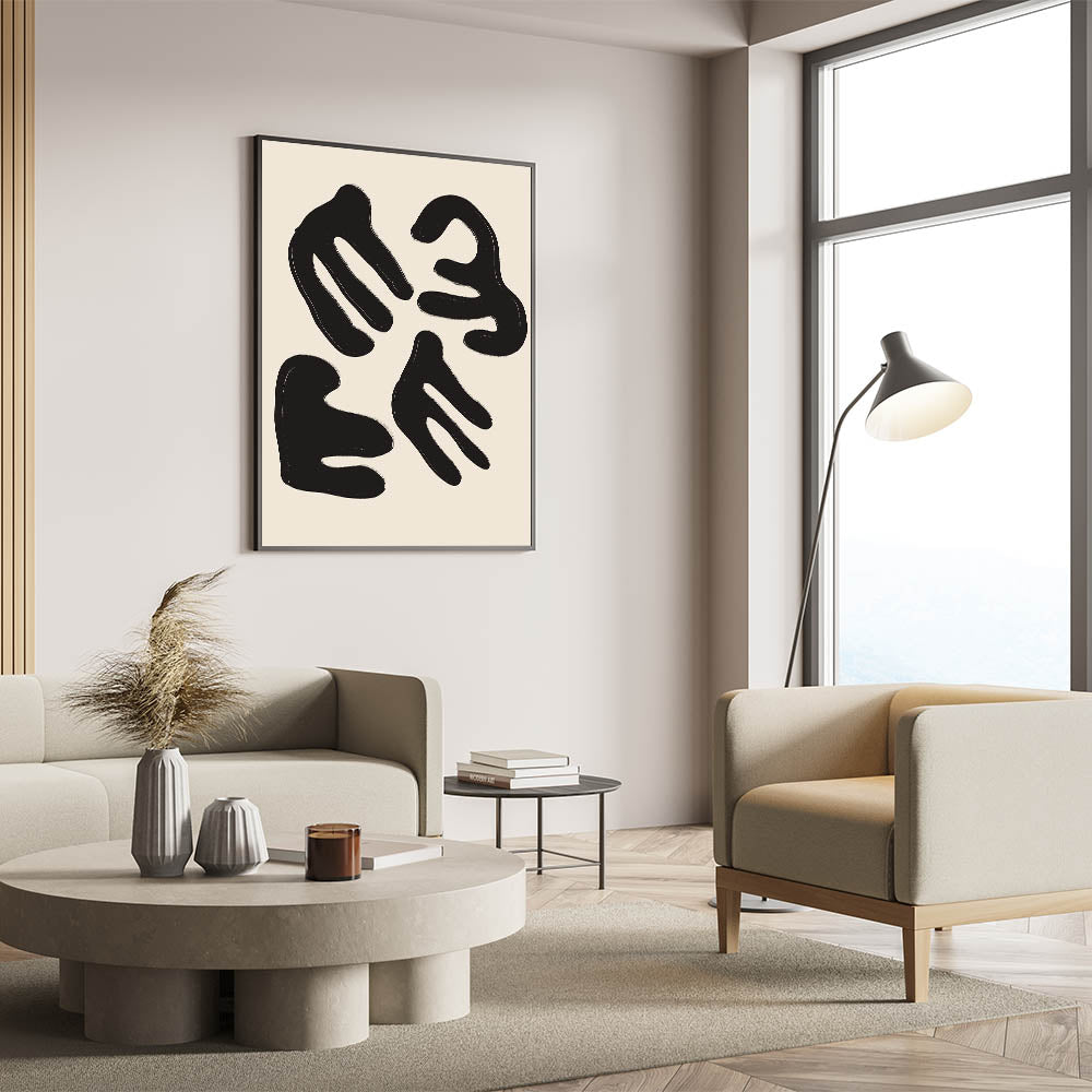 This minimalist abstract art is perfect for those who appreciate modern, bold designs. Its strong contrast and neutral color palette make it a versatile piece that can enhance any room with its bold yet minimalist aesthetic.