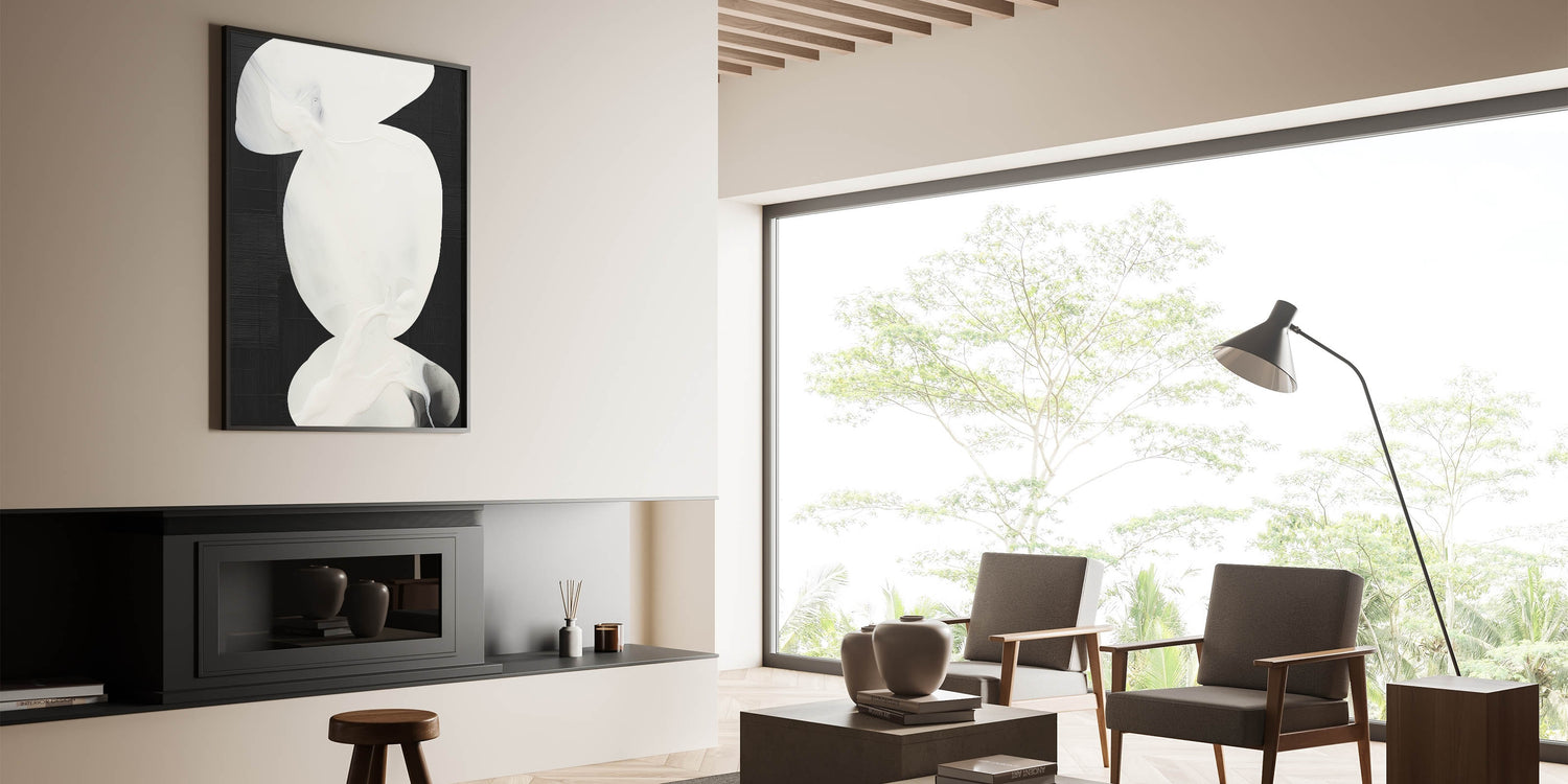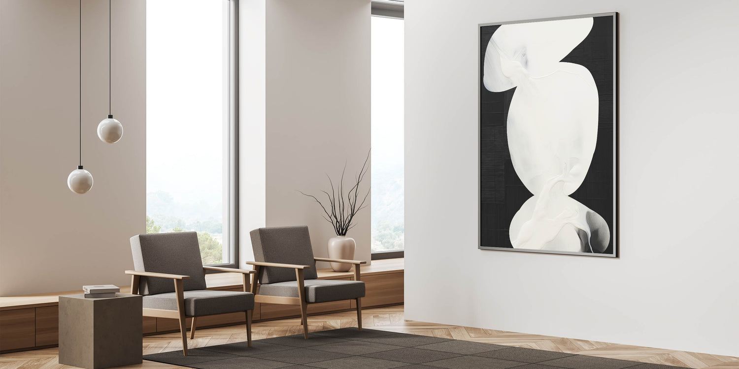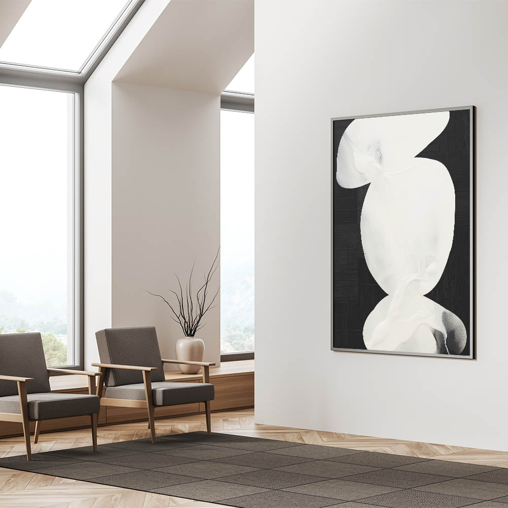 This unique abstract artwork adds elegance to any room, making it an ideal choice for those who appreciate minimalist design and high-contrast decor.