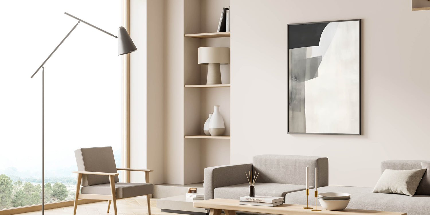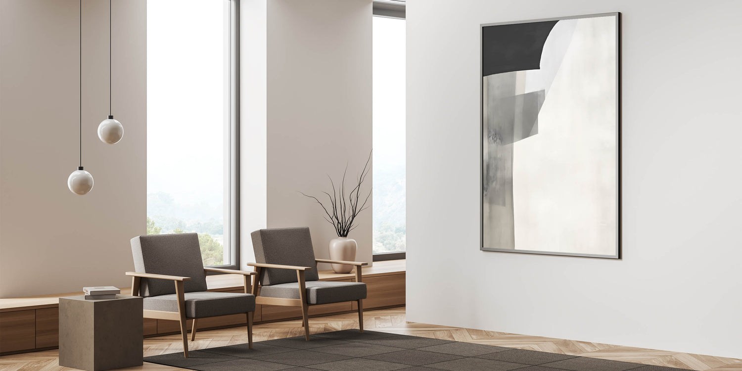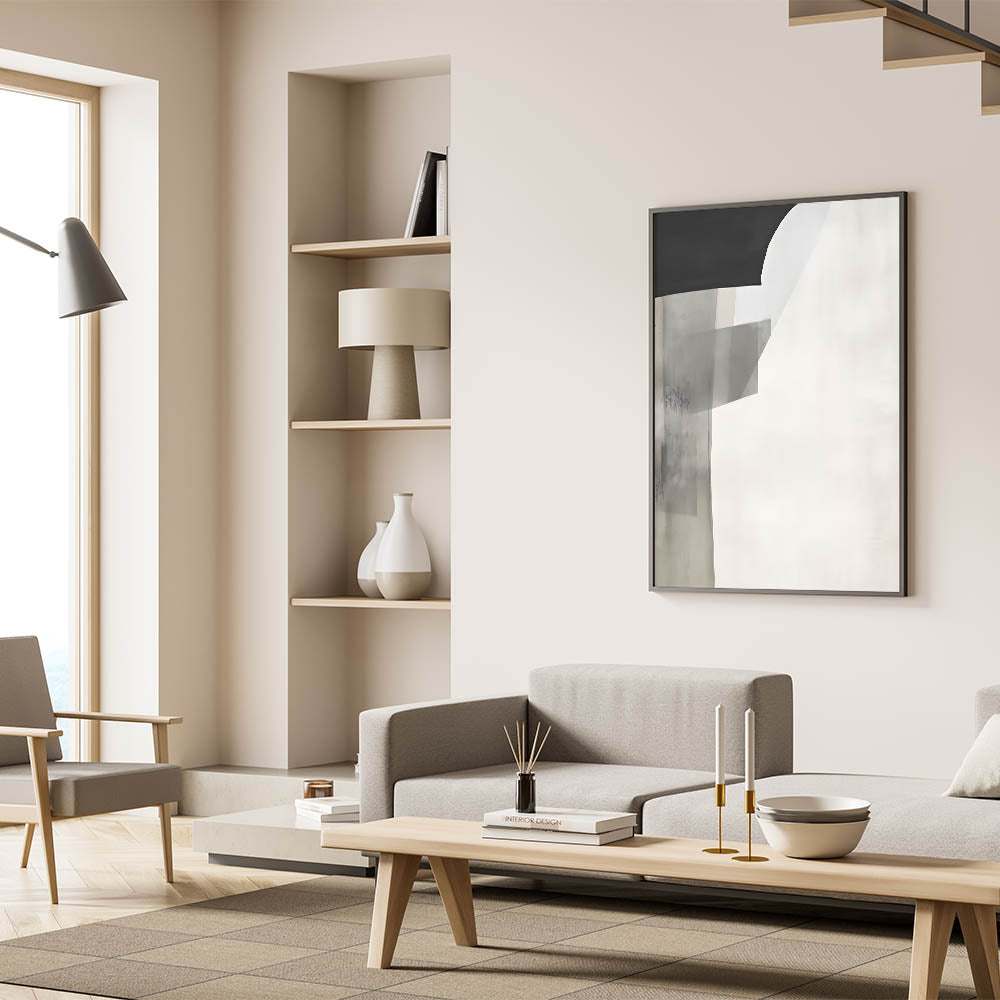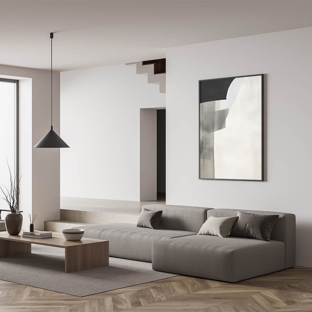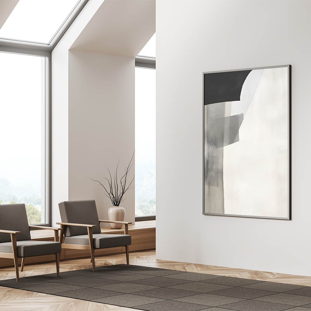 Minimalist Abstract Art Print - Black Gray White Subtle Geometric Design