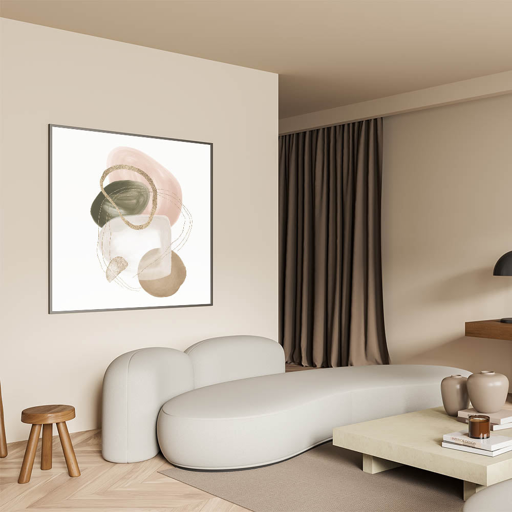 Elevate your interior with this refined geometric minimalist abstract wall art, featuring a delicate blend of earthy tones and soft brushwork. Designed for those who appreciate both simplicity and sophistication, this piece combines blush pink, olive green, beige, and white with elegant gold accents, creating a soothing and modern aesthetic. Ideal for minimalist or nature-inspired interiors, it brings harmony and understated luxury to your space.