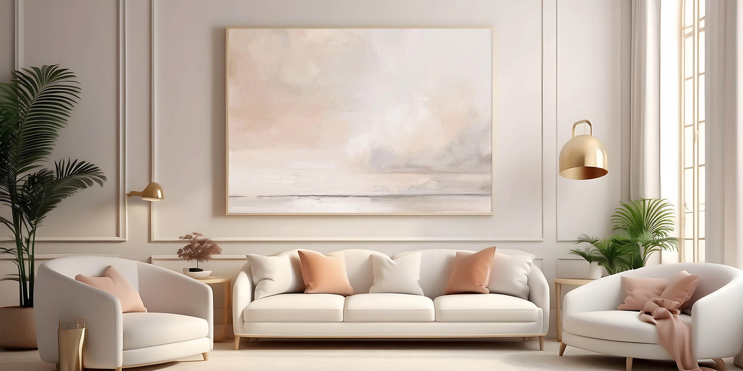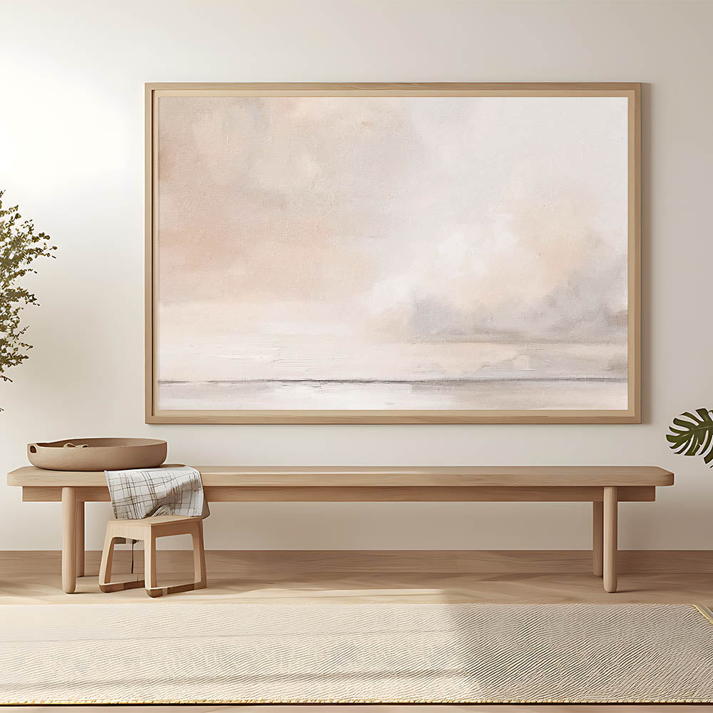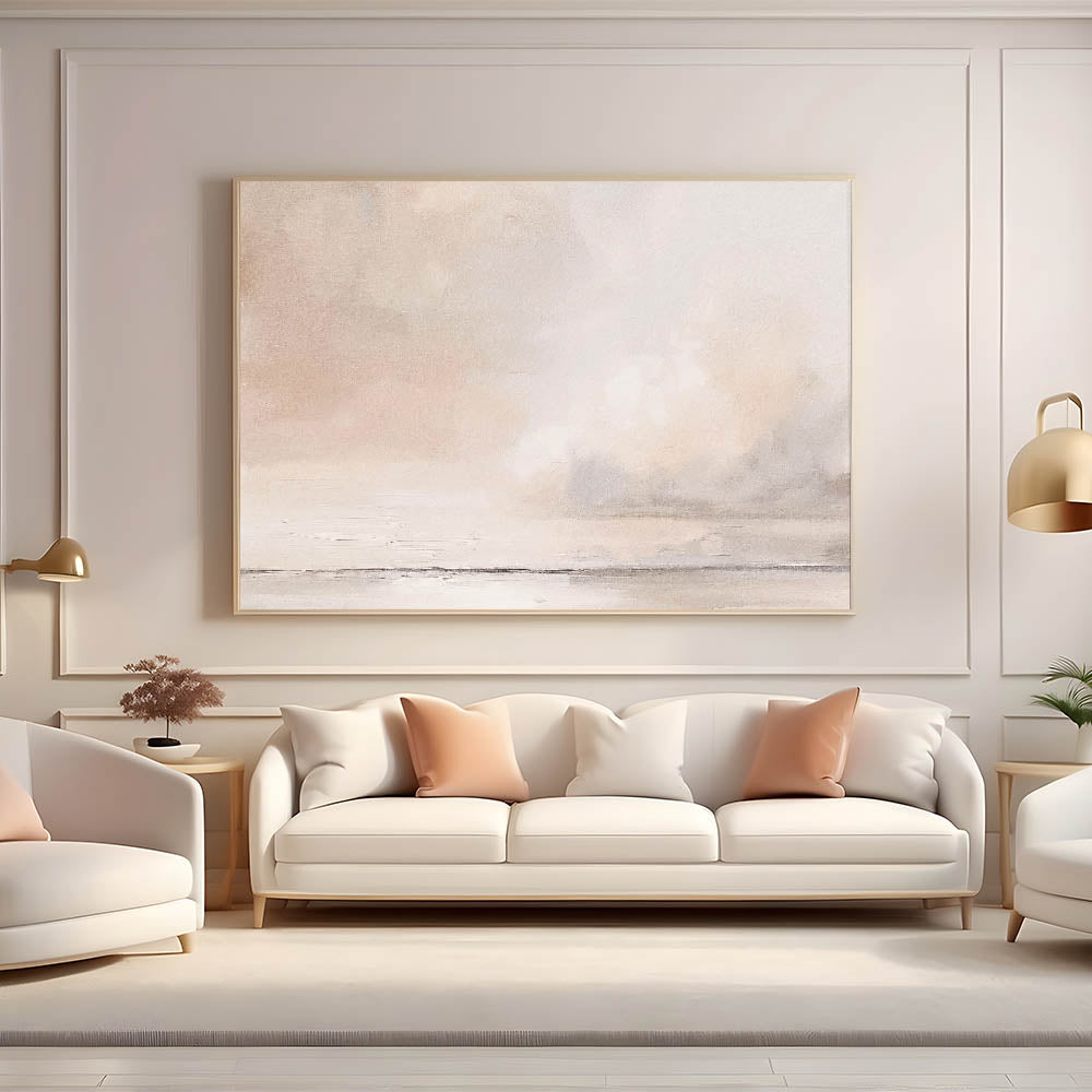 Transform your space with the subtle elegance of this minimalist abstract landscape art. Featuring soft tones of beige, cream, and hints of light gray, this artwork creates a tranquil atmosphere that is perfect for modern and minimalist decor. The delicate, cloud-like forms and muted colors make it an ideal choice for those who appreciate understated beauty.