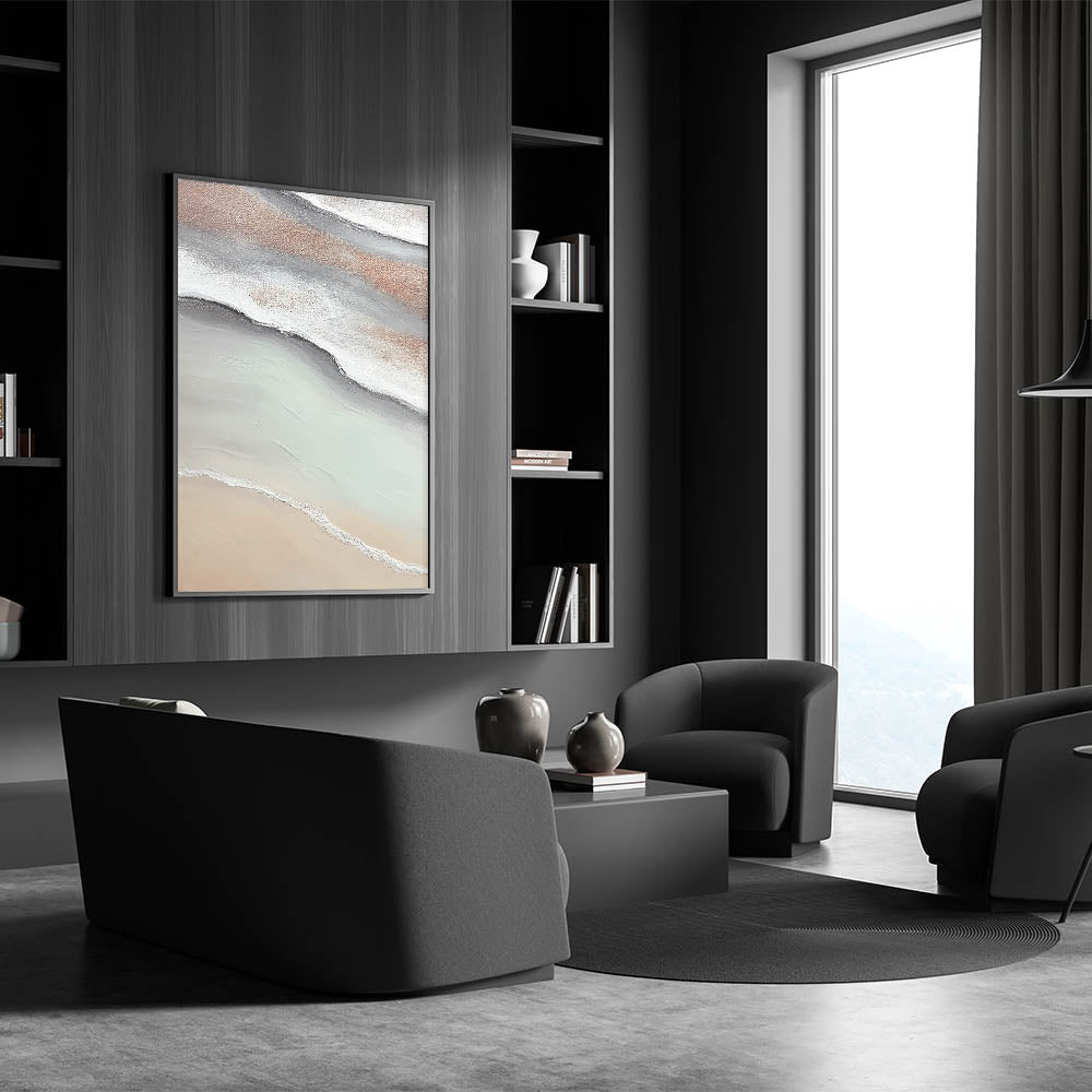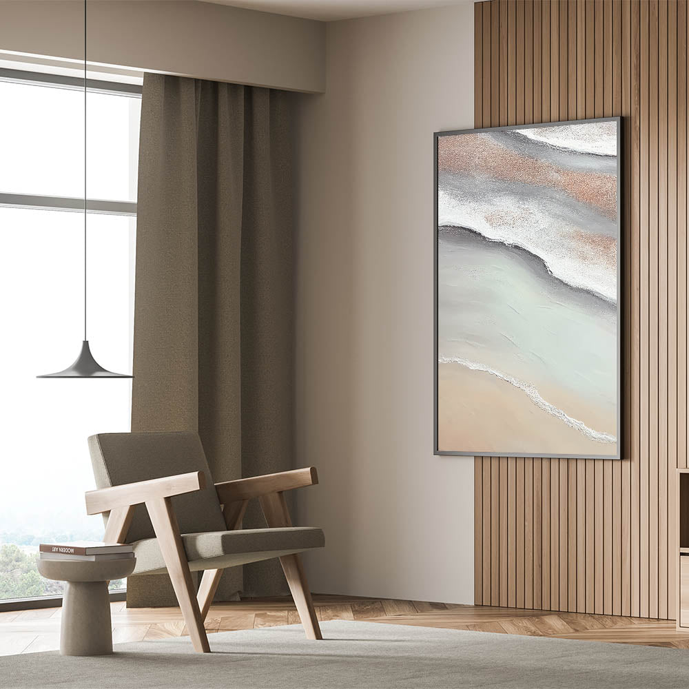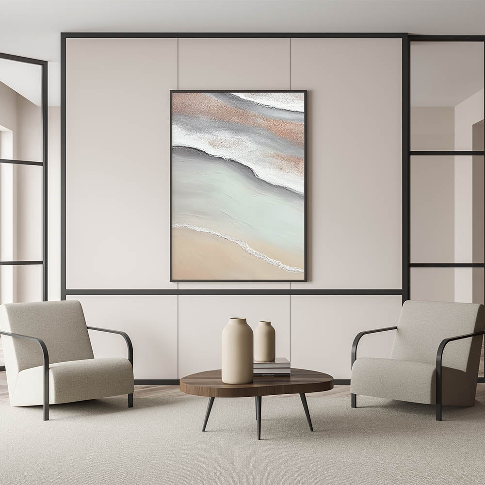 Infuse your space with the calming essence of a sandy shore with this minimalist abstract landscape art. Featuring soft, natural tones of beige, white, and subtle gray, this artwork captures the gentle movement of waves along a sandy coastline. Ideal for modern, coastal, or minimalist interiors, this canvas print offers a serene and sophisticated addition to any room, bringing the soothing atmosphere of the beach into your home.