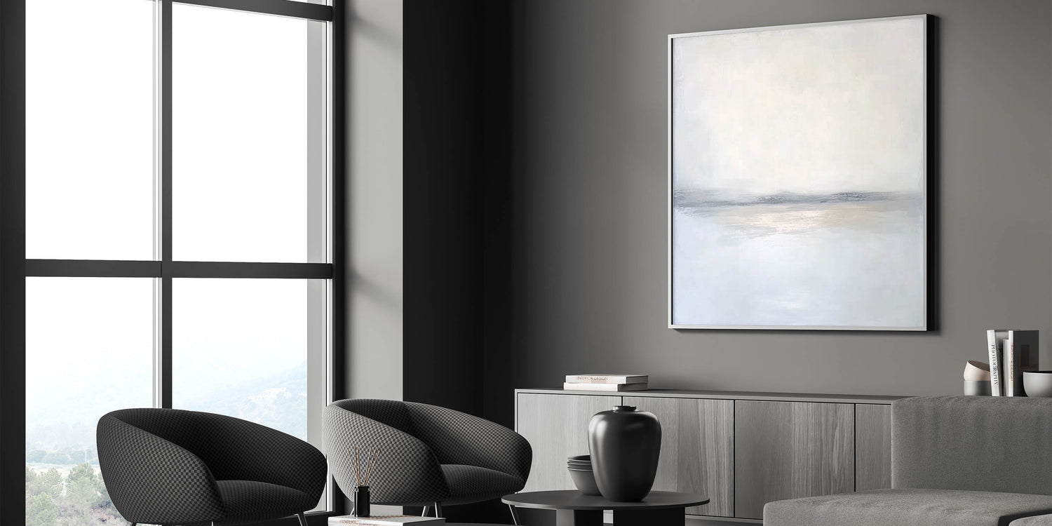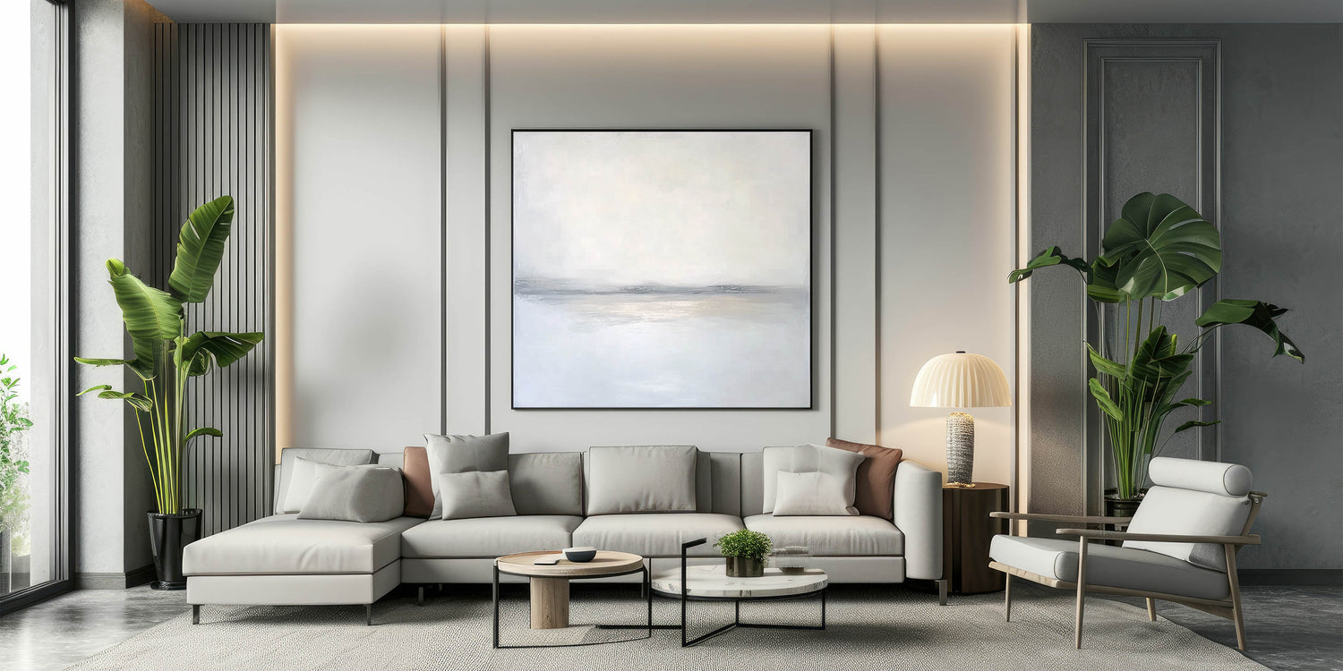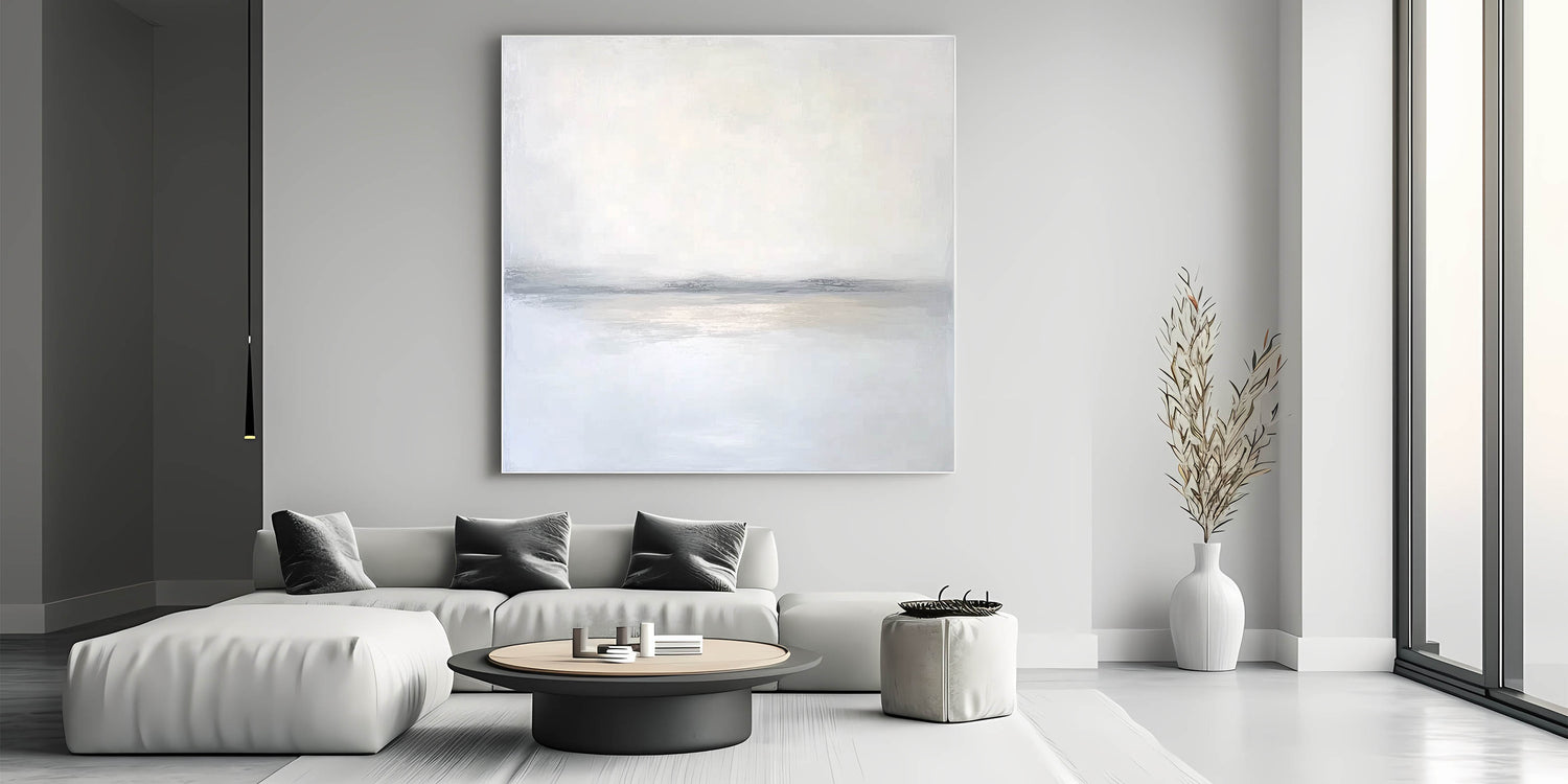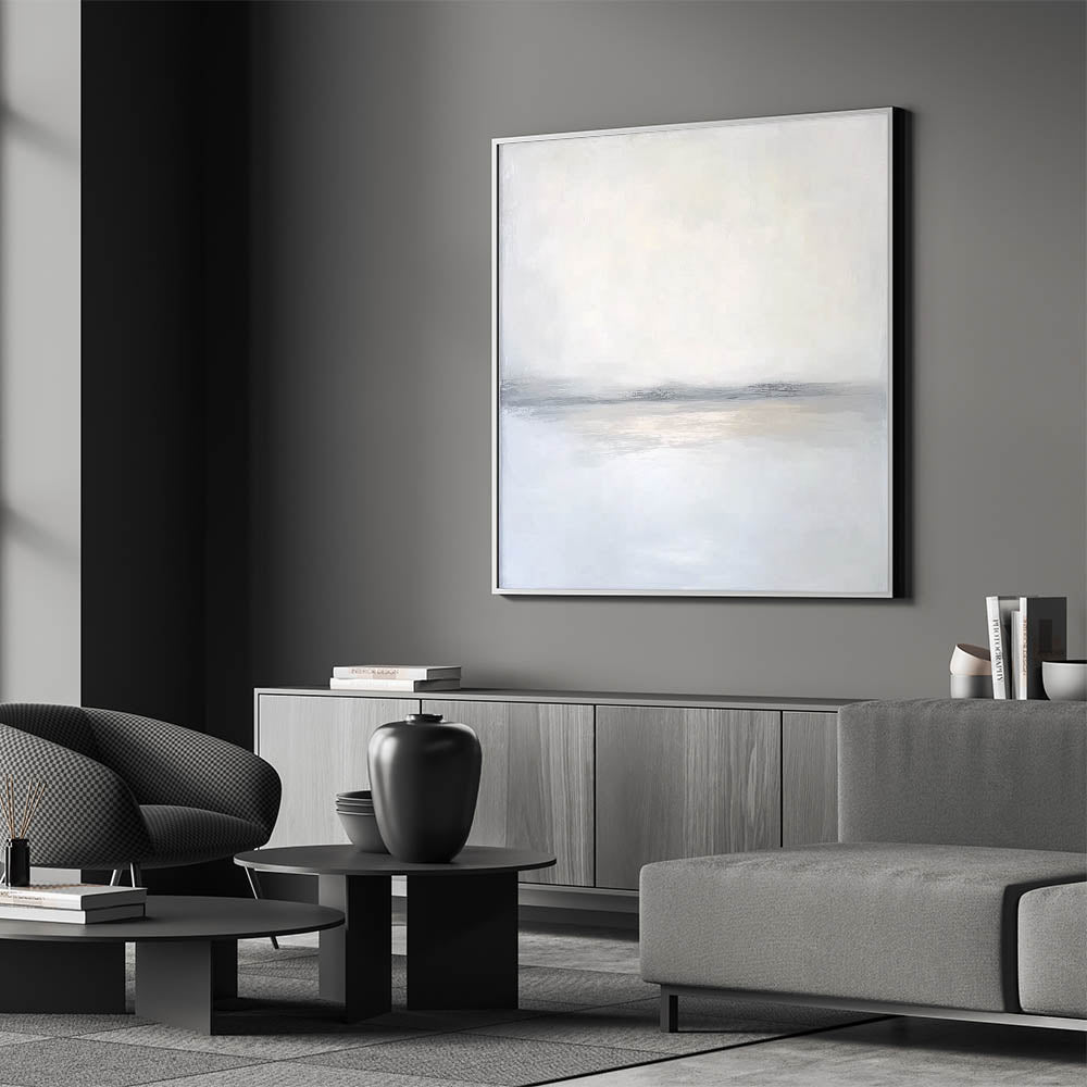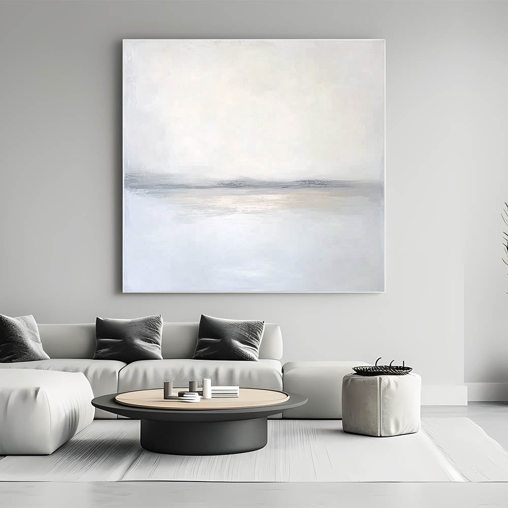 Introduce a sense of calm and sophistication to your space with this minimalist abstract landscape art, featuring a delicate blend of soft gray and subtle white tones. The gentle transitions between light and shadow evoke the serenity of open horizons and still waters, making this piece a perfect addition to modern and contemporary interiors. Its tranquil design seamlessly complements living rooms, bedrooms, or offices.