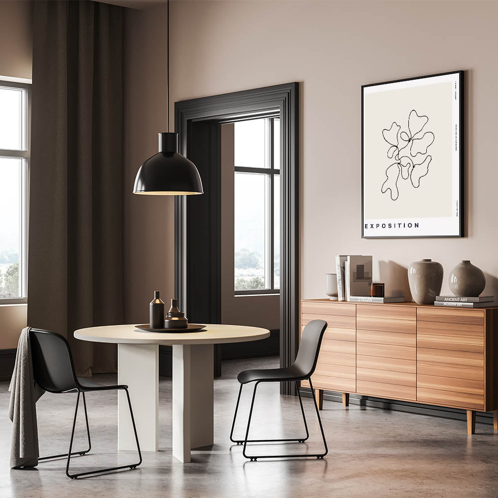 This minimalist wall art features a unique abstract line design titled "Exposition," blending bold simplicity with modern elegance. The organic shapes created by the flowing black lines stand out against the neutral background, adding a sophisticated and contemporary touch to any room. Ideal for those who appreciate modern minimalist art, this piece is a statement of both artistic expression and minimalist design.