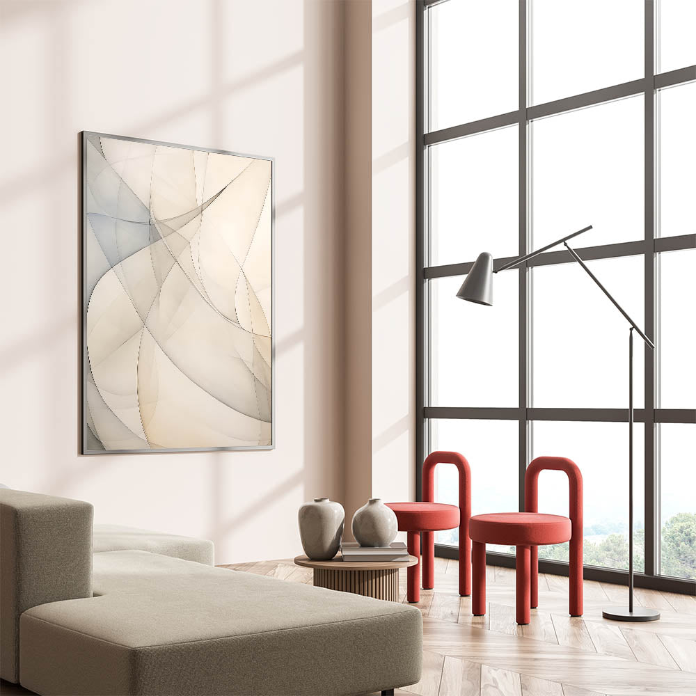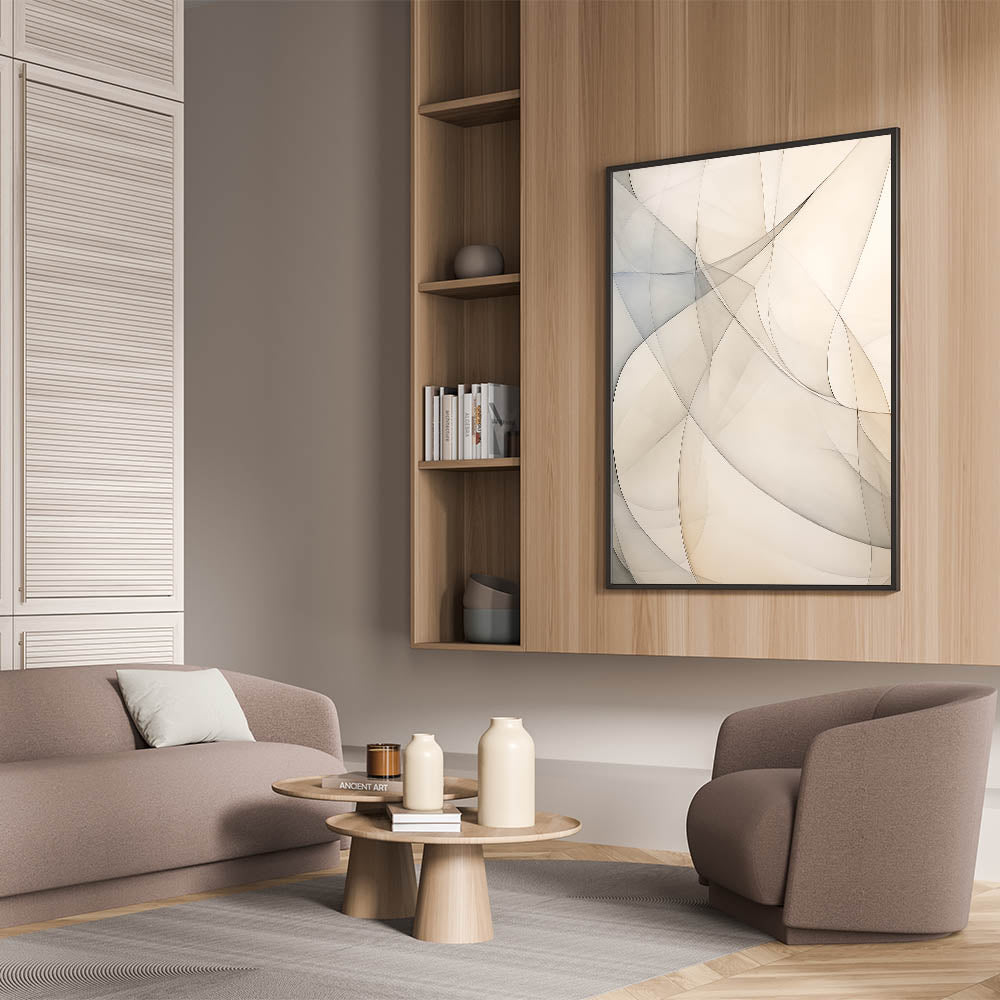 Transform your space with this elegant minimalist abstract wall art, featuring soft, flowing curves in neutral tones of beige and gray. The gentle, overlapping shapes create a calming and harmonious composition, making this piece ideal for modern interiors. Whether placed in a living room, bedroom, or office, this artwork adds a serene and stylish touch to any space.