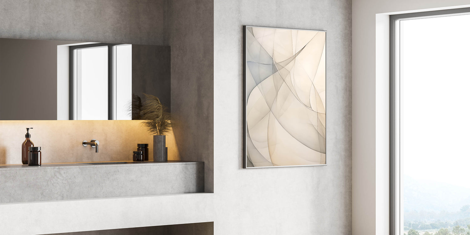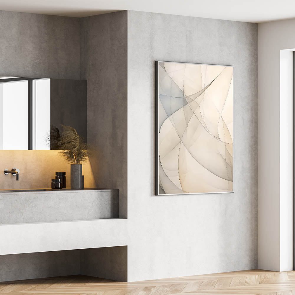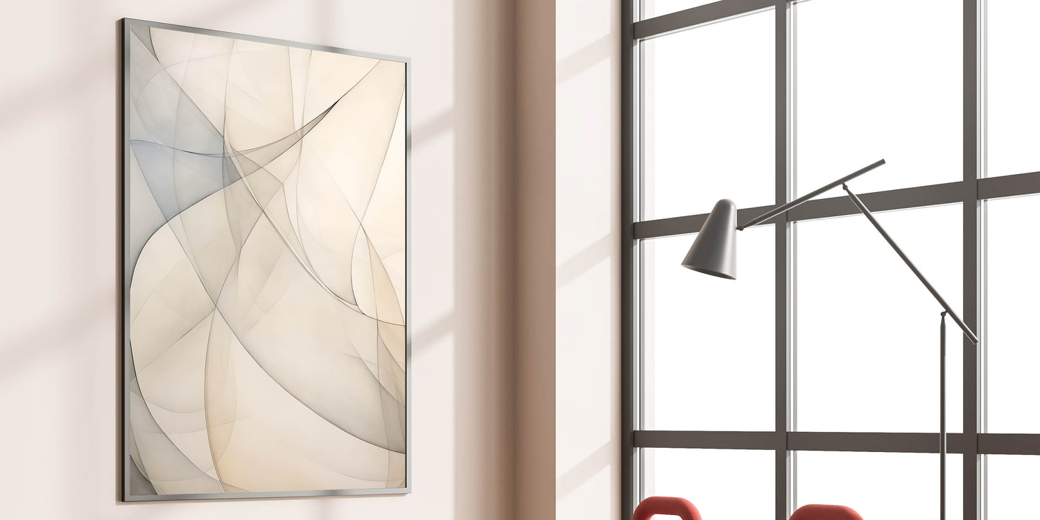 Minimalist Abstract Wall Art - Soft Curves in Neutral Beige and Gray