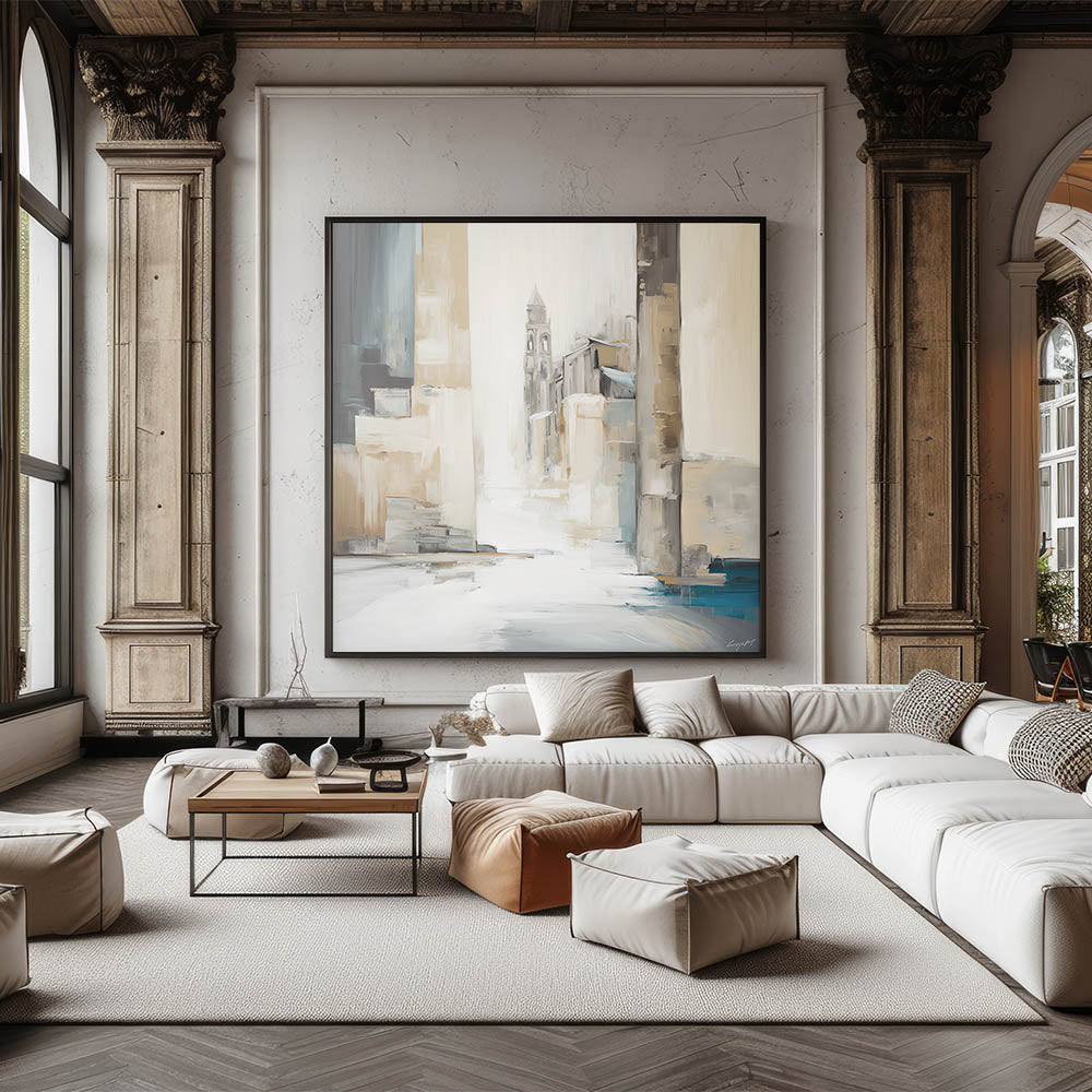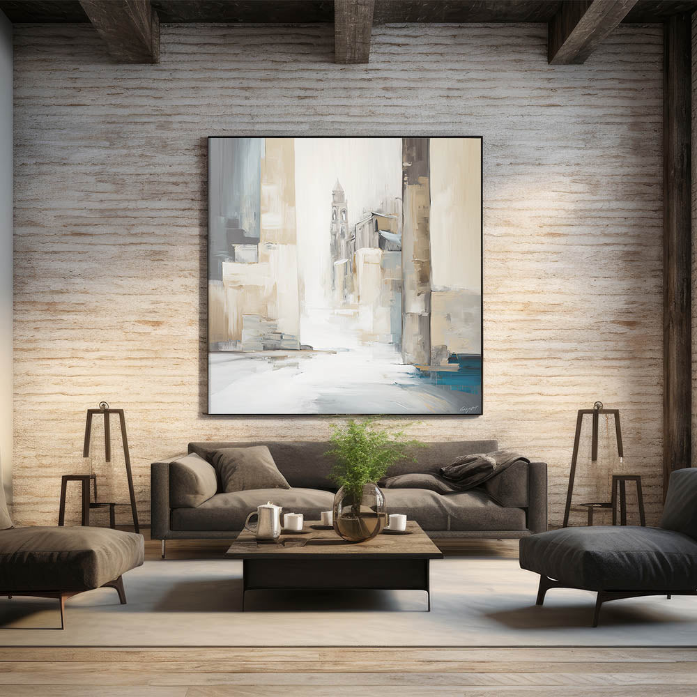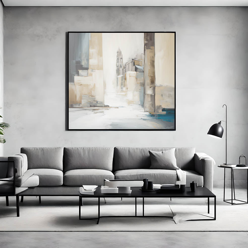 Introduce an air of sophistication to your space with this Minimalist Architectural Wall Art. This piece features a serene, abstract cityscape with muted beige, gray, and soft blue tones, creating a refined and tranquil urban ambiance. The minimalist design and subtle architectural details make it perfect for enhancing modern and contemporary interiors.