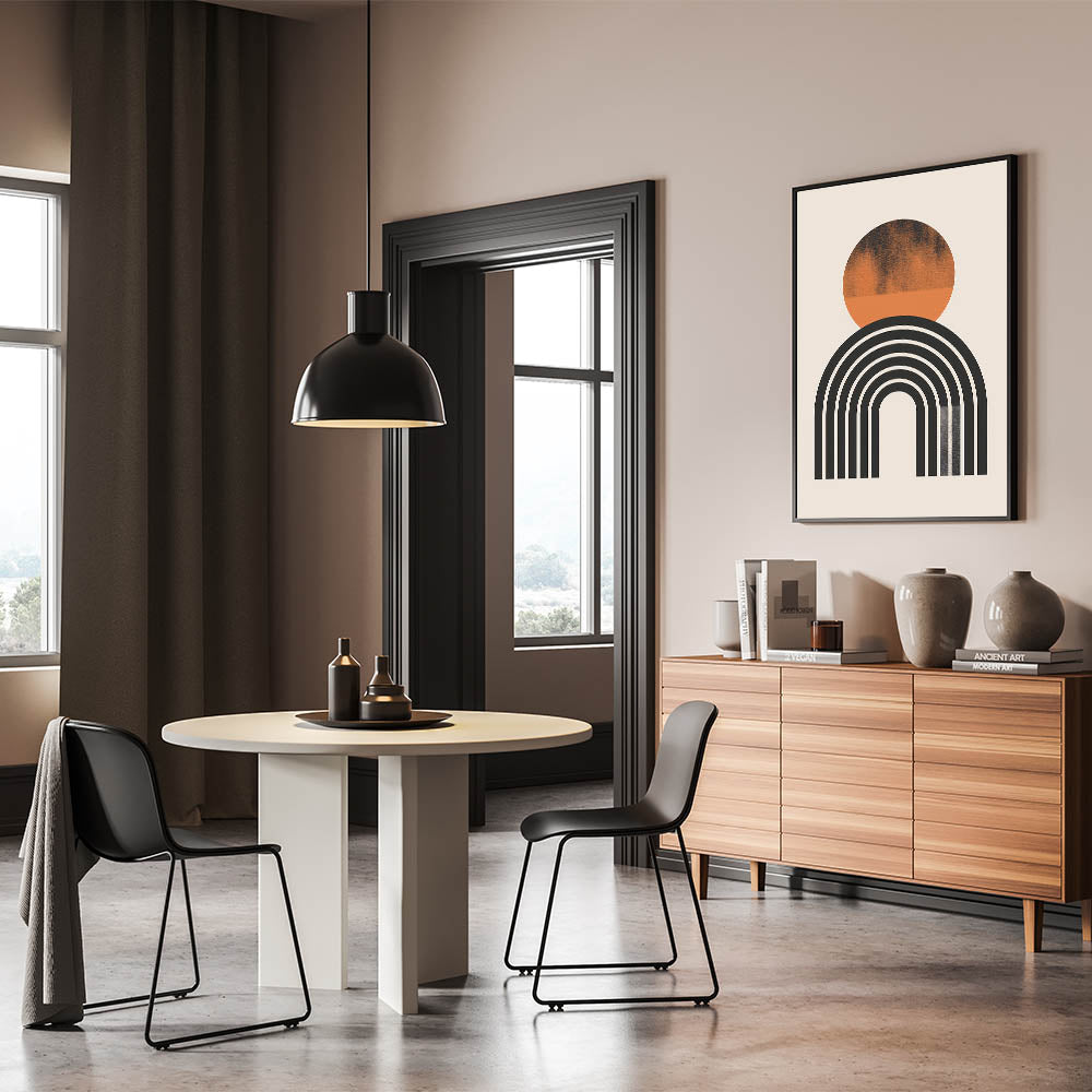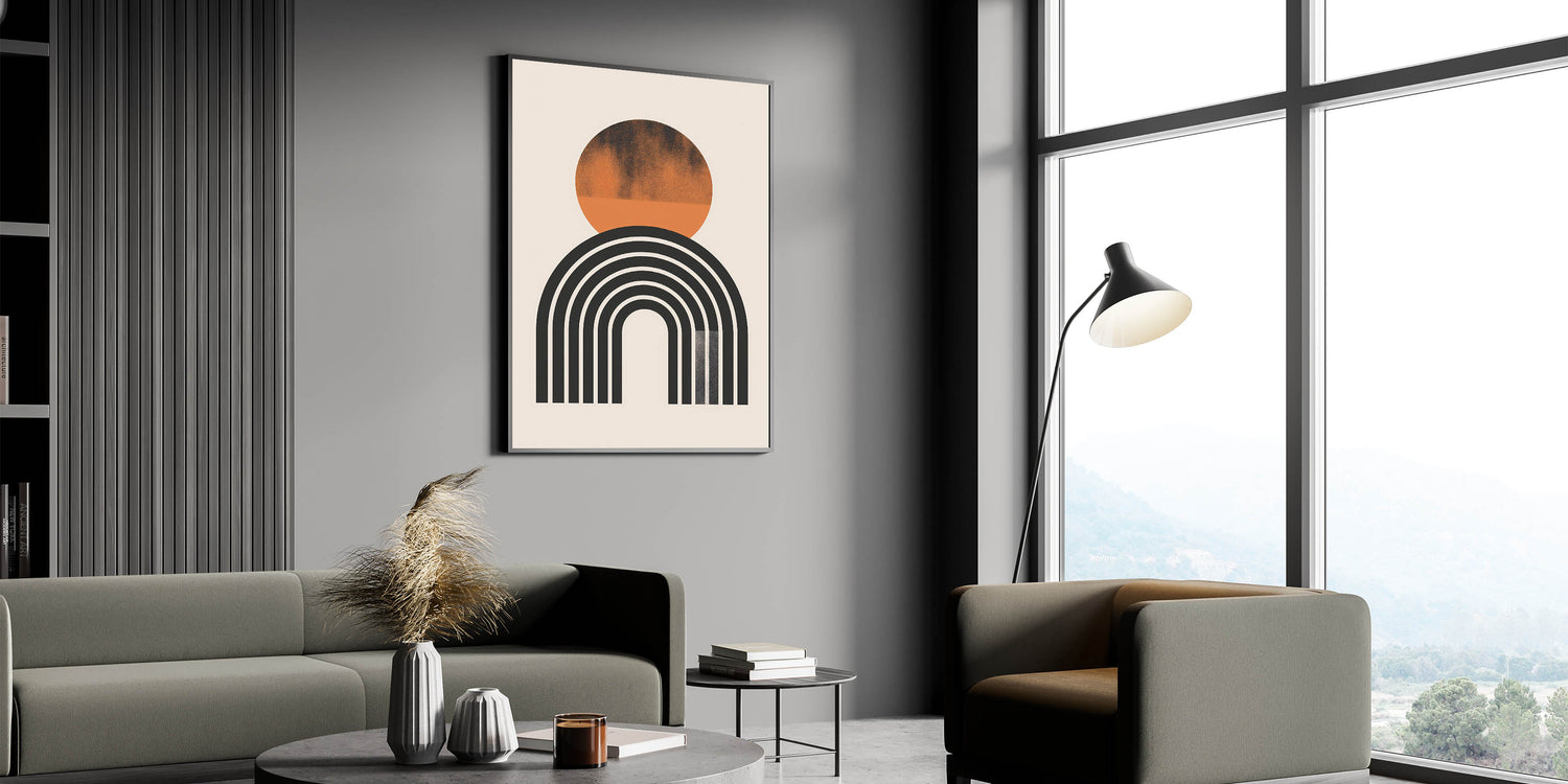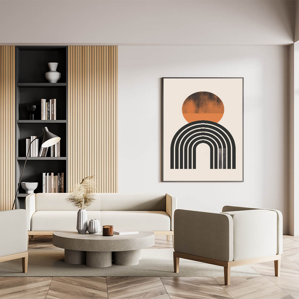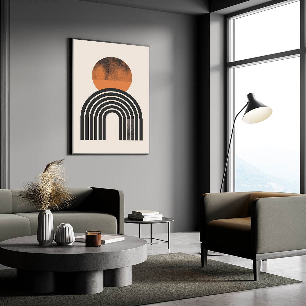 Introduce modern minimalist style into your home with this stunning Bohemian wall art. Featuring clean geometric lines and an earthy color palette, this unique boho decor canvas is designed to enhance any contemporary interior. The bold arch design and warm orange tones create a harmonious balance, bringing a stylish and artistic bohemian aesthetic to your living space.