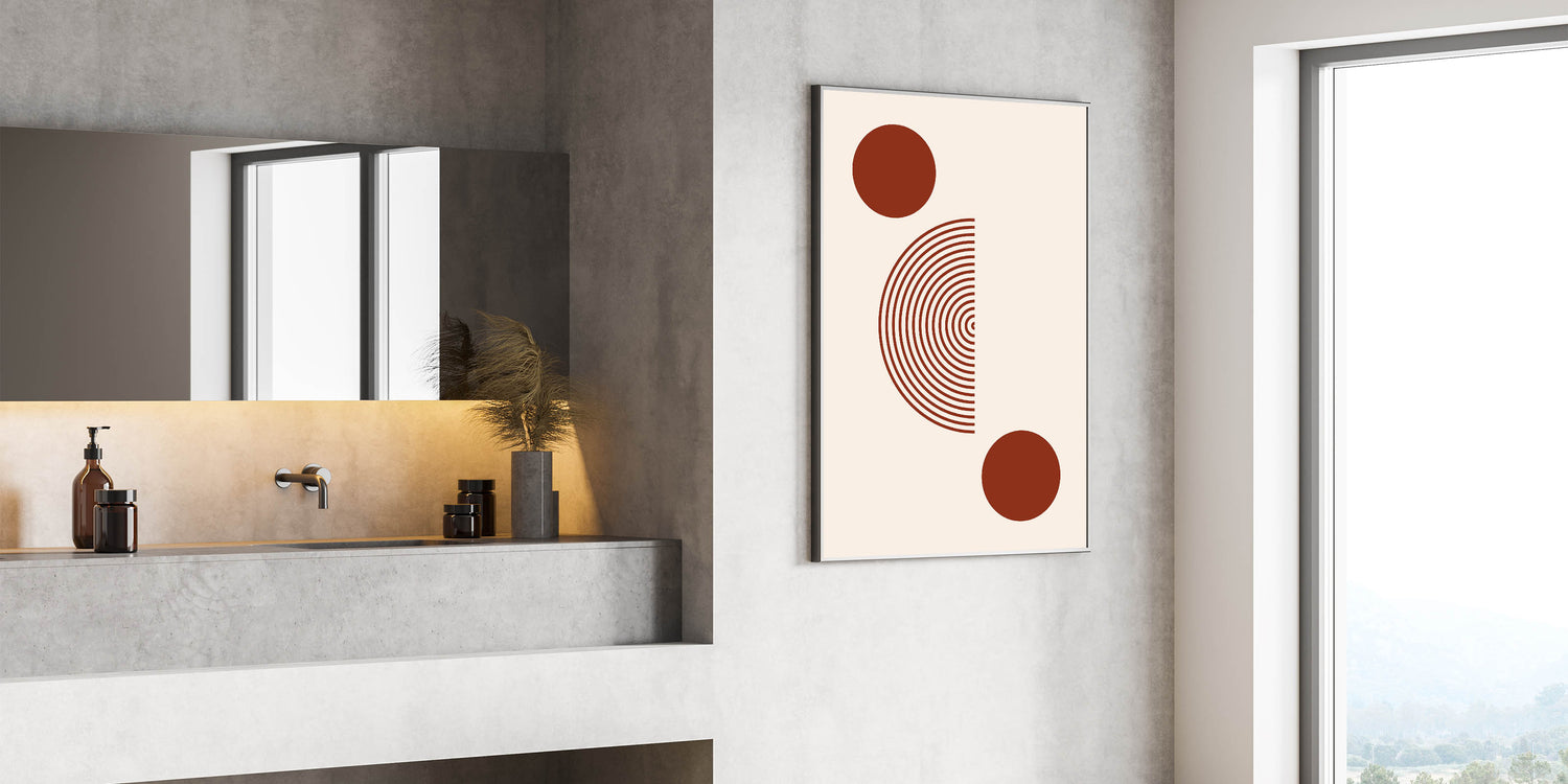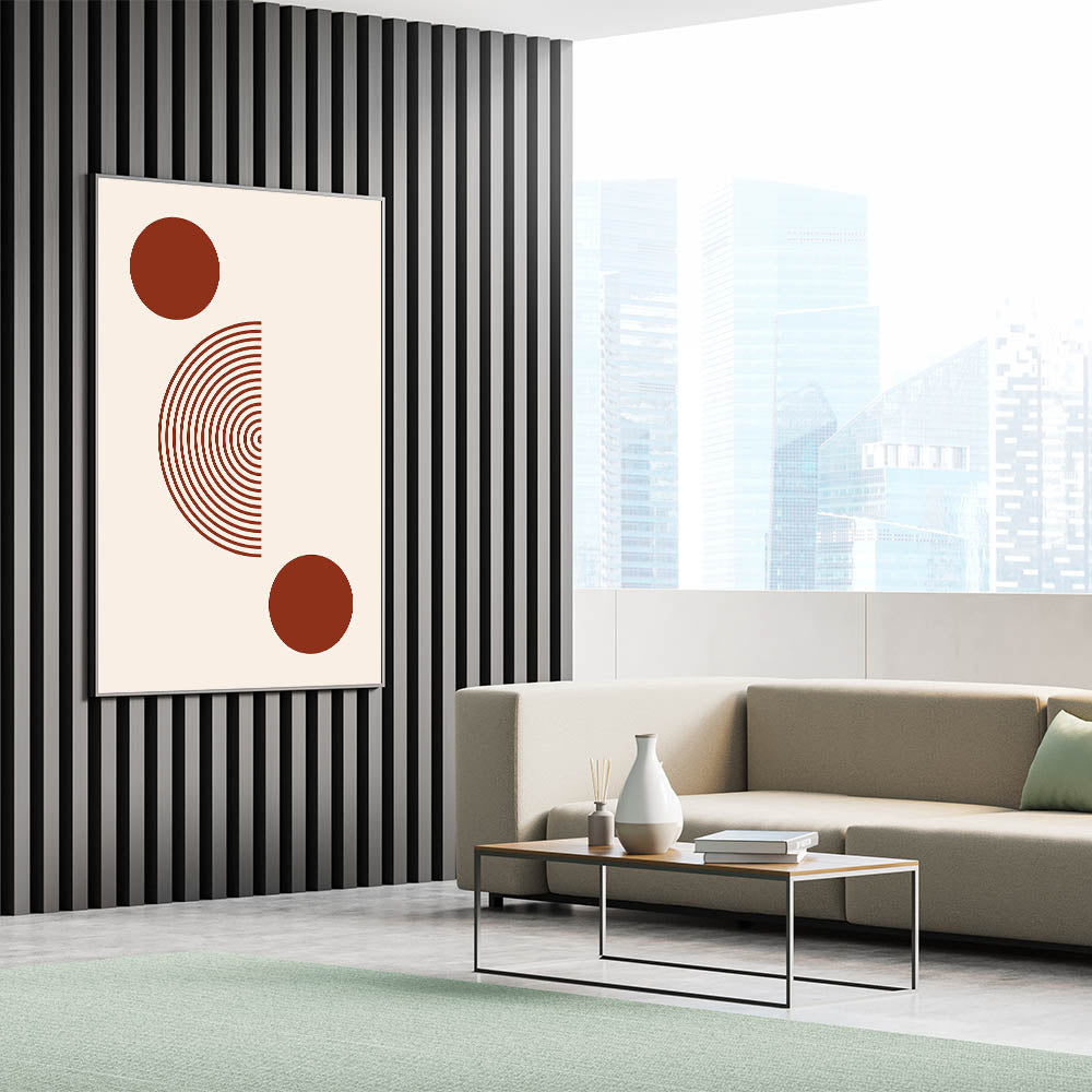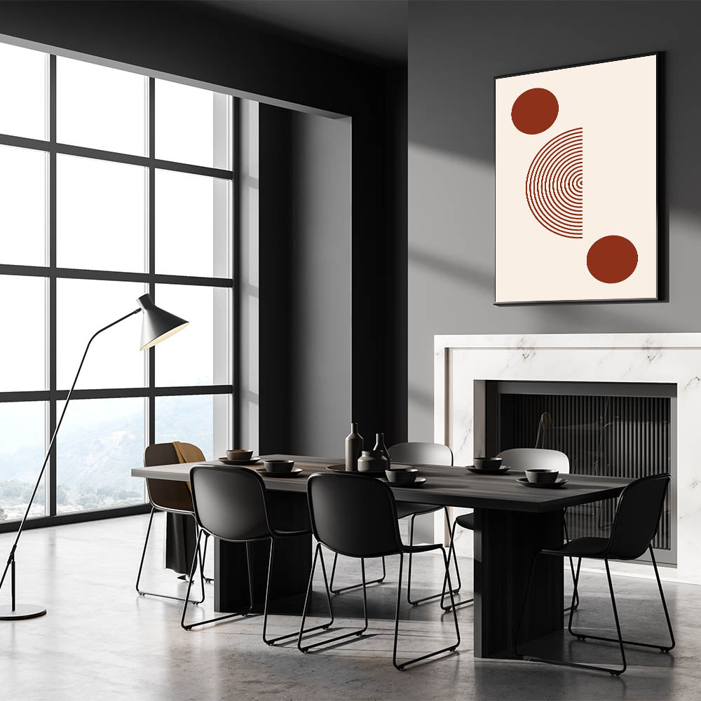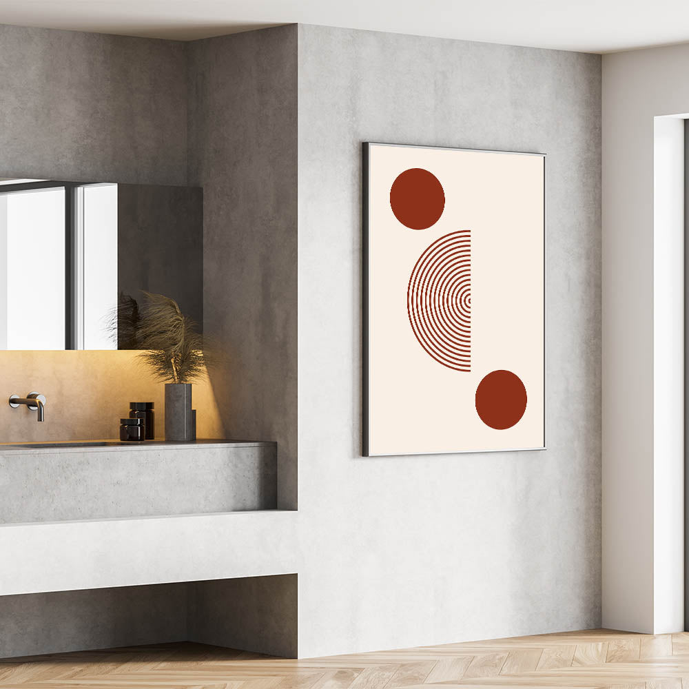 Elevate your space with this minimalist boho wall art, featuring clean geometric lines and earthy tones. The striking use of concentric circles and simple shapes in warm rust and beige creates a bold yet balanced aesthetic, perfect for modern and eclectic interiors. This bohemian canvas print adds a touch of sophistication to living rooms, bedrooms, or offices, making it a versatile piece that blends seamlessly with a variety of decor styles. Its minimalist design is both calming and captivating, offering a chic focal point for any room.