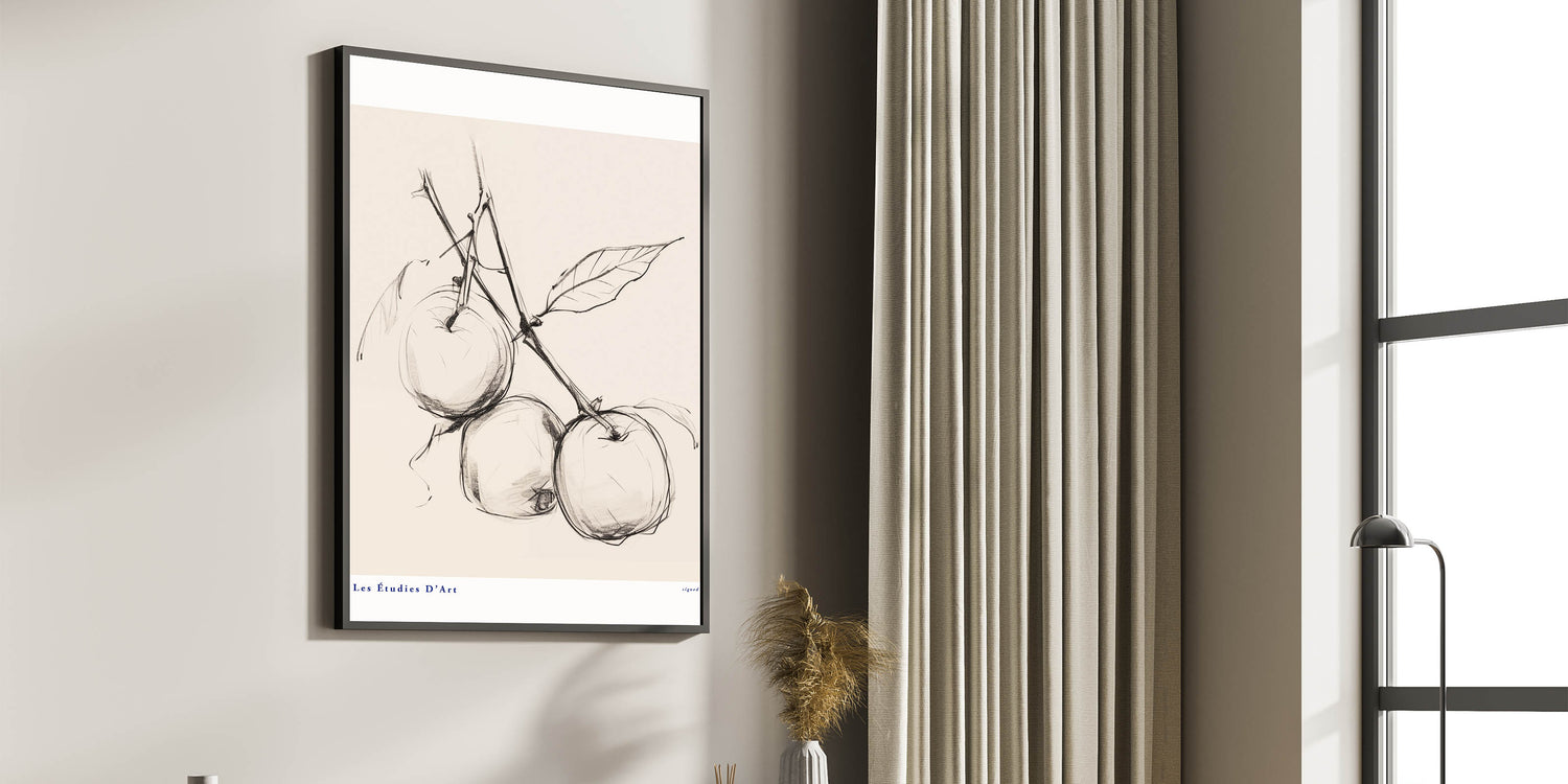 Capture the beauty of nature with this minimalist botanical sketch from Les Étudies D’Art. This simple yet sophisticated fruit illustration uses clean lines and subtle detailing to create a calming and timeless aesthetic. Perfect for modern and contemporary interiors, this artwork embodies the elegance of simplicity, bringing a touch of nature to any space.