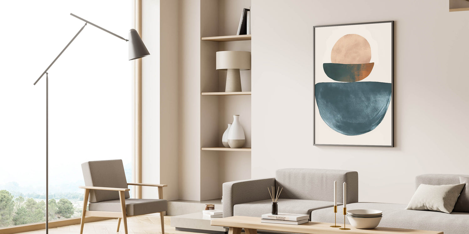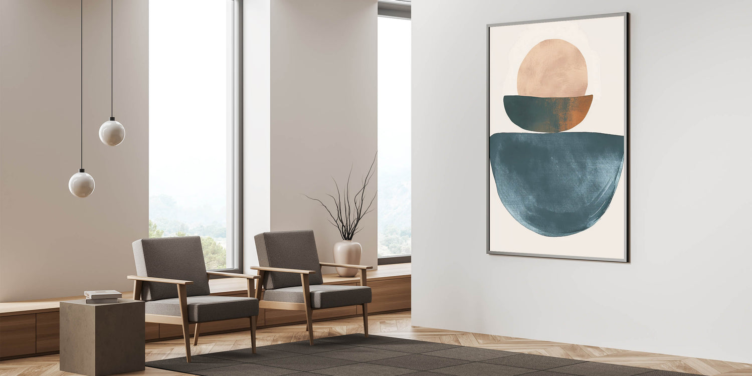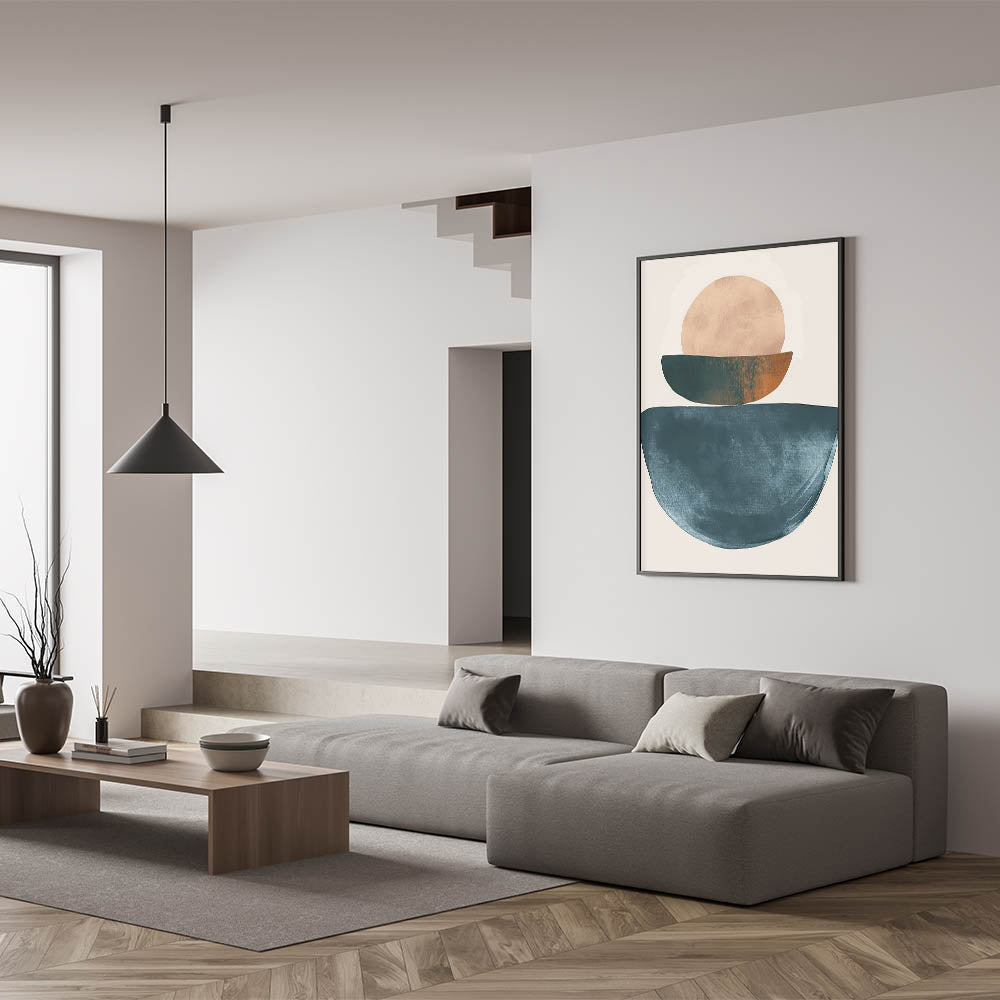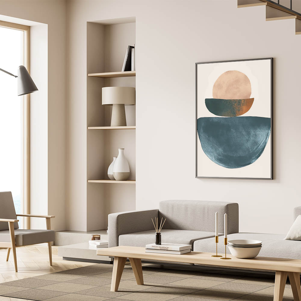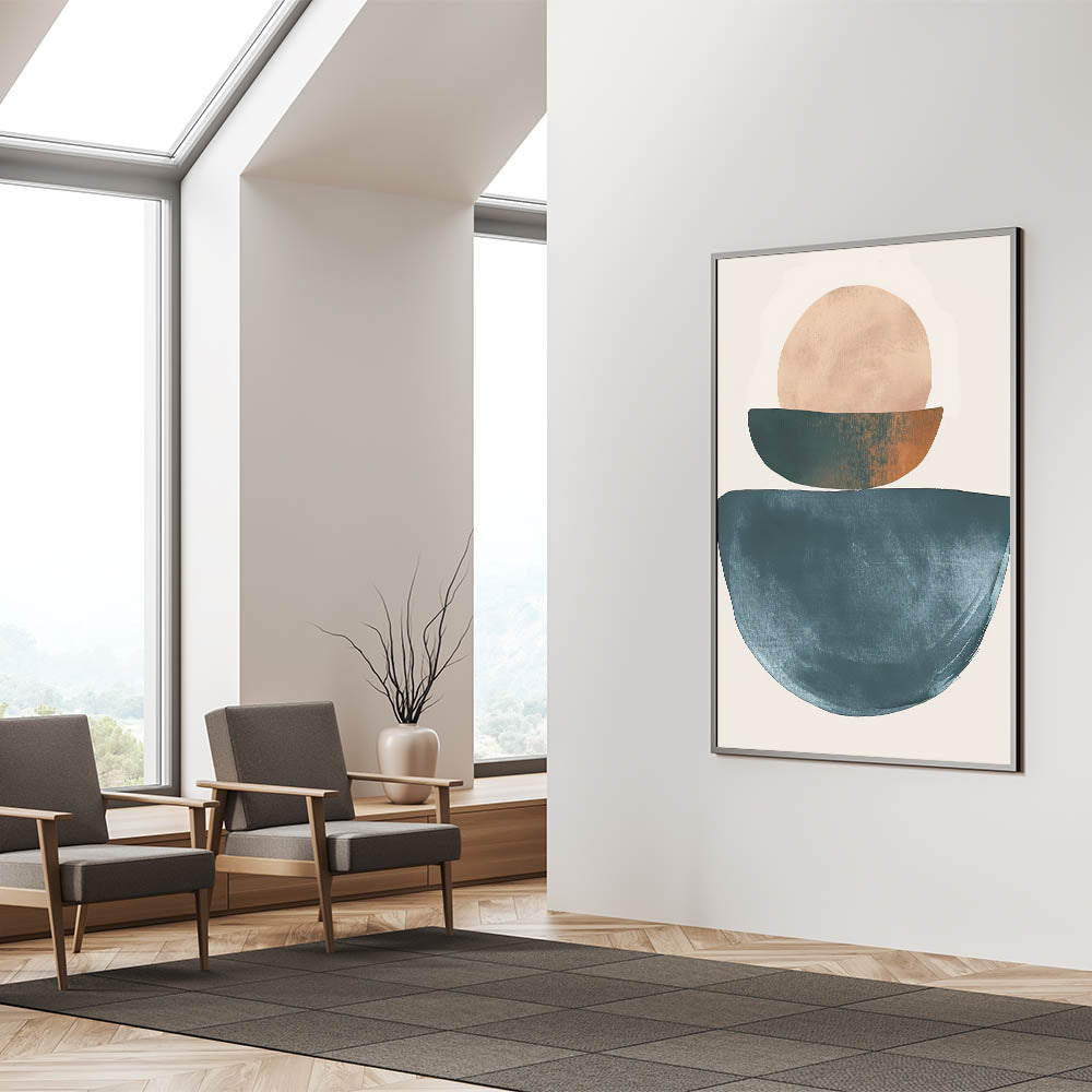 Introduce calm and warmth into your space with this Minimalist Earthy Tones Abstract Art. Featuring geometric shapes in shades of teal, beige, and rust, this piece radiates a sense of balance and simplicity. Ideal for creating a serene atmosphere, this art is perfect for modern living rooms, bedrooms, or cozy reading nooks.