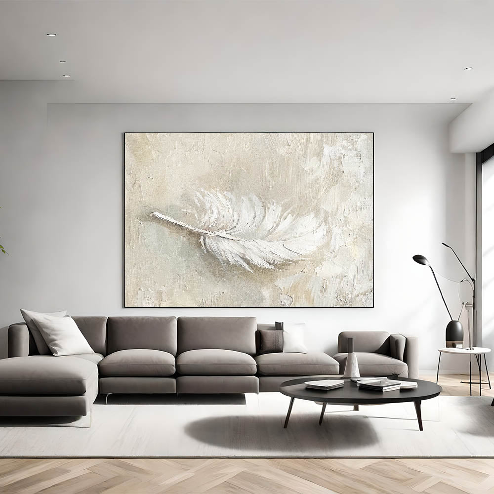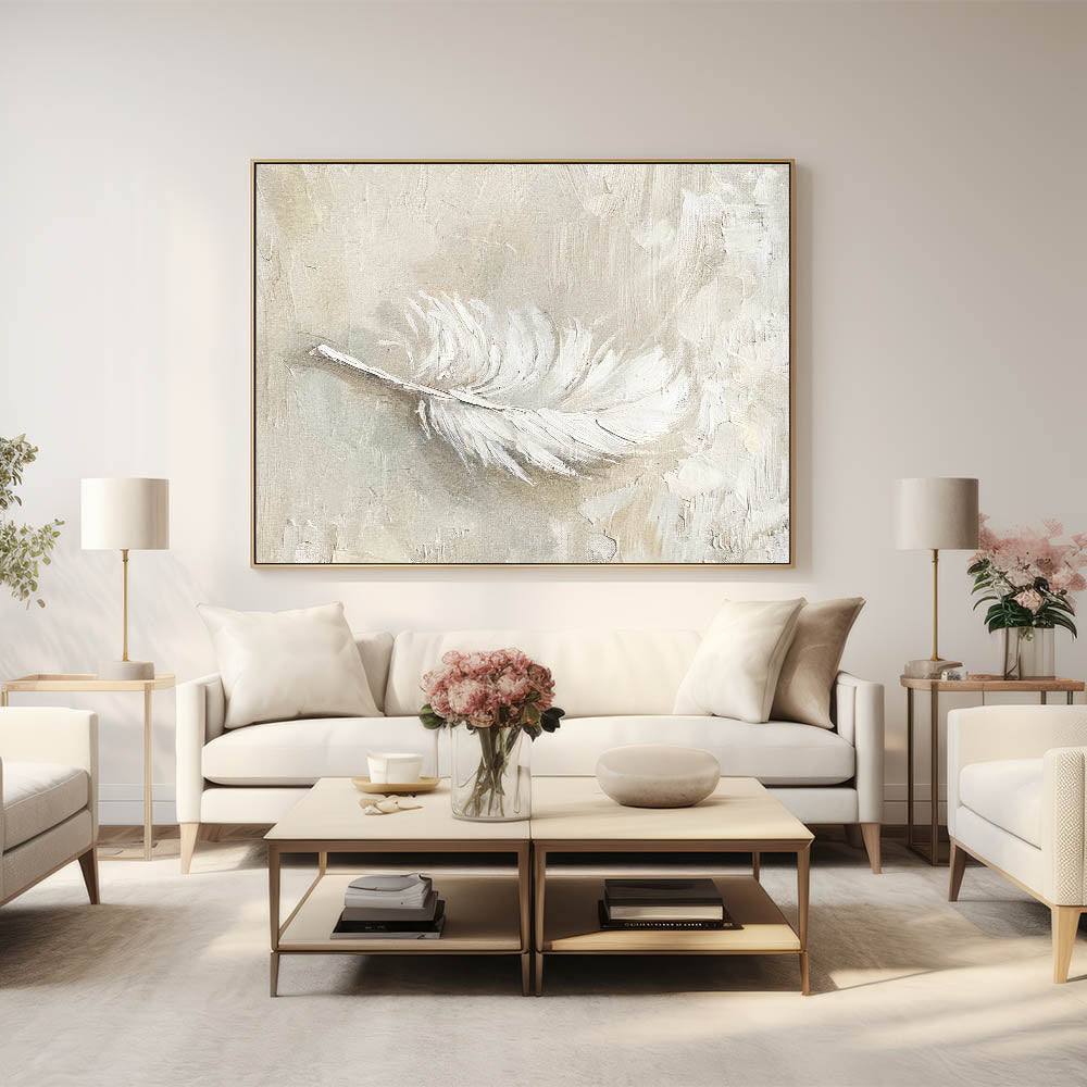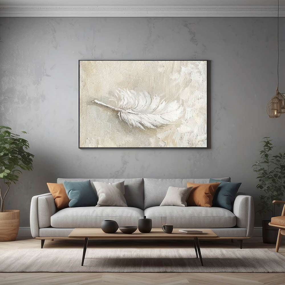 Bring a touch of softness and elegance to your decor with this minimalist feather texture artwork in neutral tones. Featuring a delicate feather rendered in shades of beige and cream, this piece exudes a calming, natural beauty. Ideal for modern and minimalist interiors, this artwork adds a subtle, organic element that enhances any space with its gentle texture and refined aesthetic.