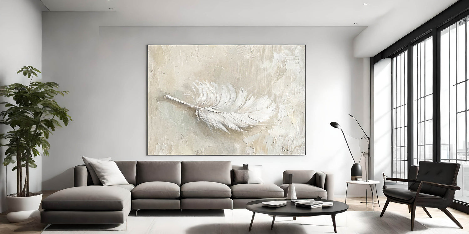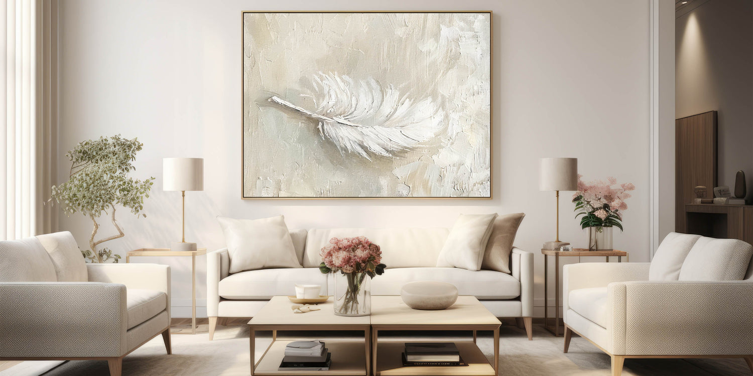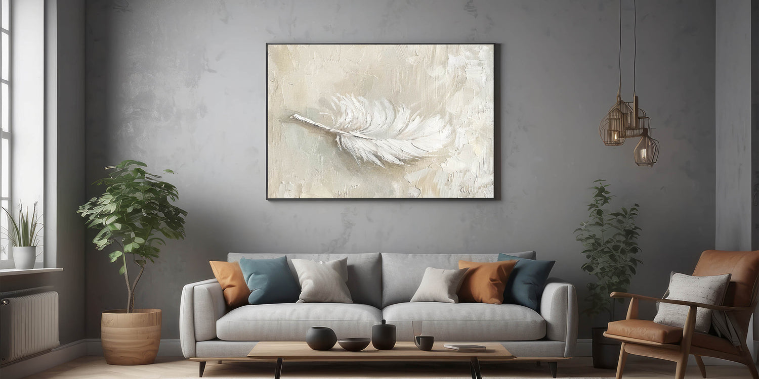 Bring a touch of softness and elegance to your decor with this minimalist feather texture artwork in neutral tones. Featuring a delicate feather rendered in shades of beige and cream, this piece exudes a calming, natural beauty. Ideal for modern and minimalist interiors, this artwork adds a subtle, organic element that enhances any space with its gentle texture and refined aesthetic.
