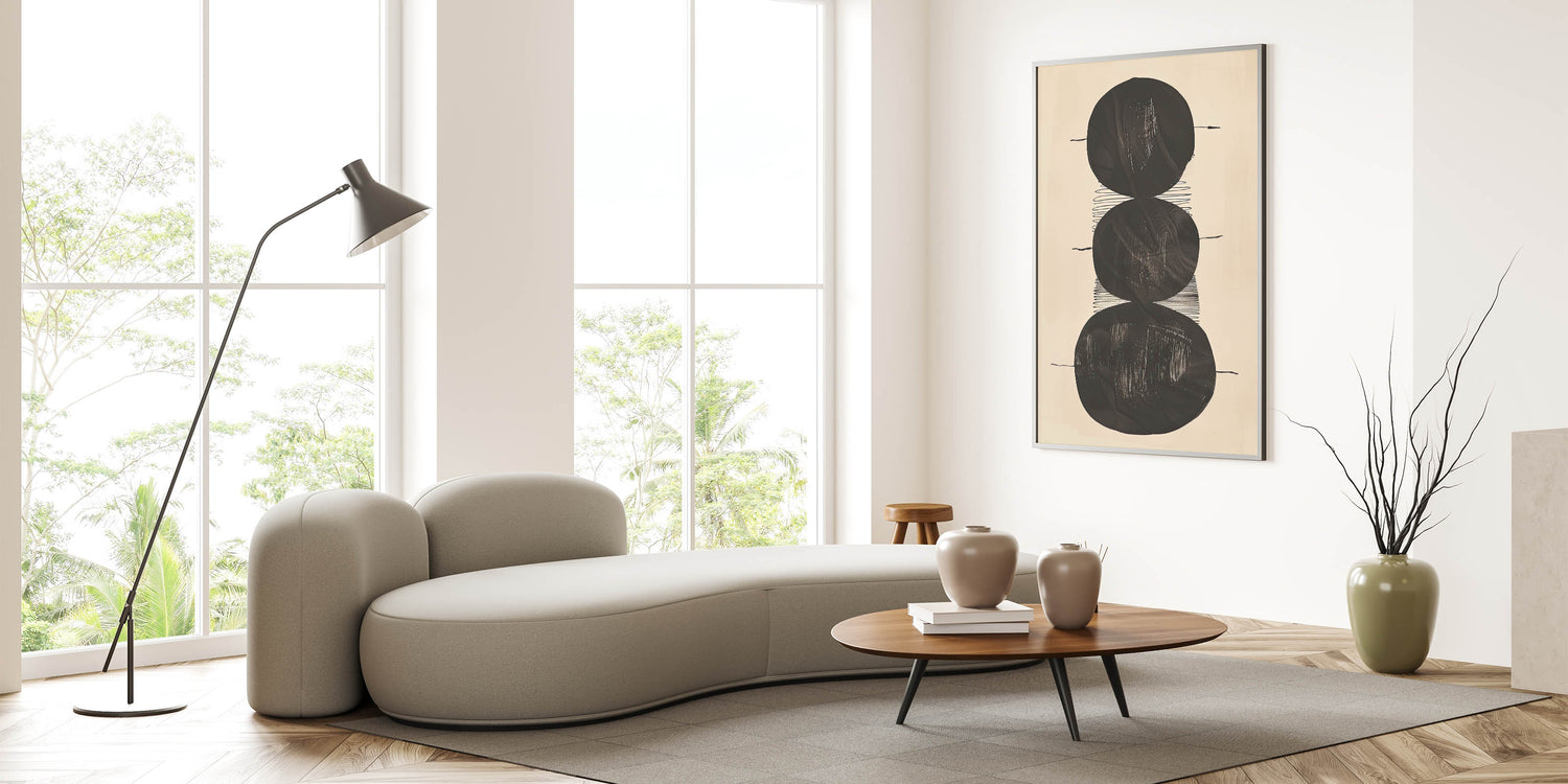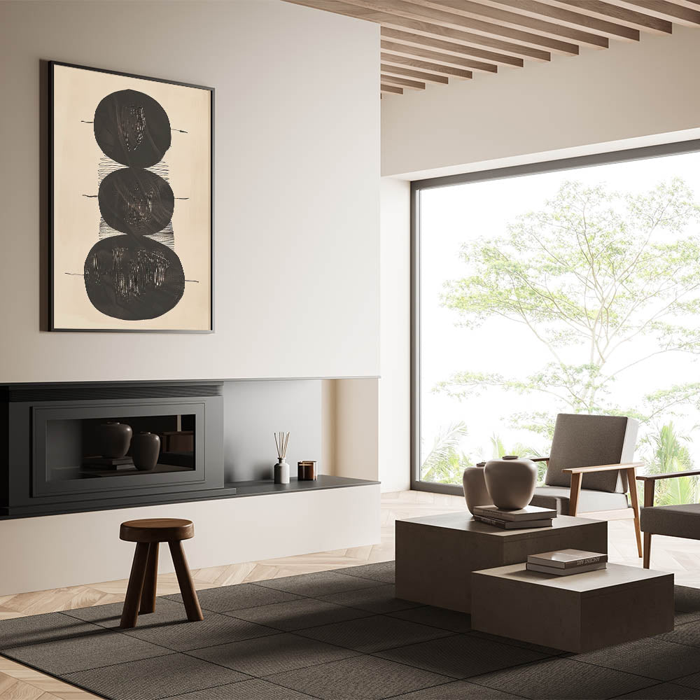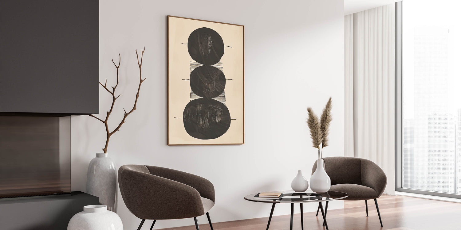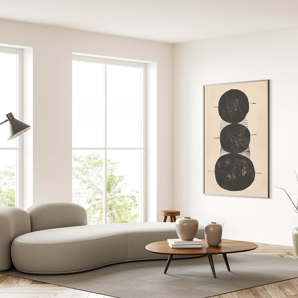 Elevate your space with this Minimalist Geometric Abstract Wall Art, an elegant and modern monochrome design that seamlessly blends simplicity with sophistication. This artwork, featuring bold black circular shapes on a light beige background, is perfect for those who appreciate minimalist aesthetics. Its versatile design suits a variety of spaces, from modern living rooms to chic office decor.