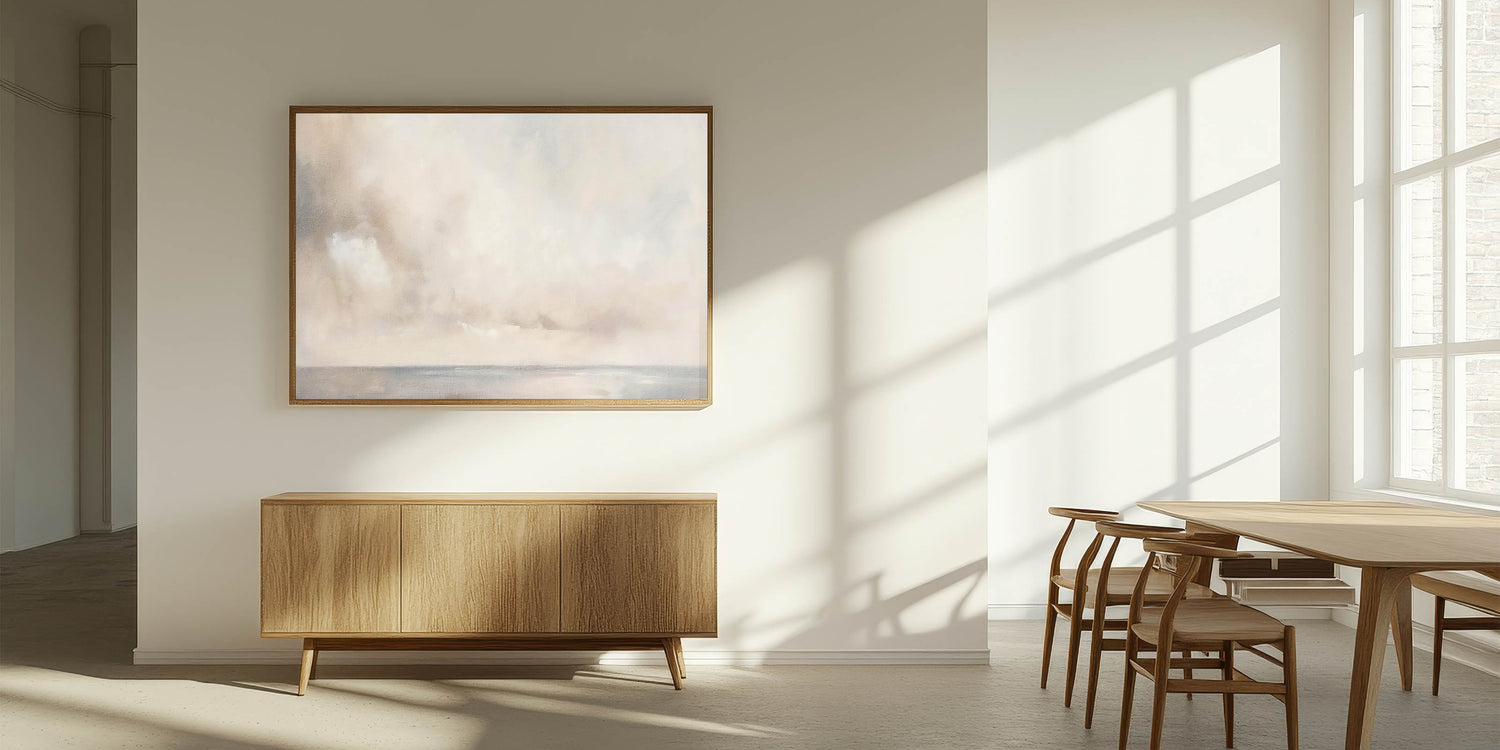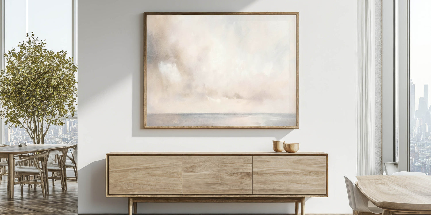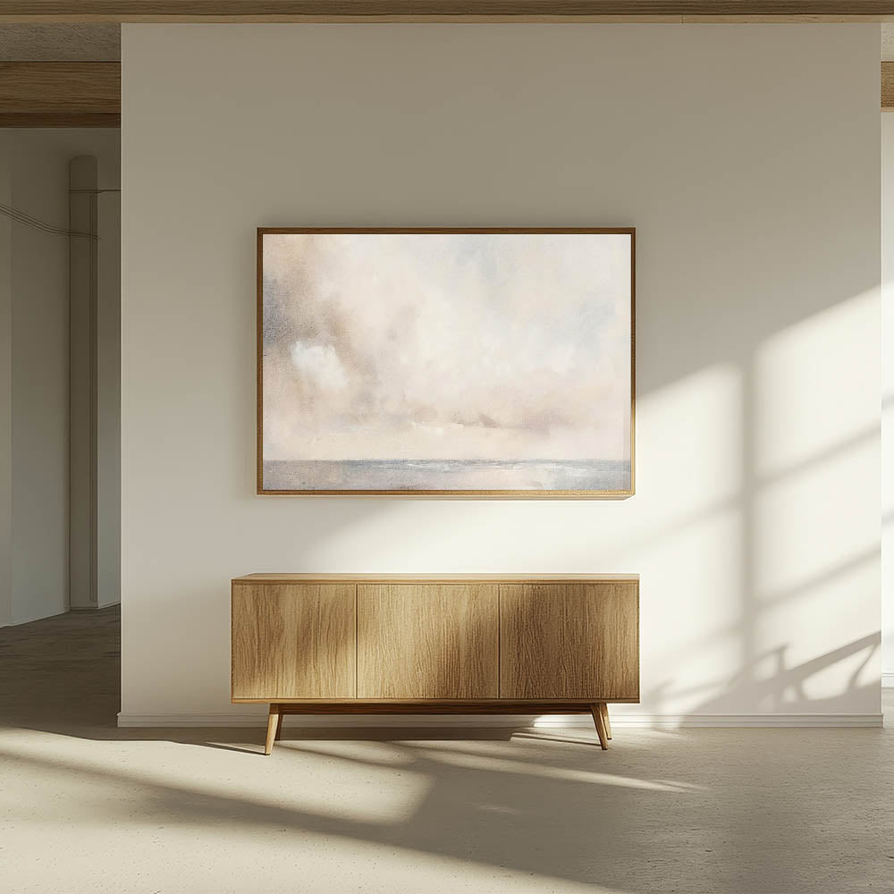Introduce a sense of calm to your home with this minimalist landscape abstract art. This piece features soft shades of beige, cream, and light gray, creating a peaceful, cloud-like effect that evokes the beauty of a gentle horizon. Perfect for modern and minimalist interiors, this artwork adds a touch of refined elegance to any room.