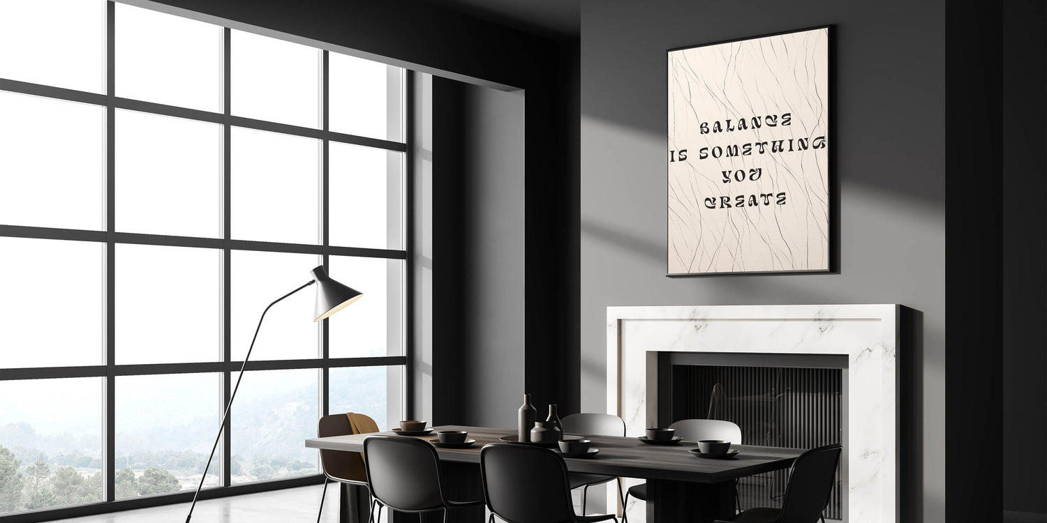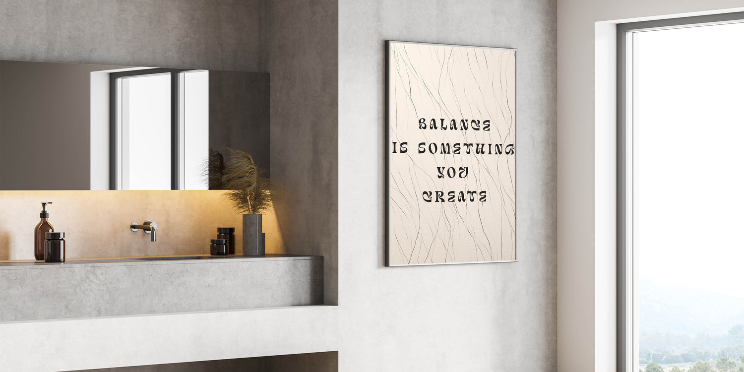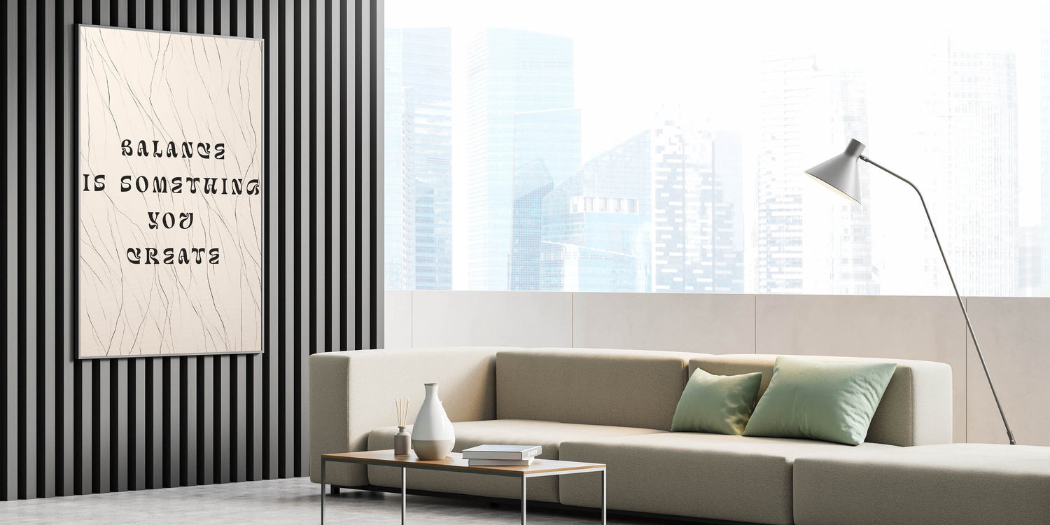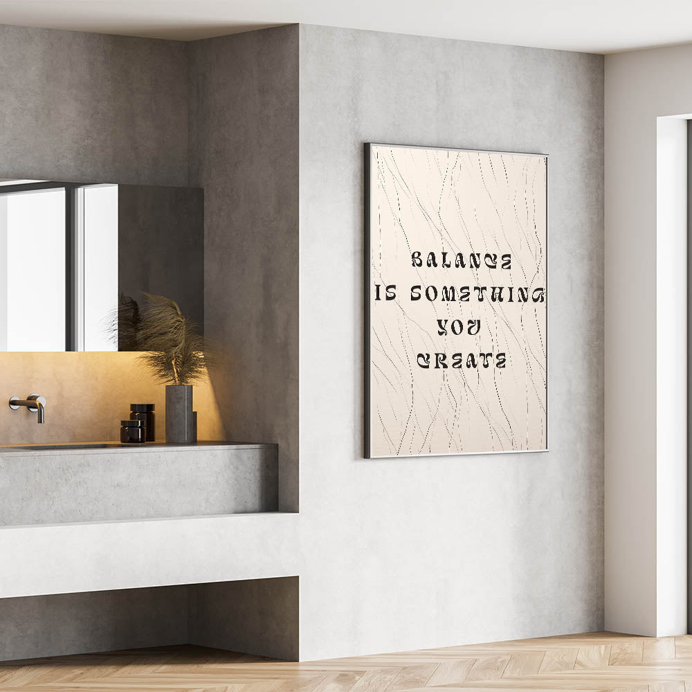 Minimalist Quote Wall Art – "Balance is Something You Create" with Abstract Lines