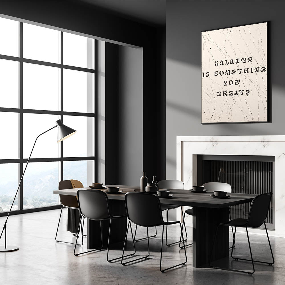 Inspire and elevate your space with this elegant minimalist quote wall art, featuring the words "Balance is Something You Create" overlaid on an abstract line pattern. The clean and flowing lines paired with the powerful message create a sense of calm and motivation, making this piece perfect for living rooms, offices, or bedrooms. Whether you're looking for a daily reminder to maintain balance in life or simply wish to enhance your minimalist decor, this artwork blends style with meaning effortlessly.