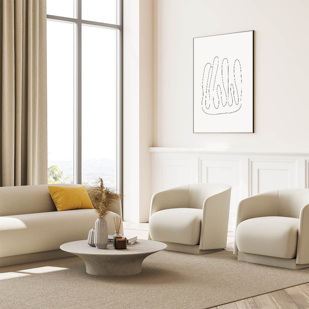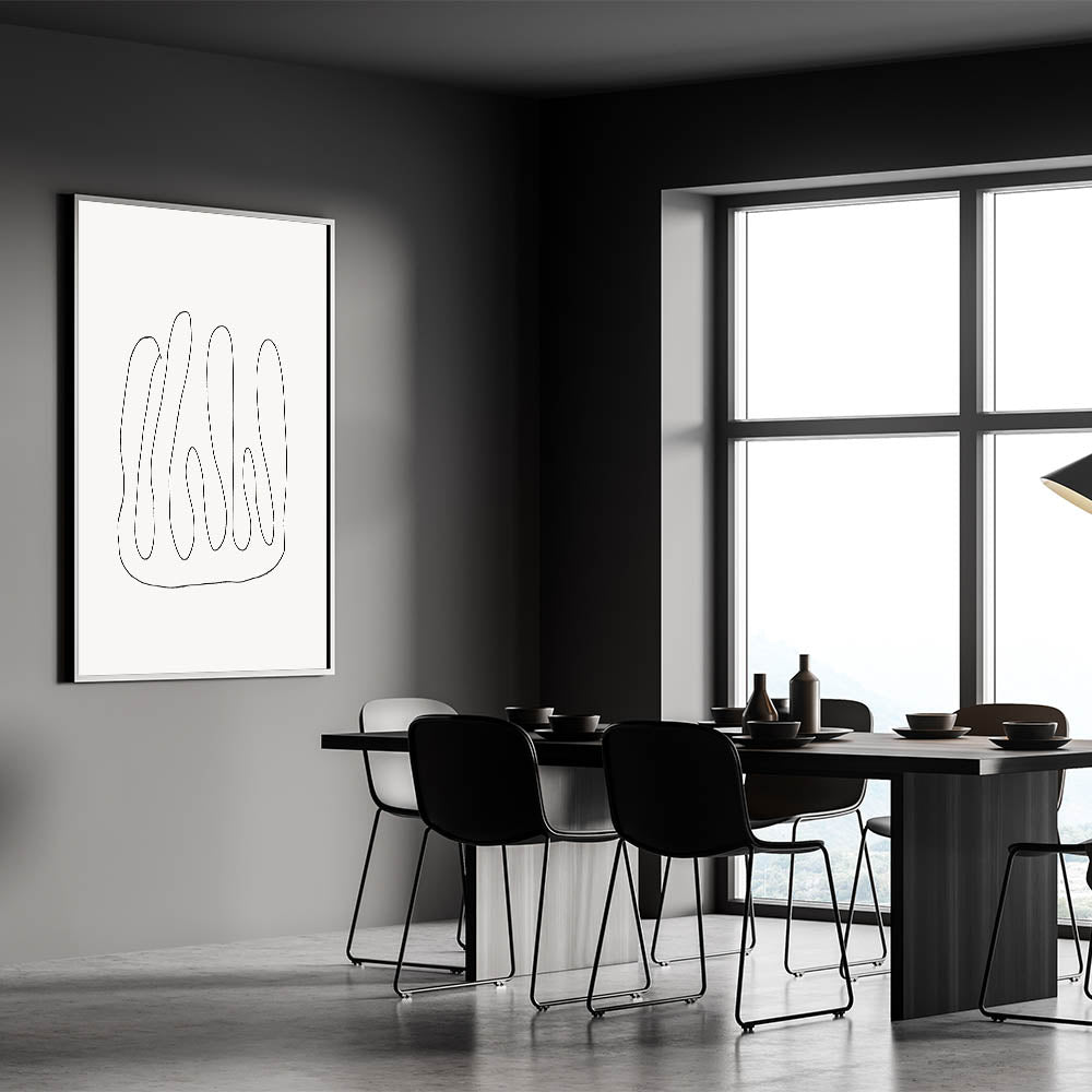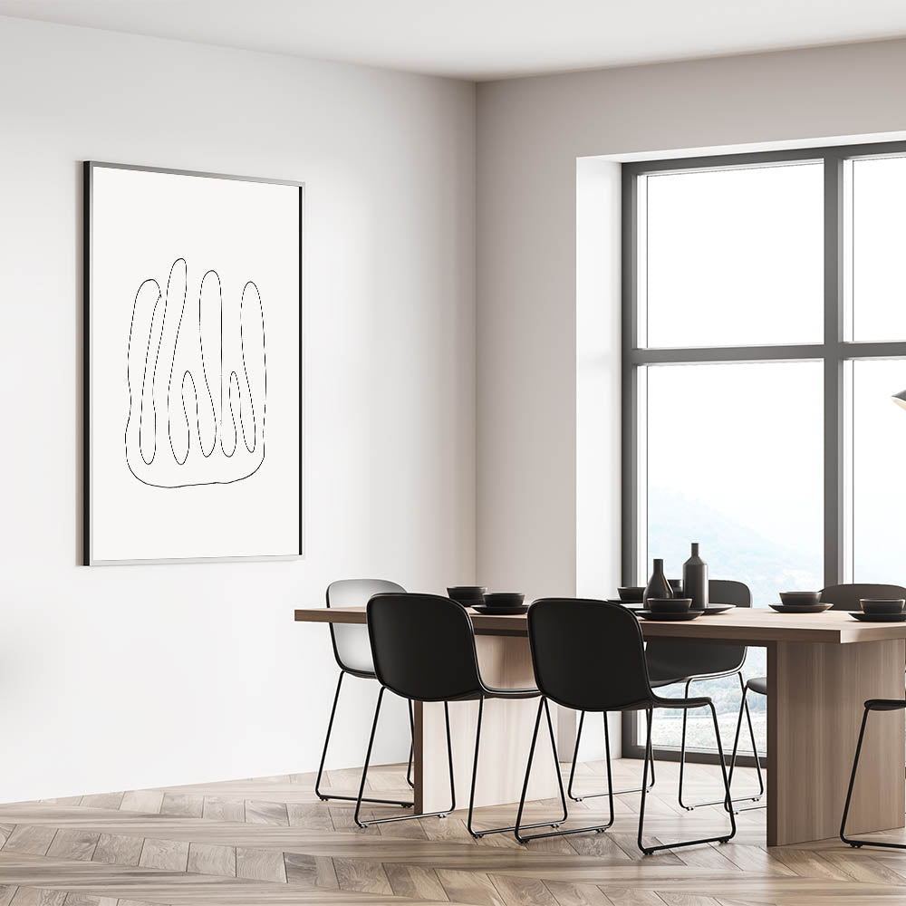 This abstract line art combines minimalist elegance with a hint of modern playfulness. Its organic shapes and clean lines make it a versatile addition to any decor, offering a sleek and stylish design that’s perfect for modern living.