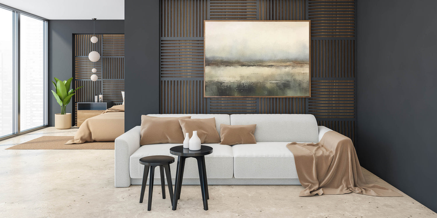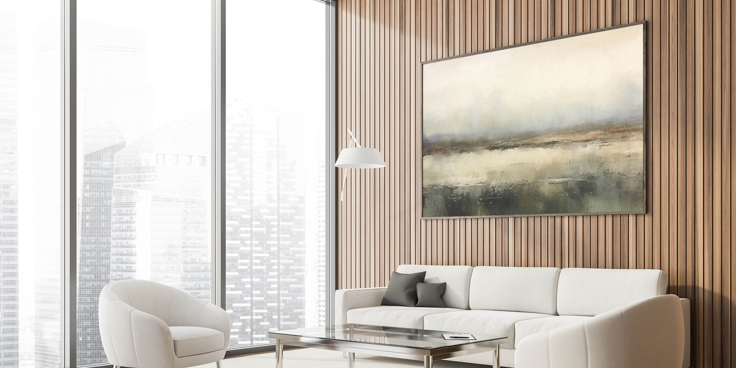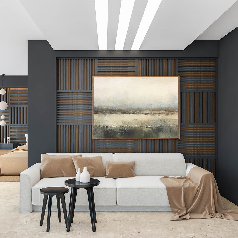 Bring a peaceful vibe into your home with this abstract misty horizon landscape. Its neutral palette and minimalist design make it a versatile addition, ideal for creating a relaxing ambiance in living rooms, bedrooms, or offices.