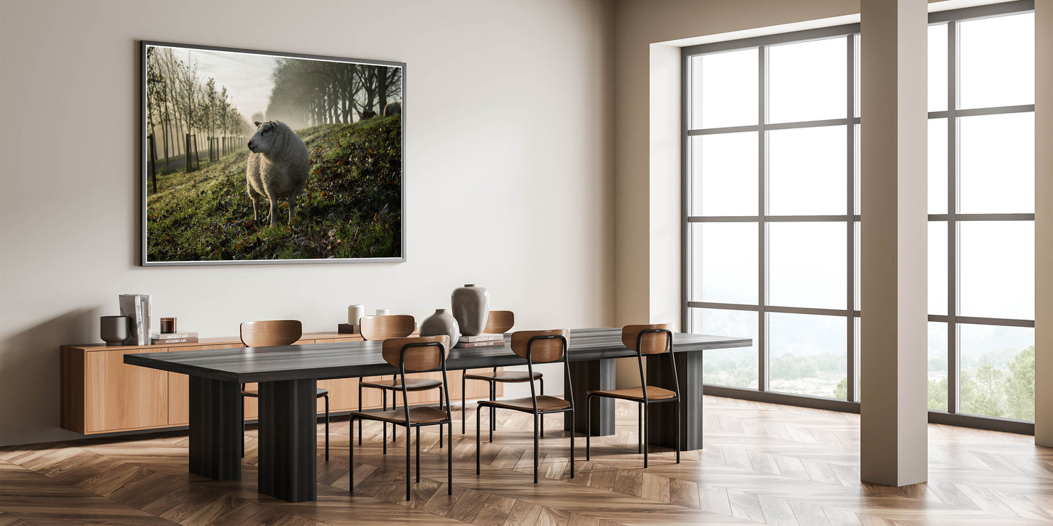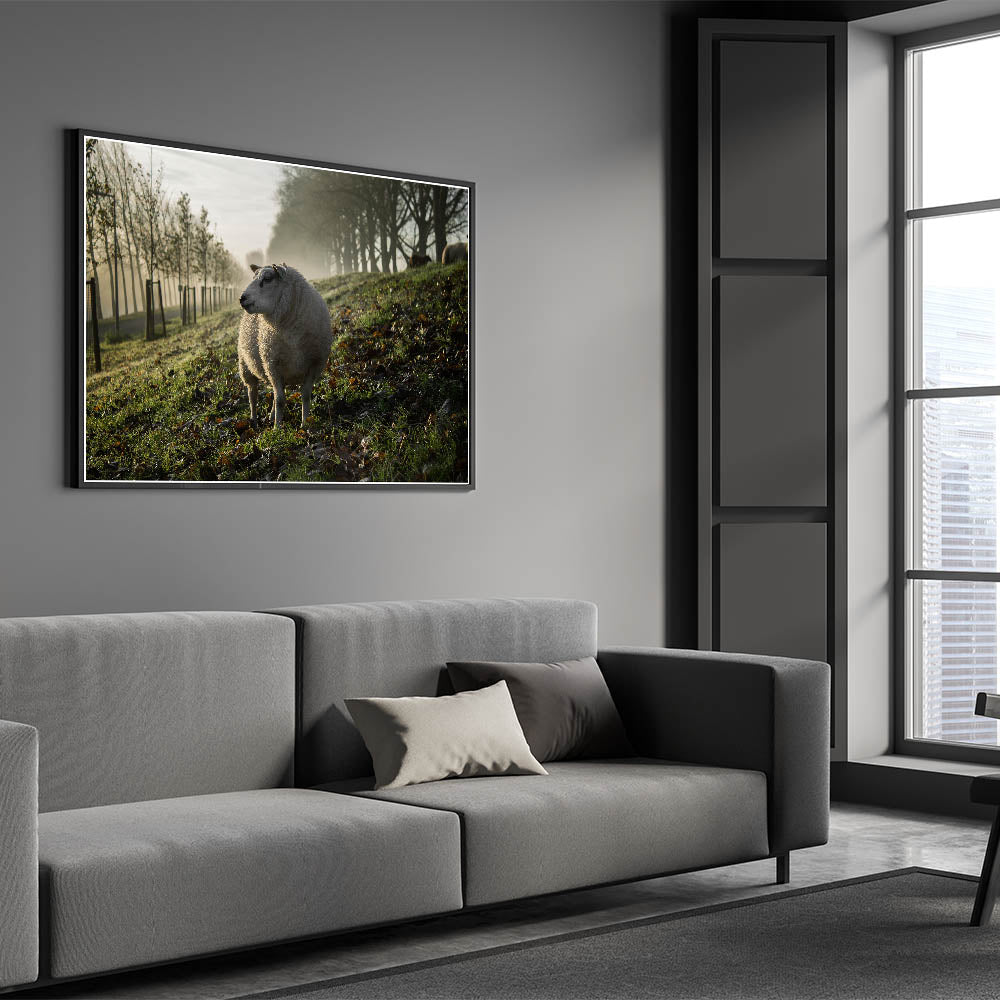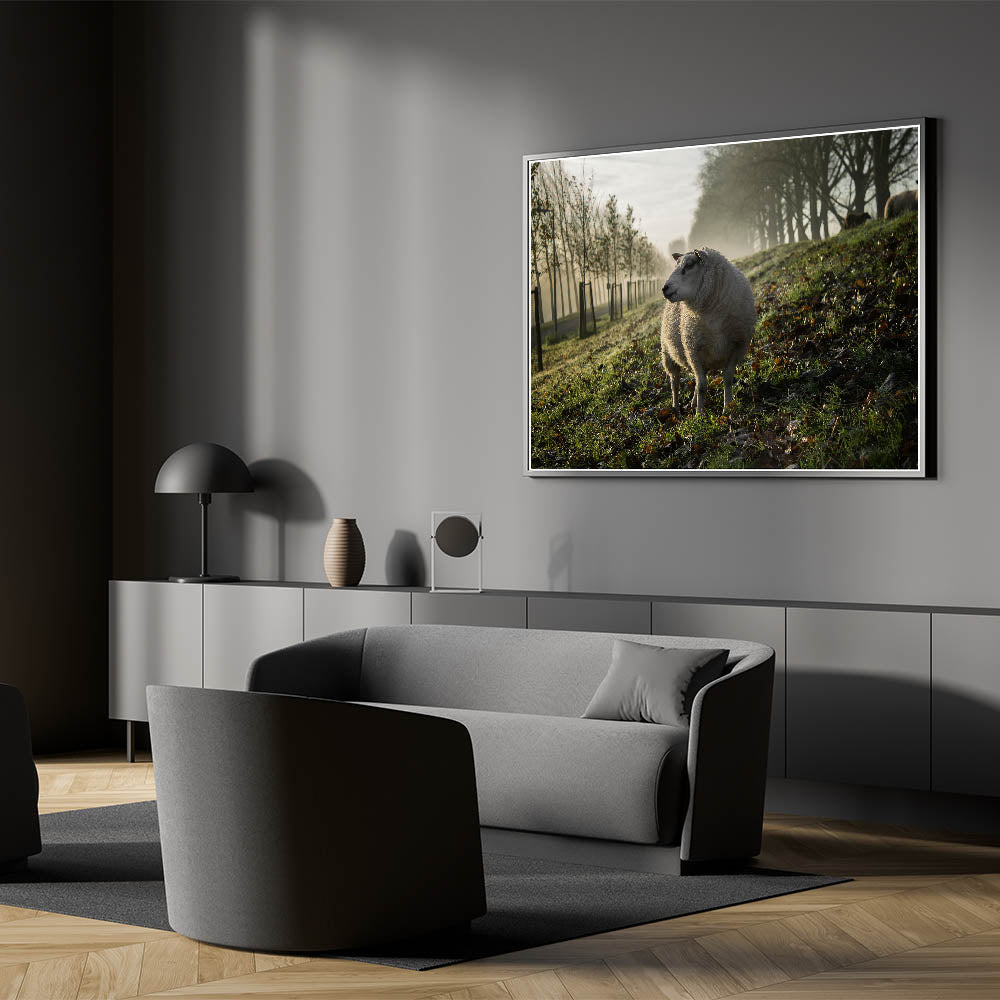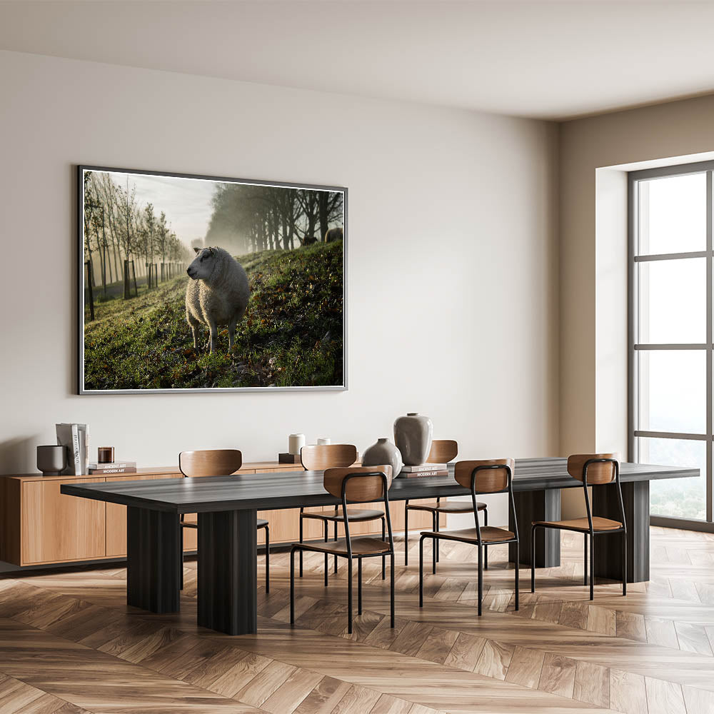 This beautiful rustic wall art of a sheep on a misty morning brings the tranquility of the countryside into your home. It's a timeless piece, perfect for anyone looking to create a cozy, farmhouse-inspired space.