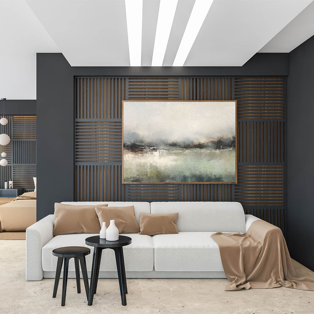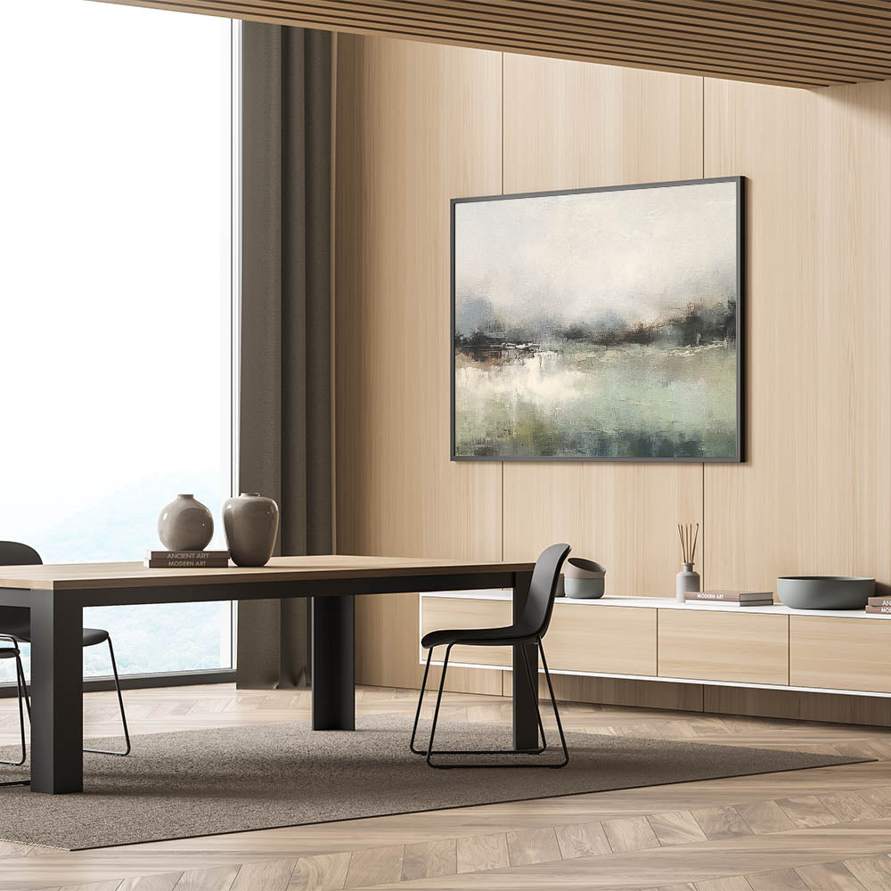 Bring the serene beauty of misty waters into your home with this calming landscape abstract art. Featuring muted greens, gentle grays, and soft, cloud-like textures, this piece evokes the tranquility of nature, making it an ideal addition to modern, minimalist, and rustic decor styles. Perfect for creating a peaceful atmosphere in any room, this artwork adds depth and sophistication to your space.