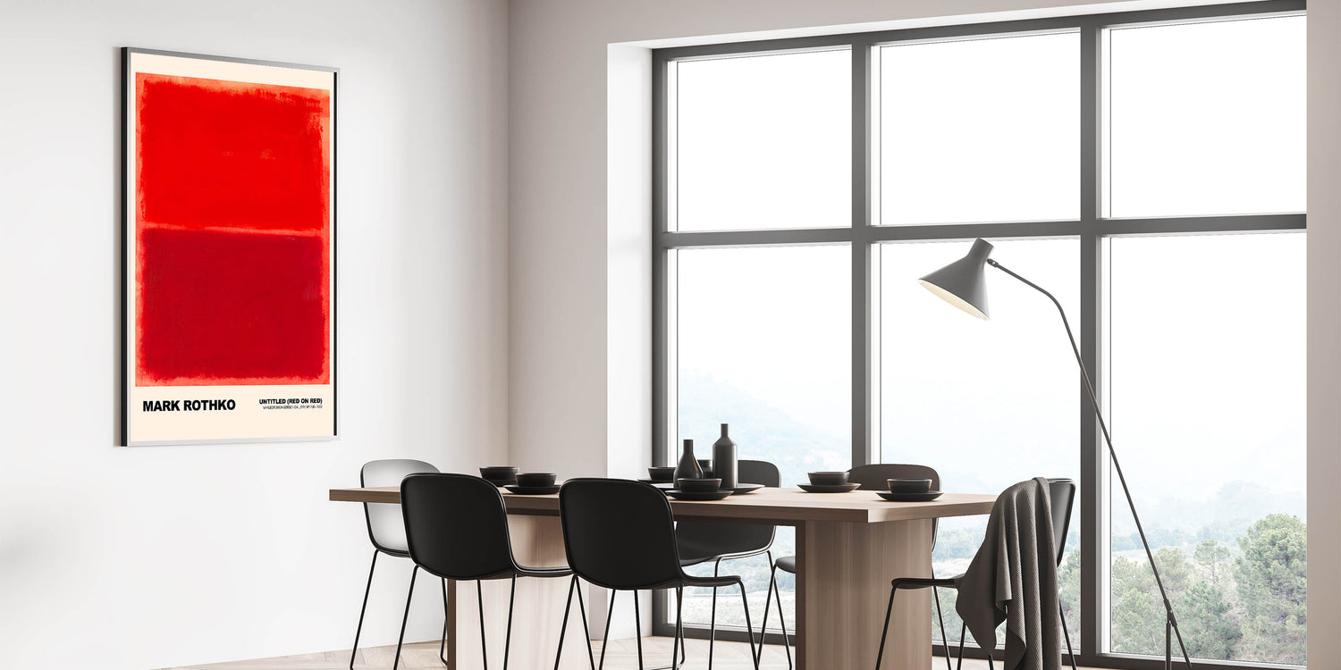 Infuse your space with bold intensity through this "Modern Abstract Canvas Art" inspired by Mark Rothko's signature style. Featuring two deep red color fields with subtle tonal variations, this artwork conveys depth and emotion, characteristic of abstract expressionism. The soft edges and rich hues create a captivating visual impact, perfect for modern interiors seeking a touch of sophistication.