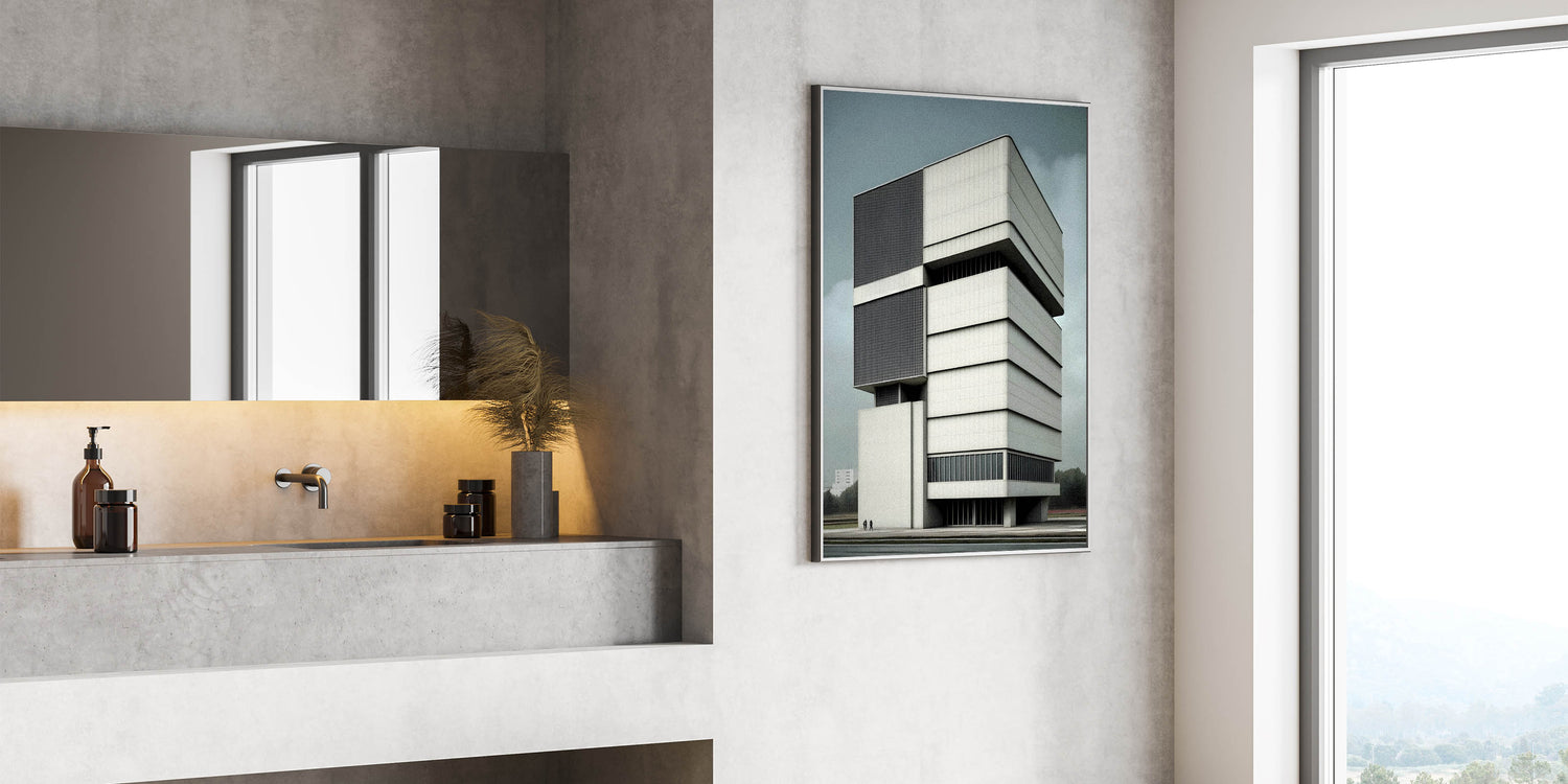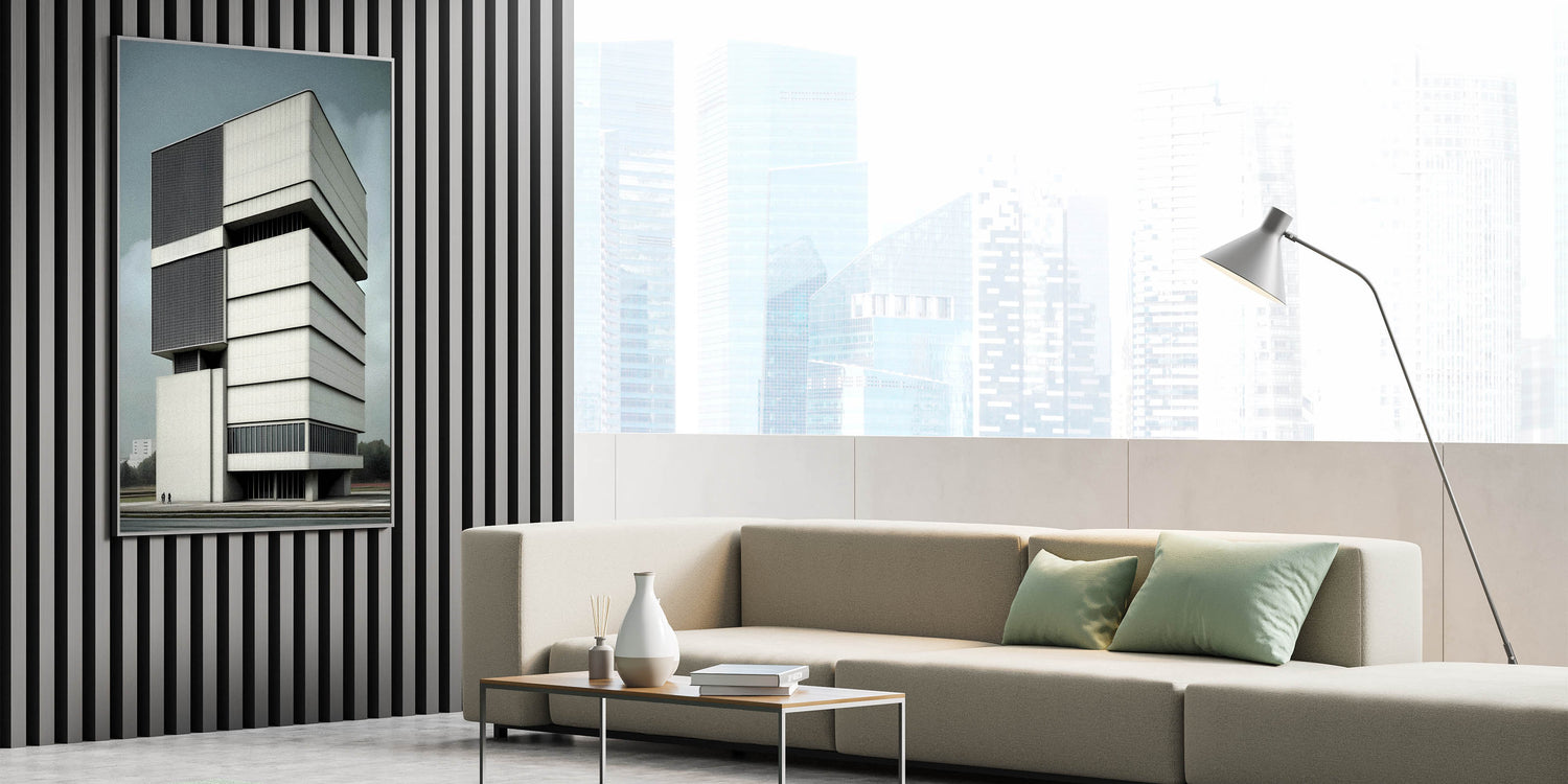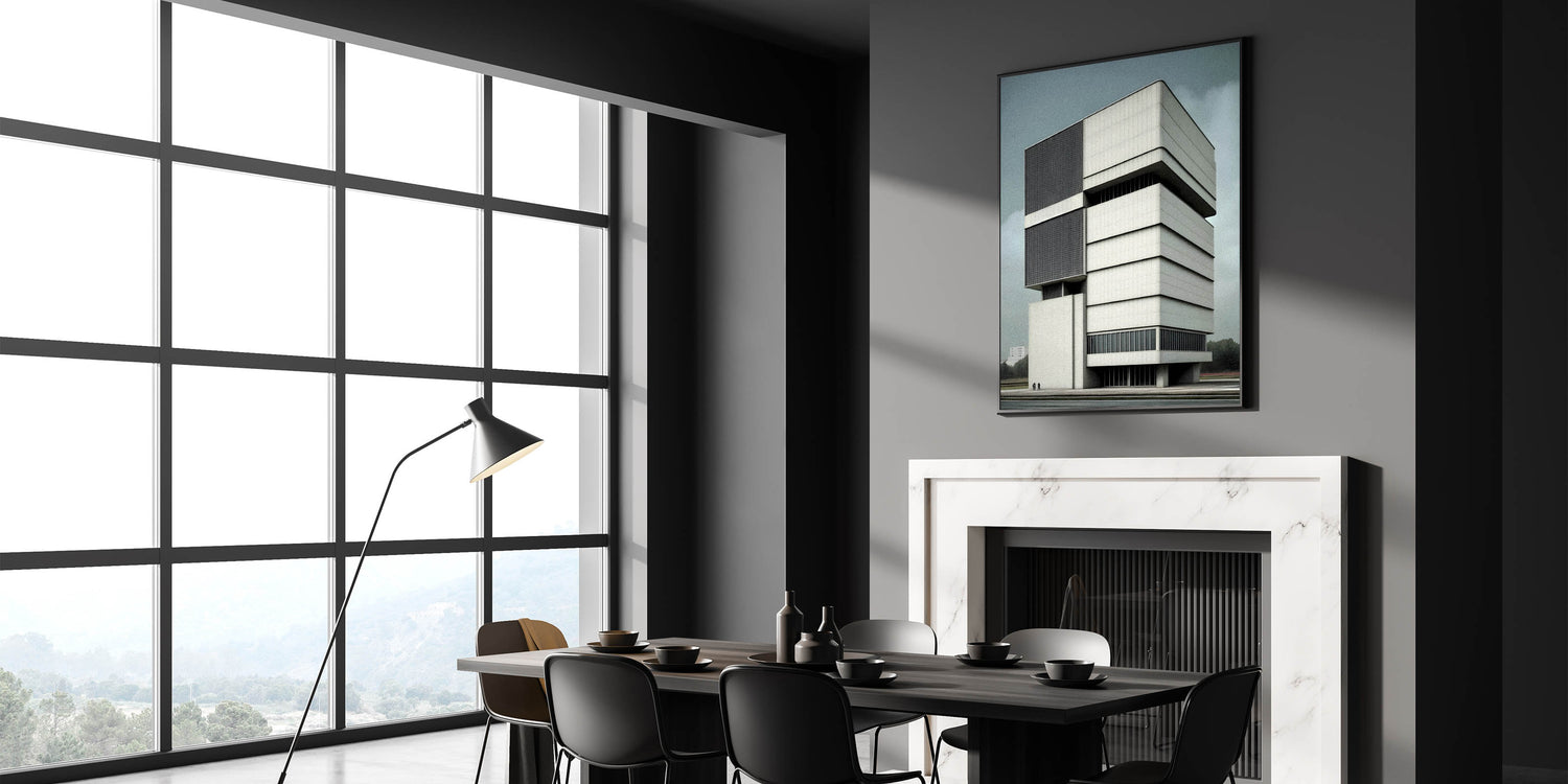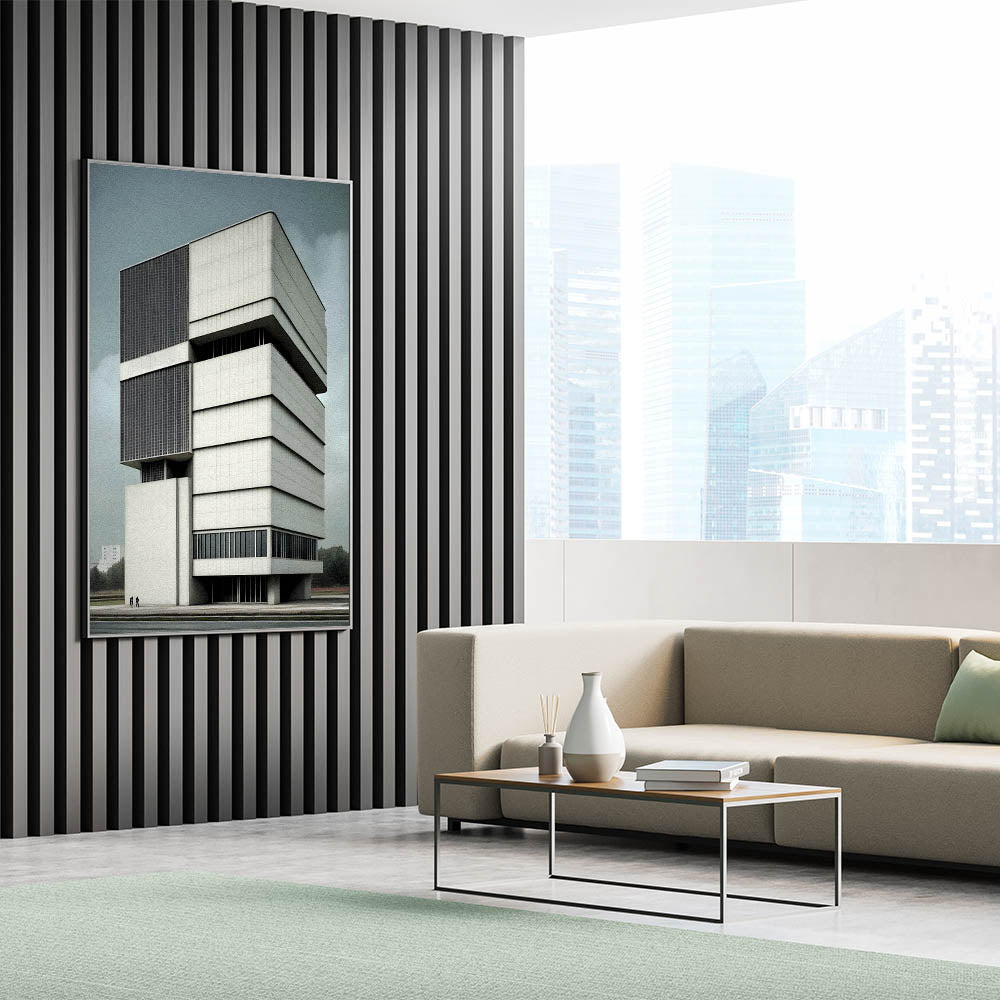 Elevate your decor with this commanding Brutalist wall art, bringing the bold, geometric elegance of architectural minimalism to your home or office.