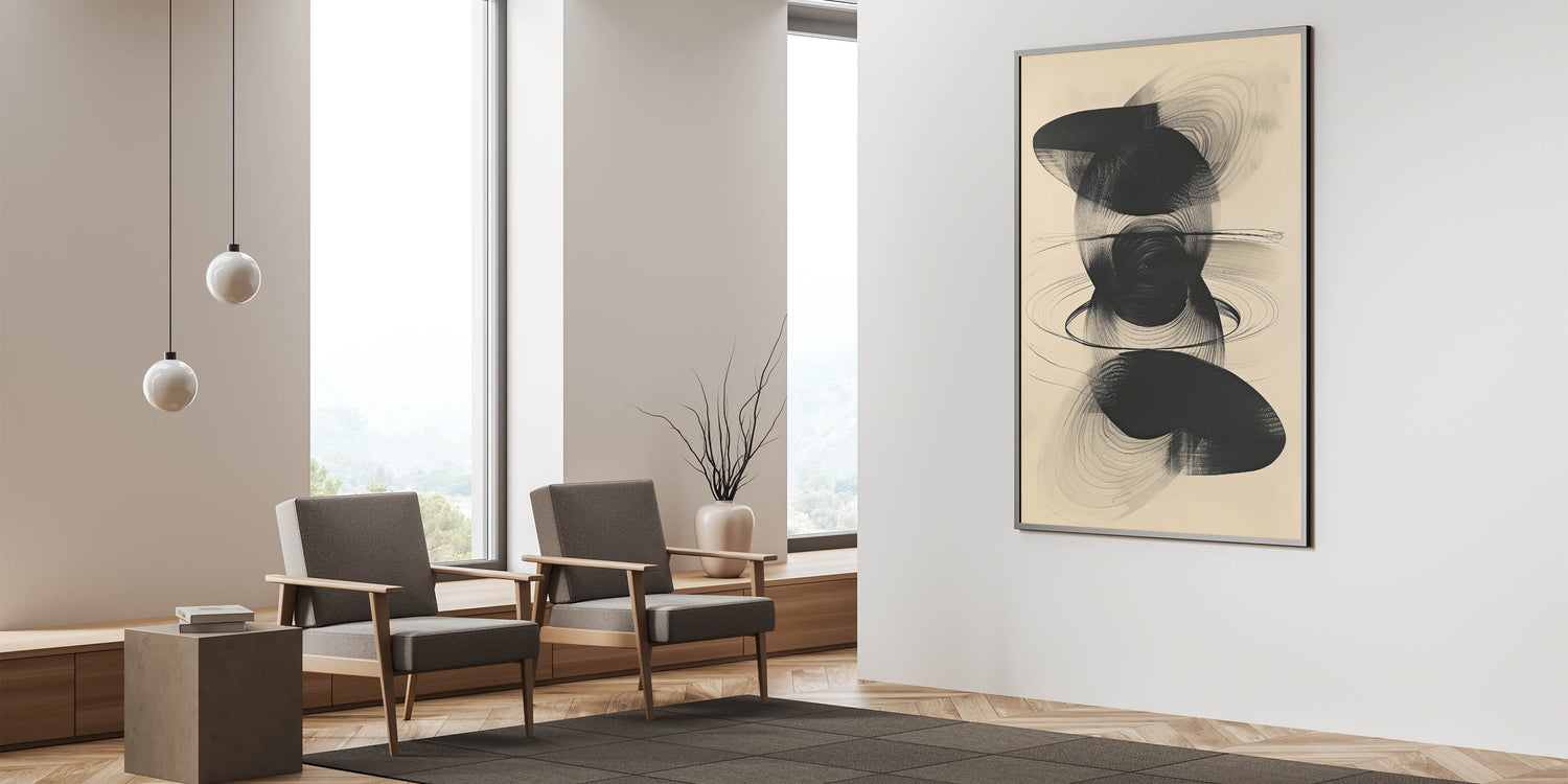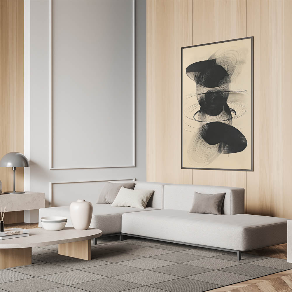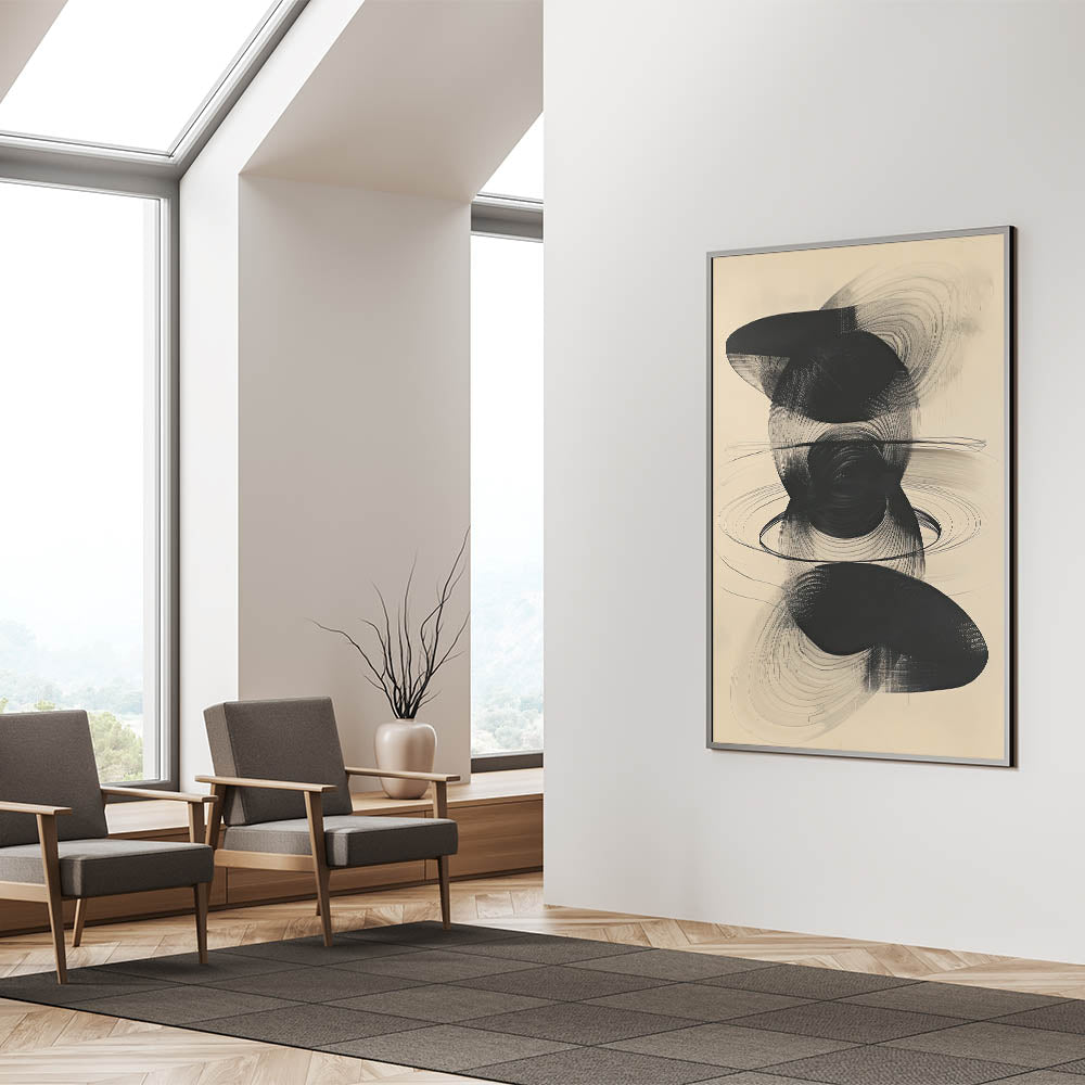 Enhance your space with this Modern Minimalist Flowing Shapes Art. This abstract design, featuring intricate black shapes and swirling lines, brings a sense of depth and movement to any room. Its monochromatic tones make it a versatile addition that suits contemporary, minimalist, and industrial decor styles. Perfect for those who appreciate the elegance of abstract art with a bold, graphic edge.