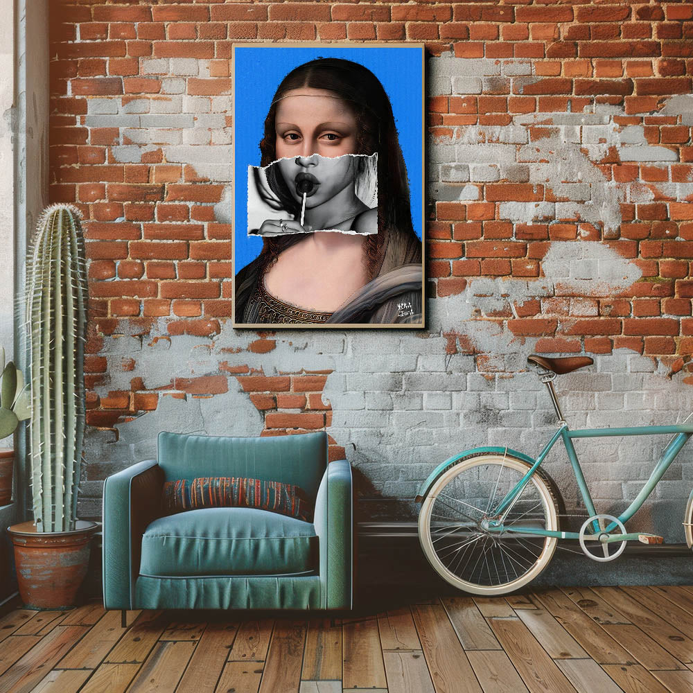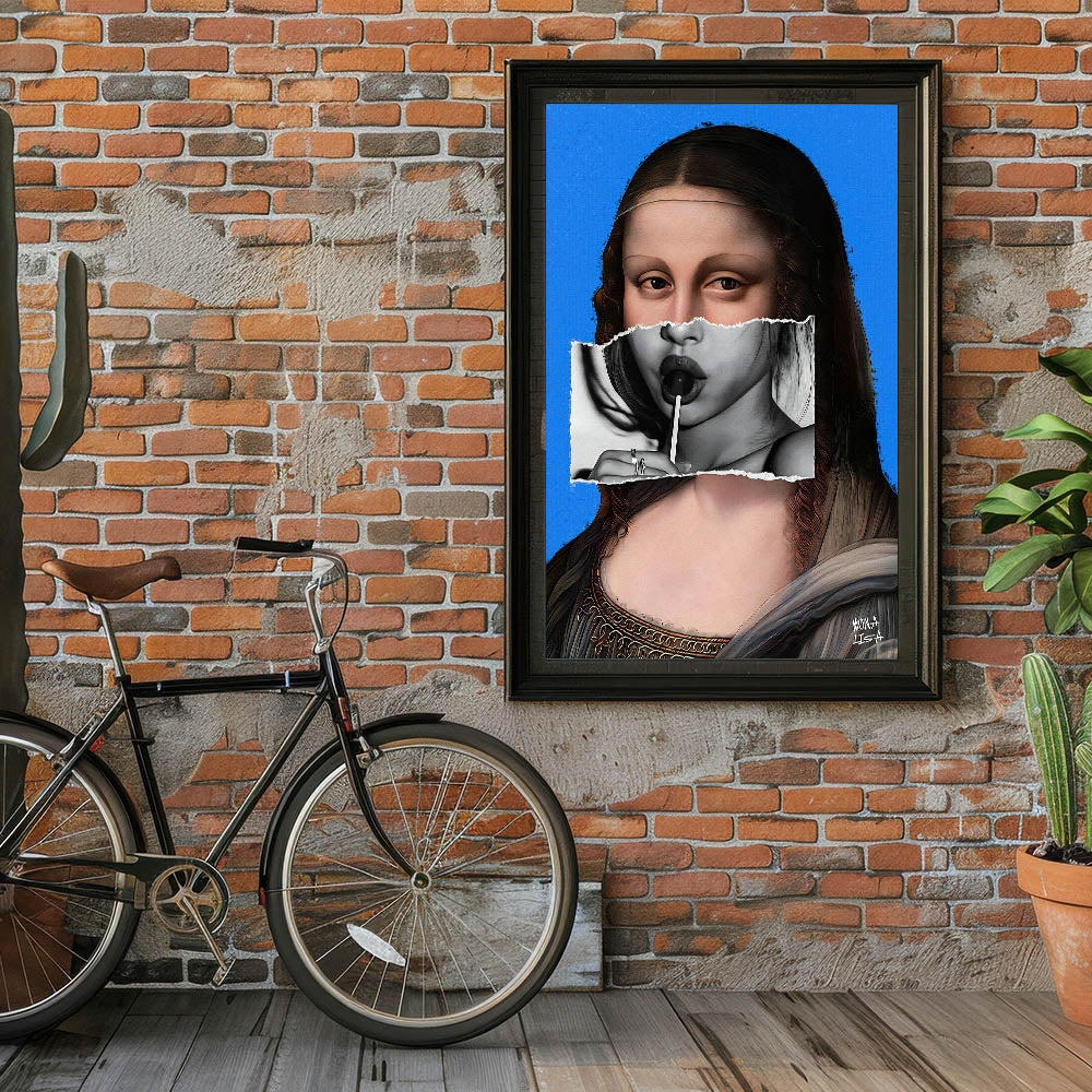 Add a playful and modern touch to your home with this Mona Lisa-inspired pop art wall art. Featuring a striking blue background and a black-and-white cutout, this piece adds a contemporary twist to the classic masterpiece. The fusion of vintage and modern design creates a unique pop art piece that blends the past and present, making it a great choice for contemporary spaces looking for a statement artwork.