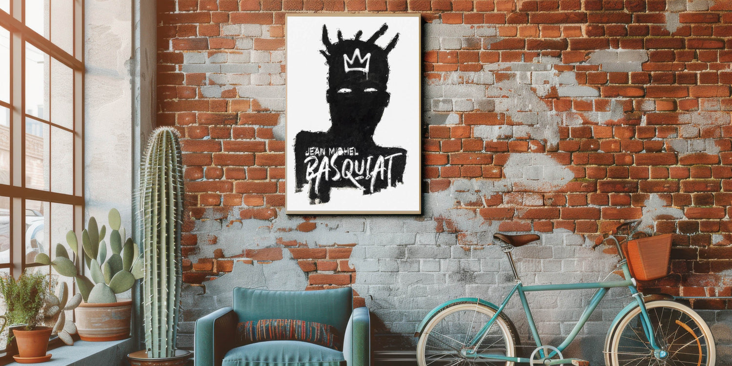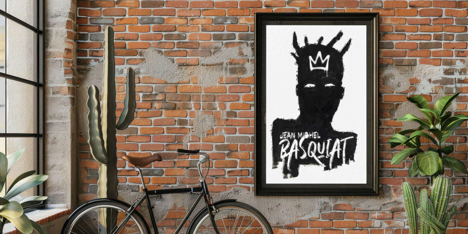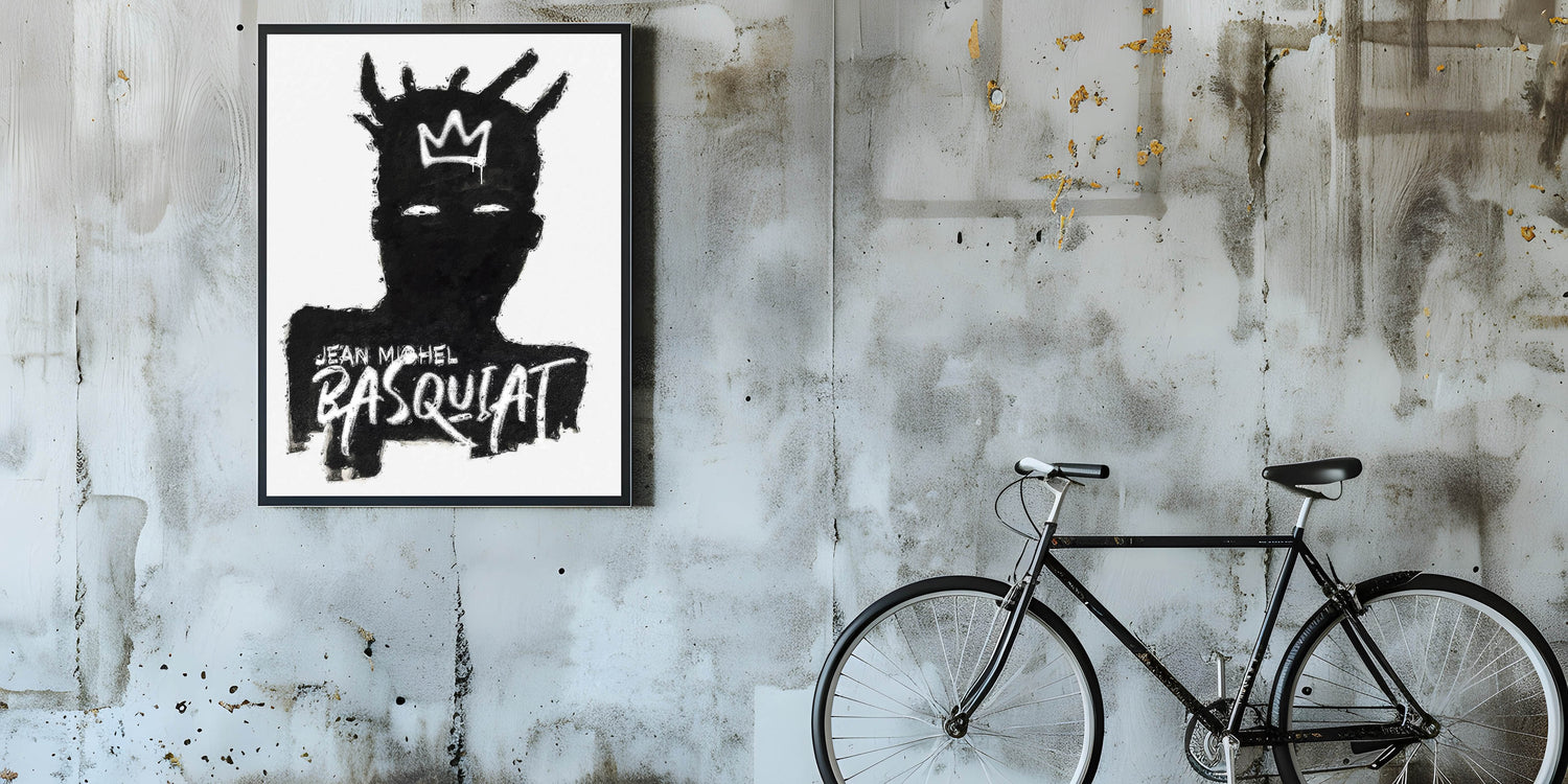 Embrace the essence of modern pop art with this striking black and white wall art, inspired by the raw and expressive style of Jean-Michel Basquiat. Featuring a bold silhouette crowned with the iconic symbol, this artwork captures the rebellious spirit of street art and contemporary culture. Its minimalist yet powerful design makes it a perfect addition to any urban-themed space.
